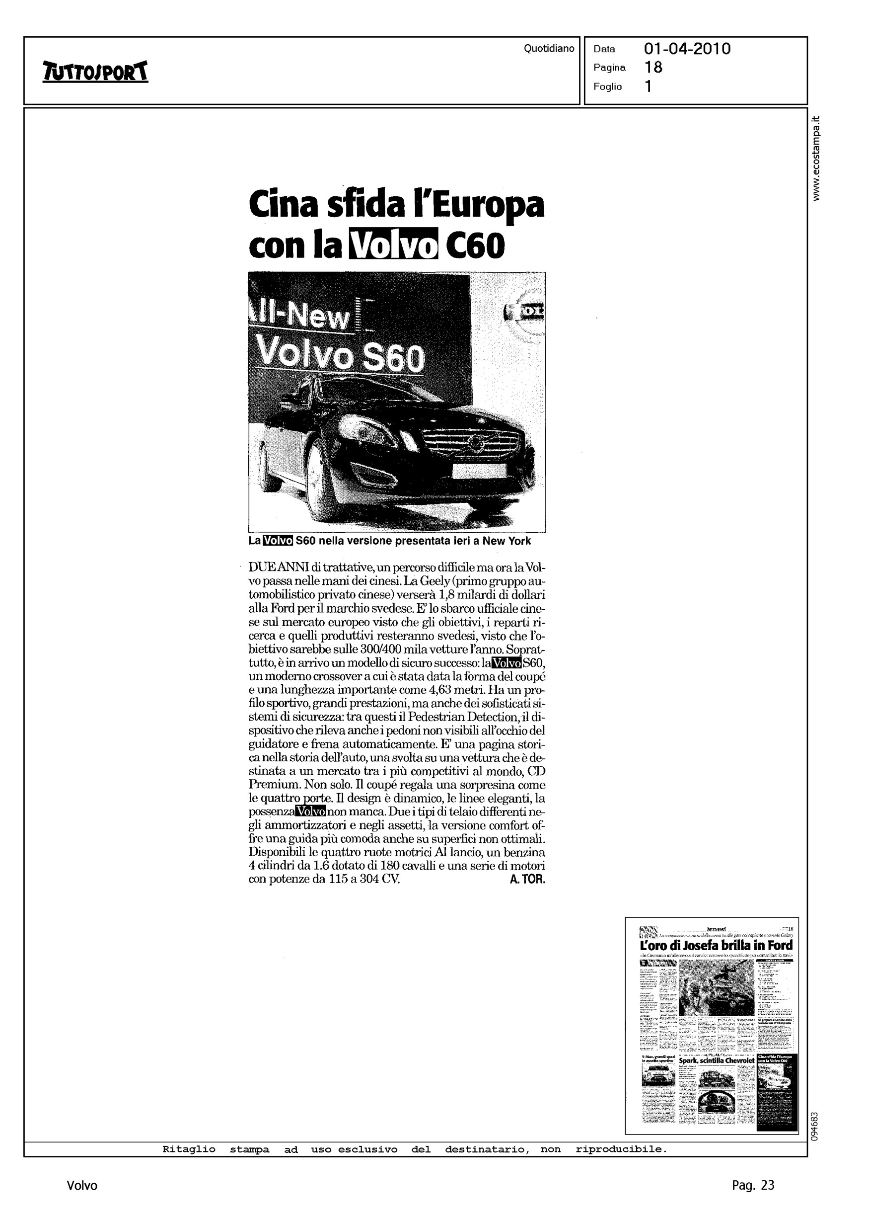 Title: CINA SFIDA L'EUROPA CON LA VOLVO C60 (!)