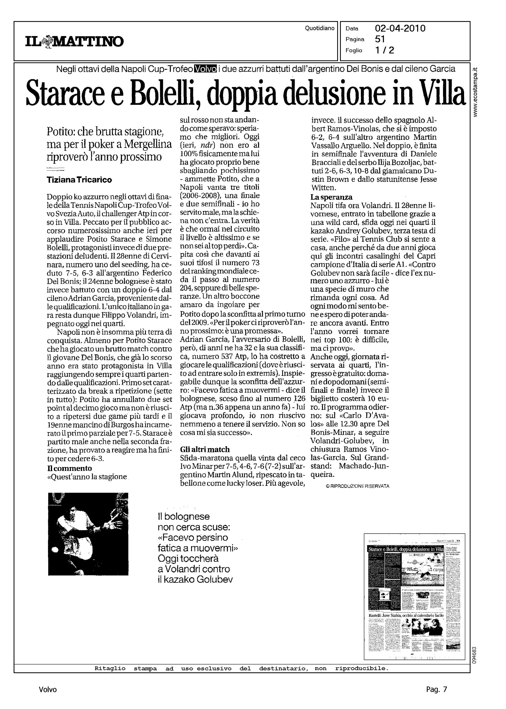 Author: TRICARICO, TIZIANALine: Corporate Model: Corporate Subject: - Title: STARACE E BOLELLI, DOPPIA DELUSIONE IN VILLAHighlight: TROFEO SVEZIA AUTO