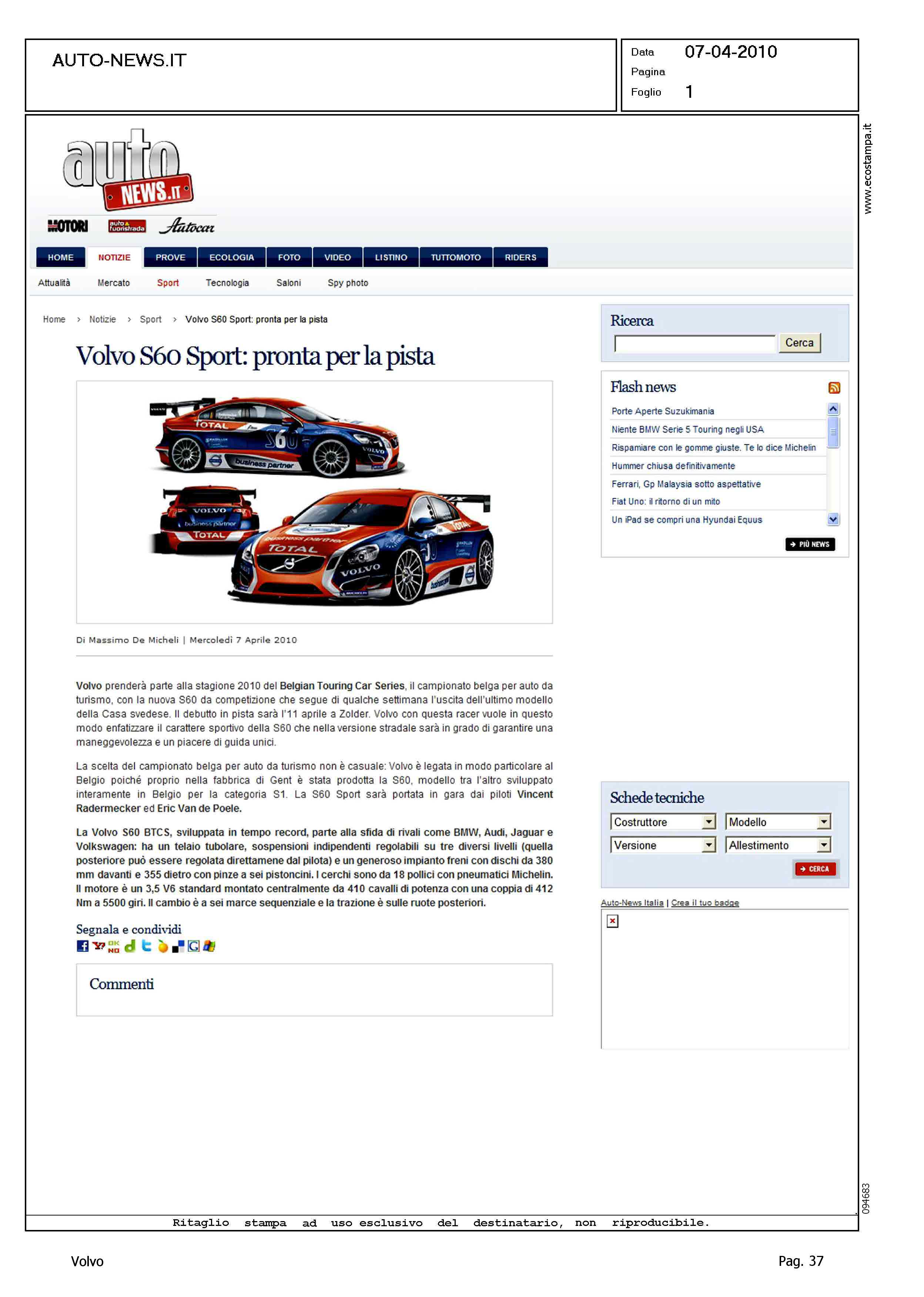 Author: Line: Corporate Model: Corporate Subject: - Title: VOLVO S60 SPORT: PRONTA PER LA PISTAHighlight: IMPEGNO SPORTIVO S60