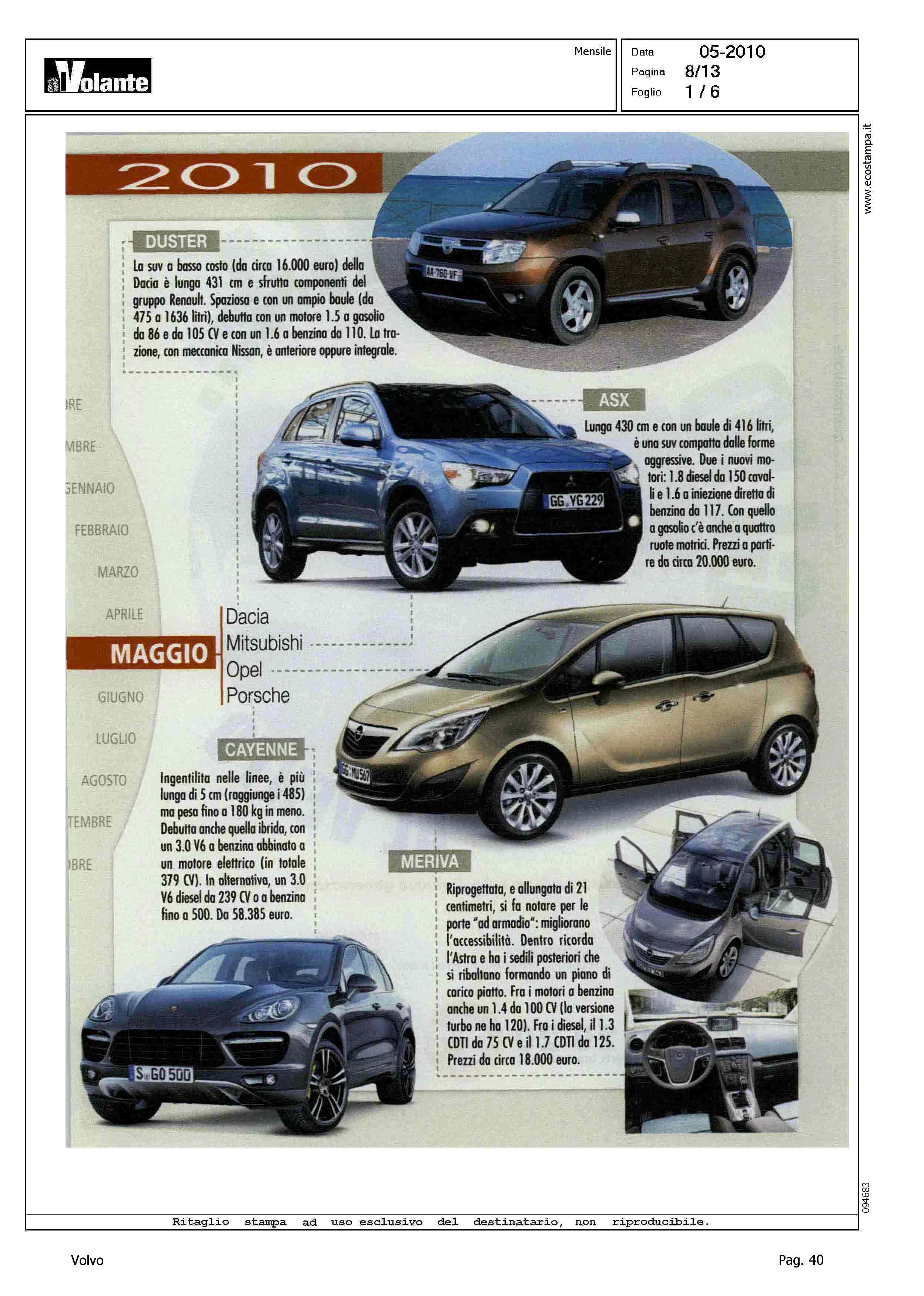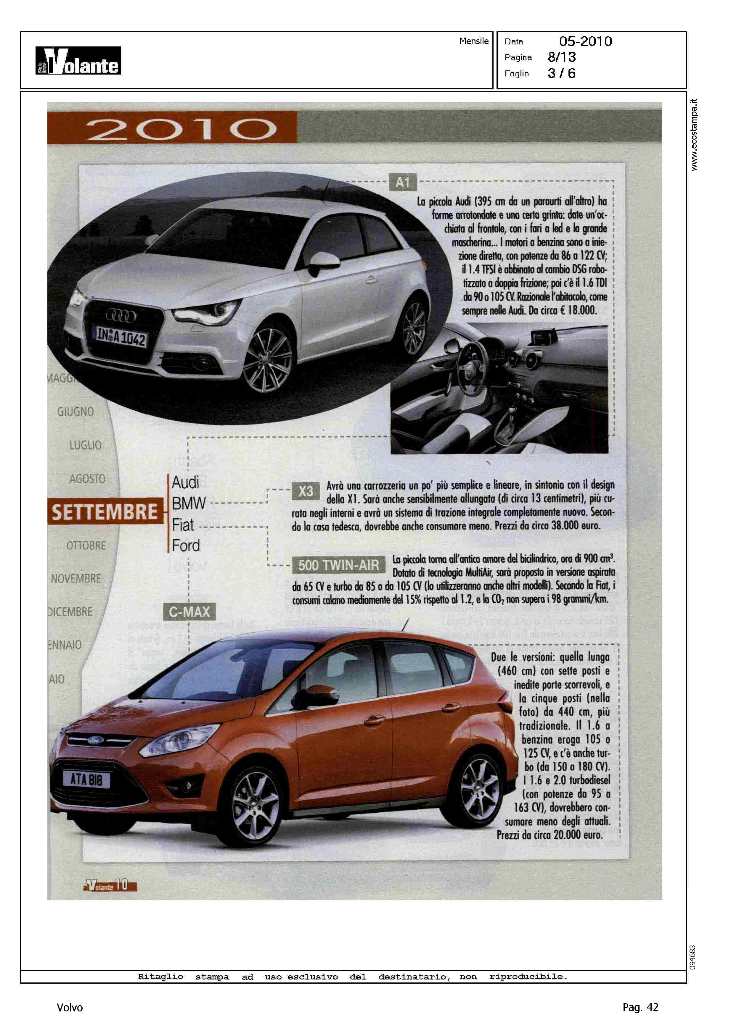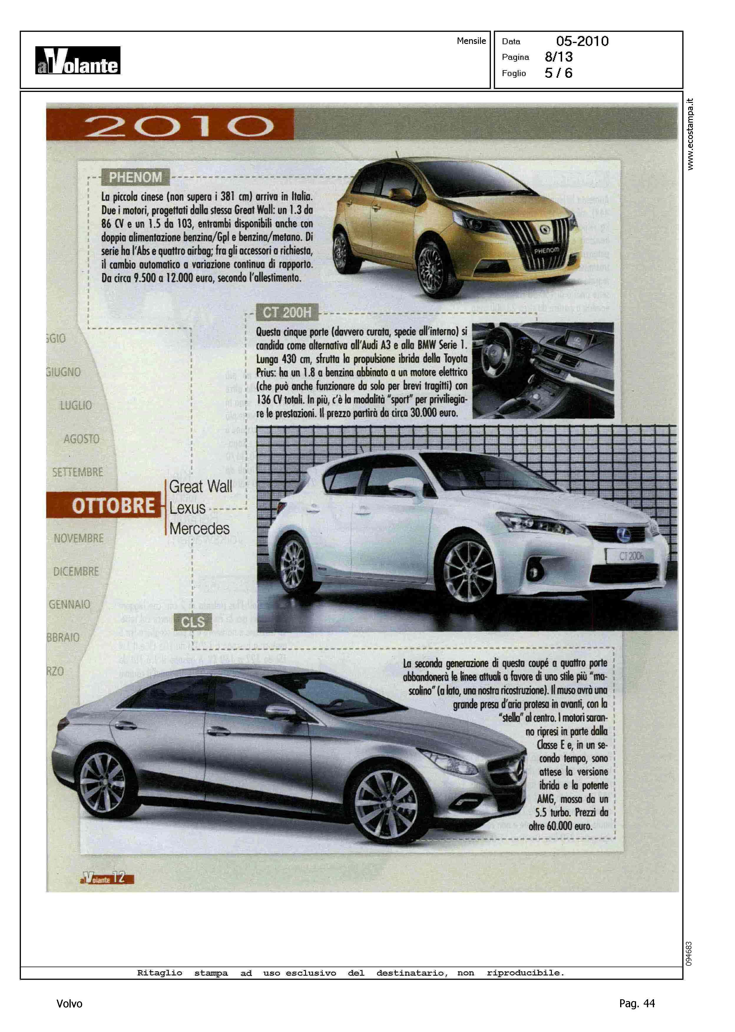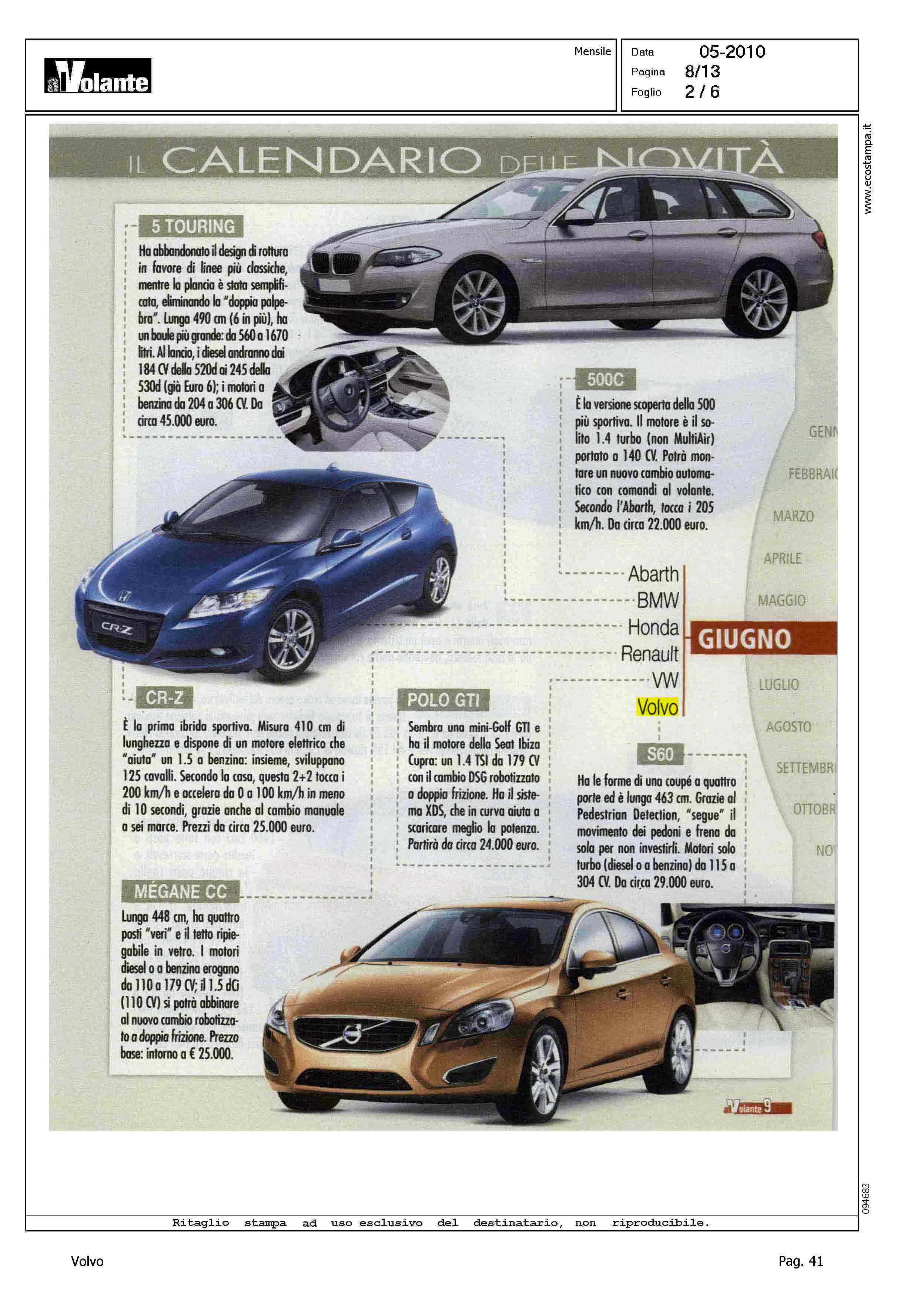 Author: Line: S60 Model: Linea S60 Show Subject: - Title: 2010 - IL CALENDARIO DELLE NOVITA'Highlight: CALENDARIO NOVITA' ANNO 2010 - DESIGN - SICUREZZA - PEDESTRIAN DETECTION - MOTORI - PREZZI, FASCIA