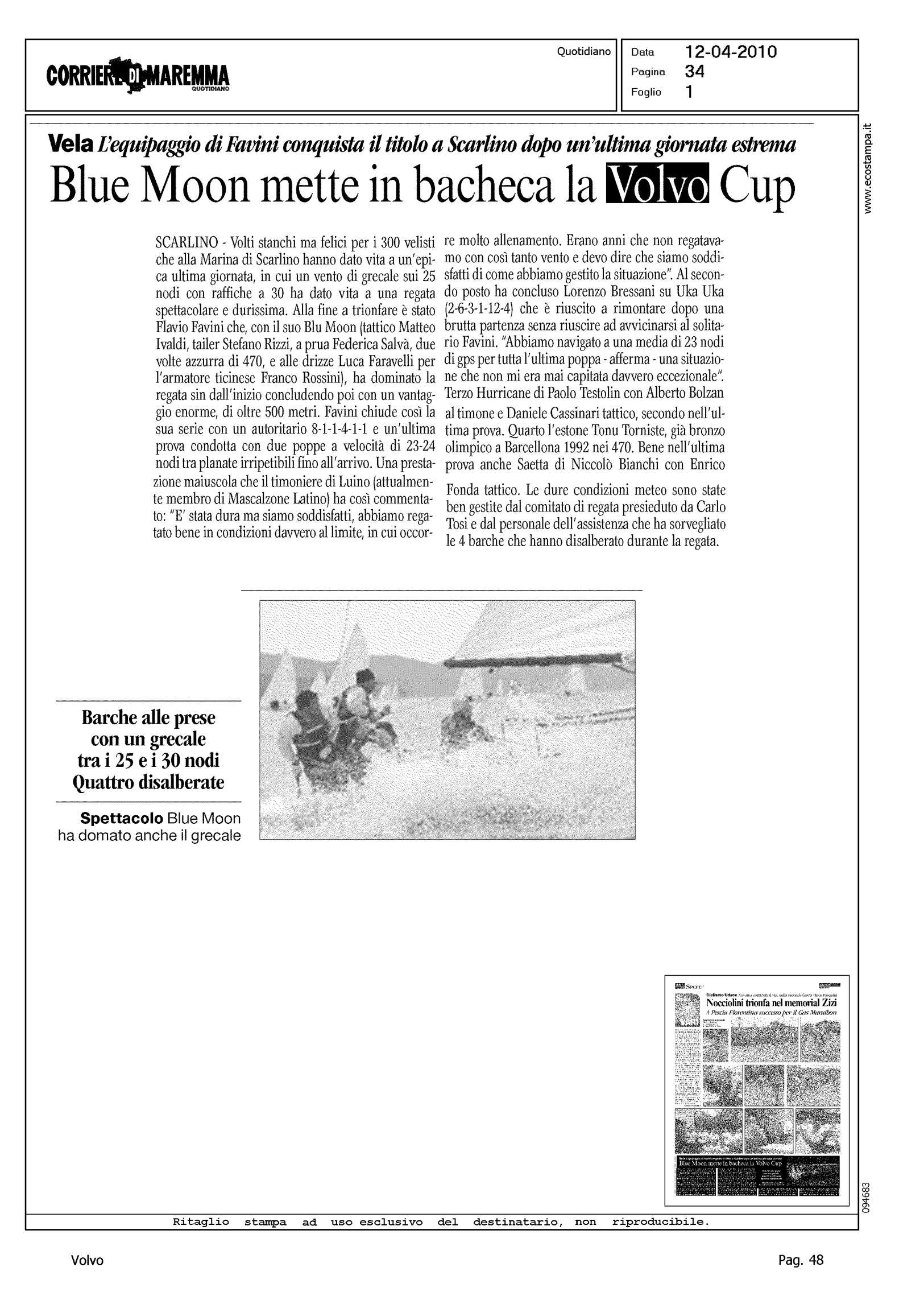 Author: Line: Corporate Model: Corporate Subject: Volvo Cup Title: BLUE MOON METTE IN BACHECA LA VOLVO CUPHighlight: REGATA SCARLINO