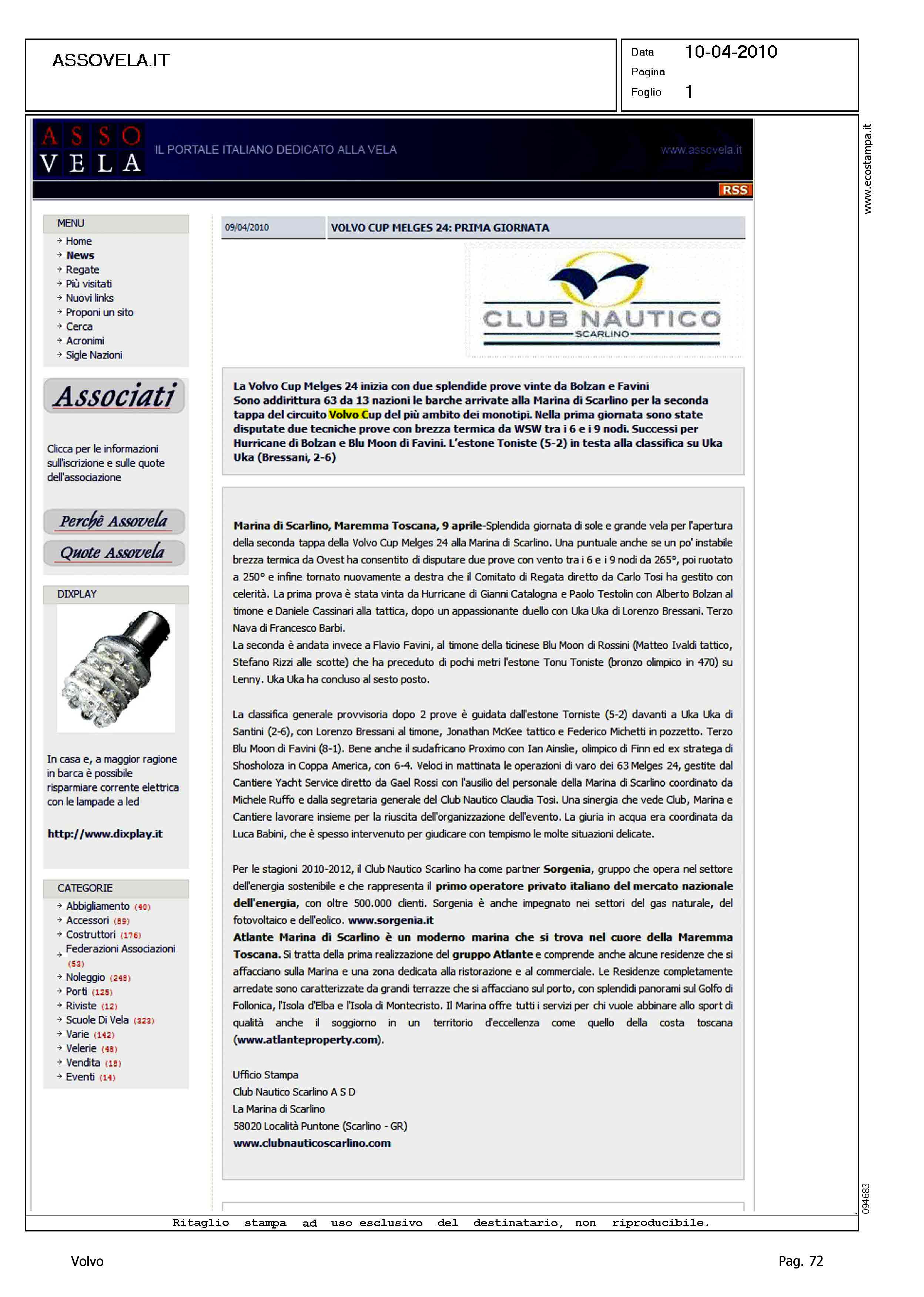 Author: Line: Corporate Model: Corporate Subject: Volvo Cup Title: VOLVO CUP MELGES 24: PRIMA GIORNATAHighlight: REGATA SCARLINO