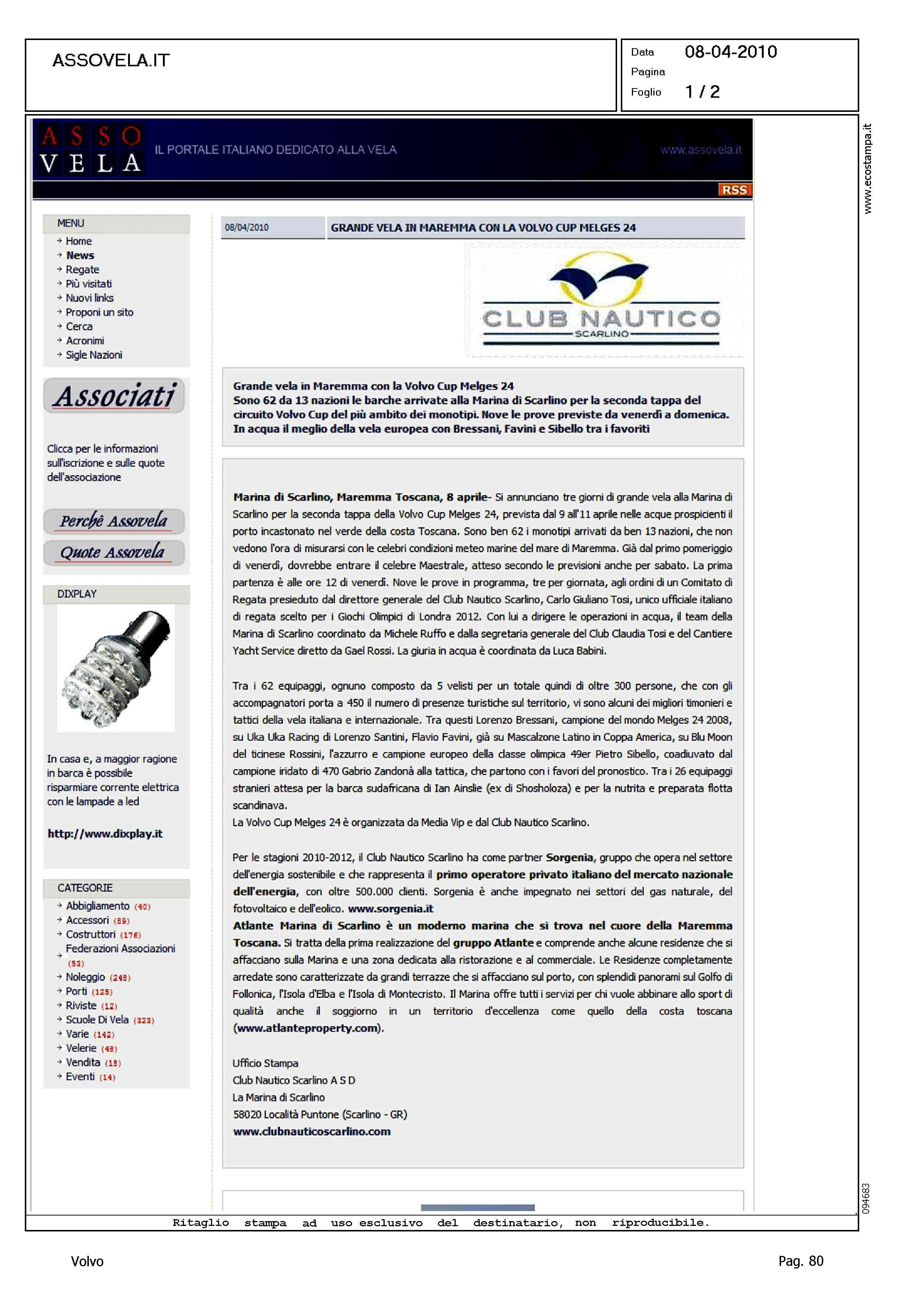 Author: Line: Corporate Model: Corporate Subject: Volvo Cup Title: GRANDE VELA IN MAREMMA CON LA VOLVO CUP MELGES 24Highlight: REGATA SCARLINO