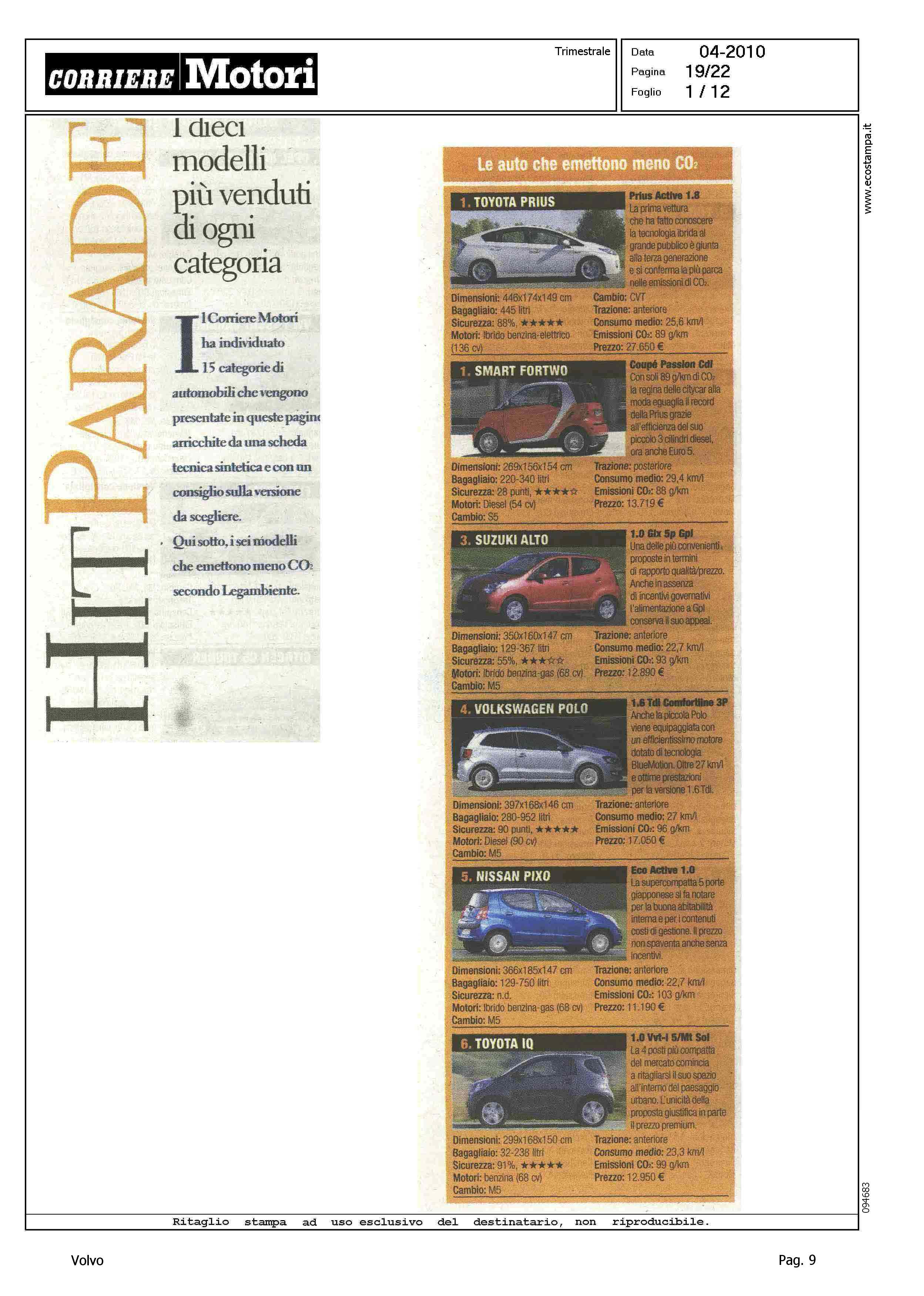 Title: HIT PARADE - I DIECI MODELLI PIU' VENDUTI DI OGNI CATEGORIA