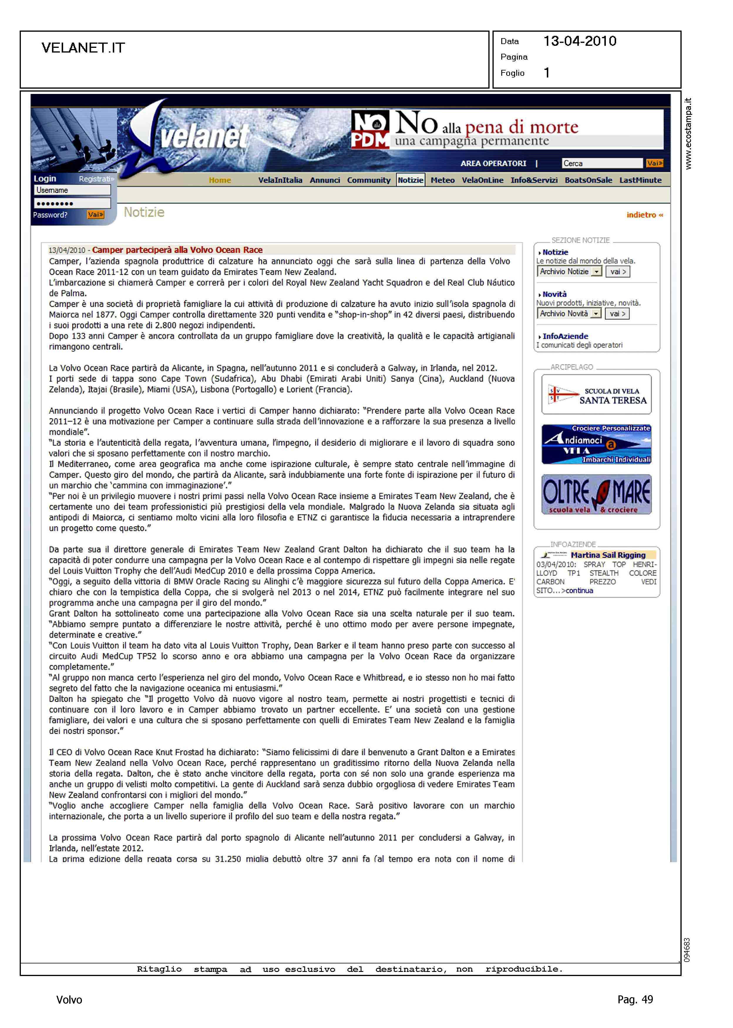 Author: Line: Corporate Model: Corporate Subject: Volvo Ocean Race Title: CAMPER PARTECIPERA' ALLA VOLVO OCEAN RACEHighlight: UNVEILING SPONSOR VOR 2011
