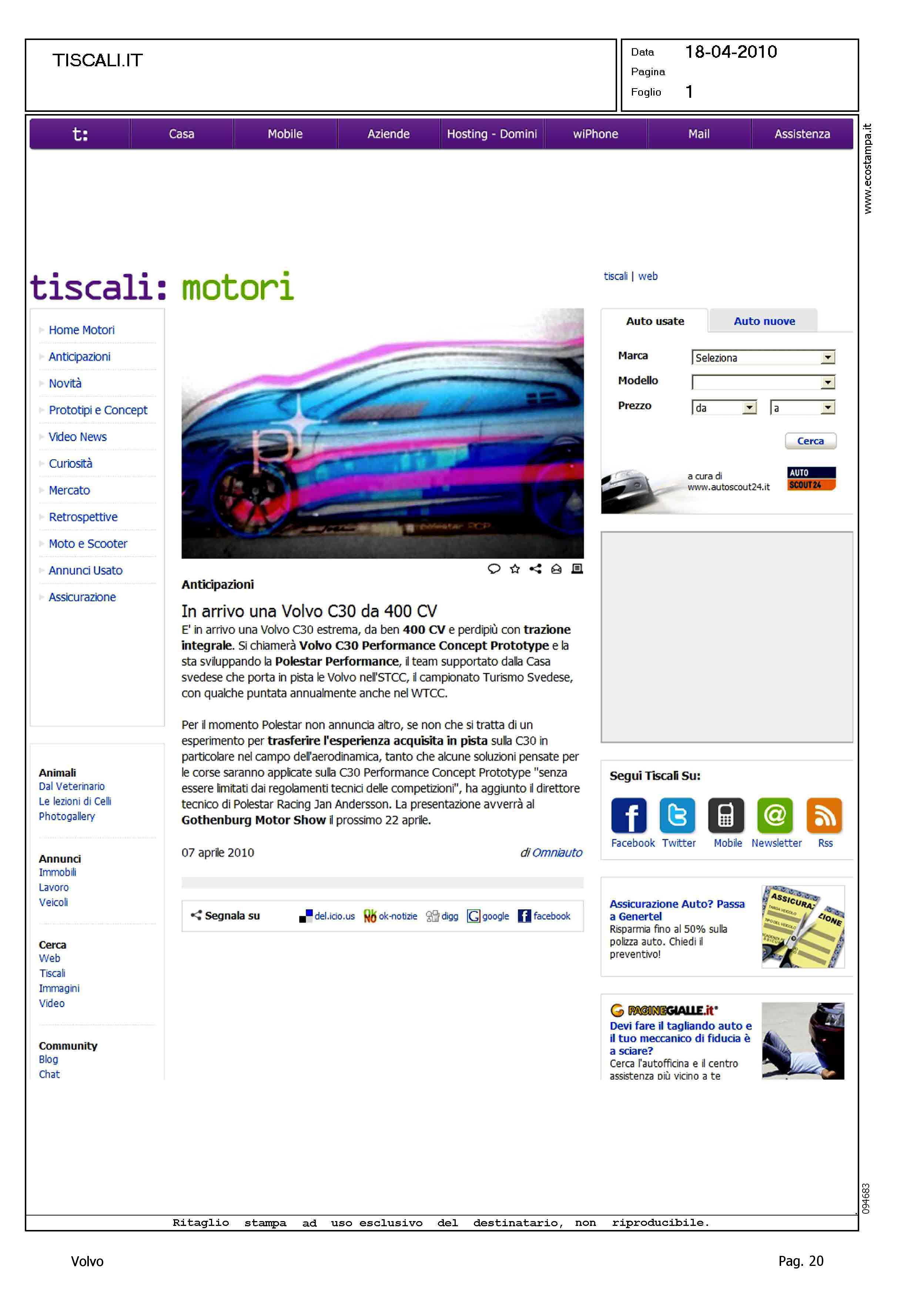 Author: Line: Corporate Model: Volvo C30 Subject: - Title: IN ARRIVO UNA VOLVO C30 DA 400CVHighlight: STCC - WTCC - PARTECIPAZIONE PROTOTIPO VOLVO C30 PERFORMANCE