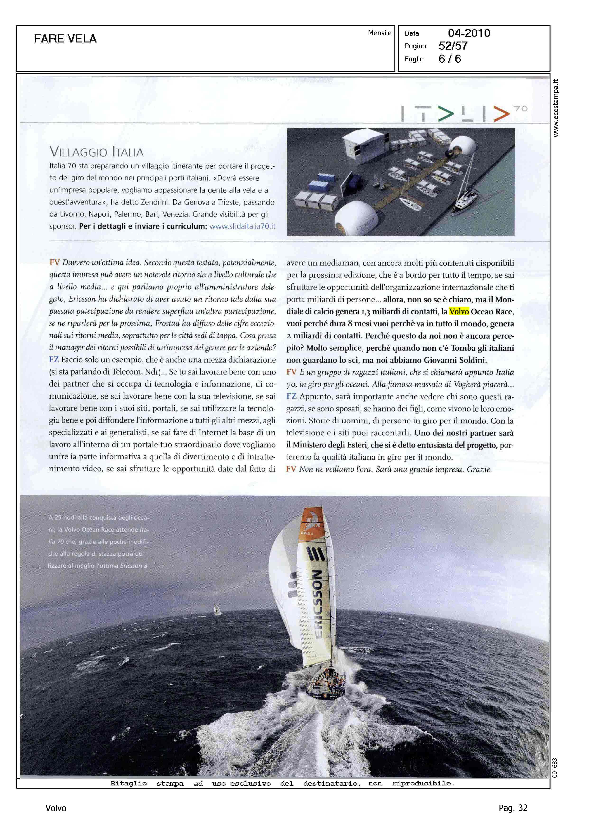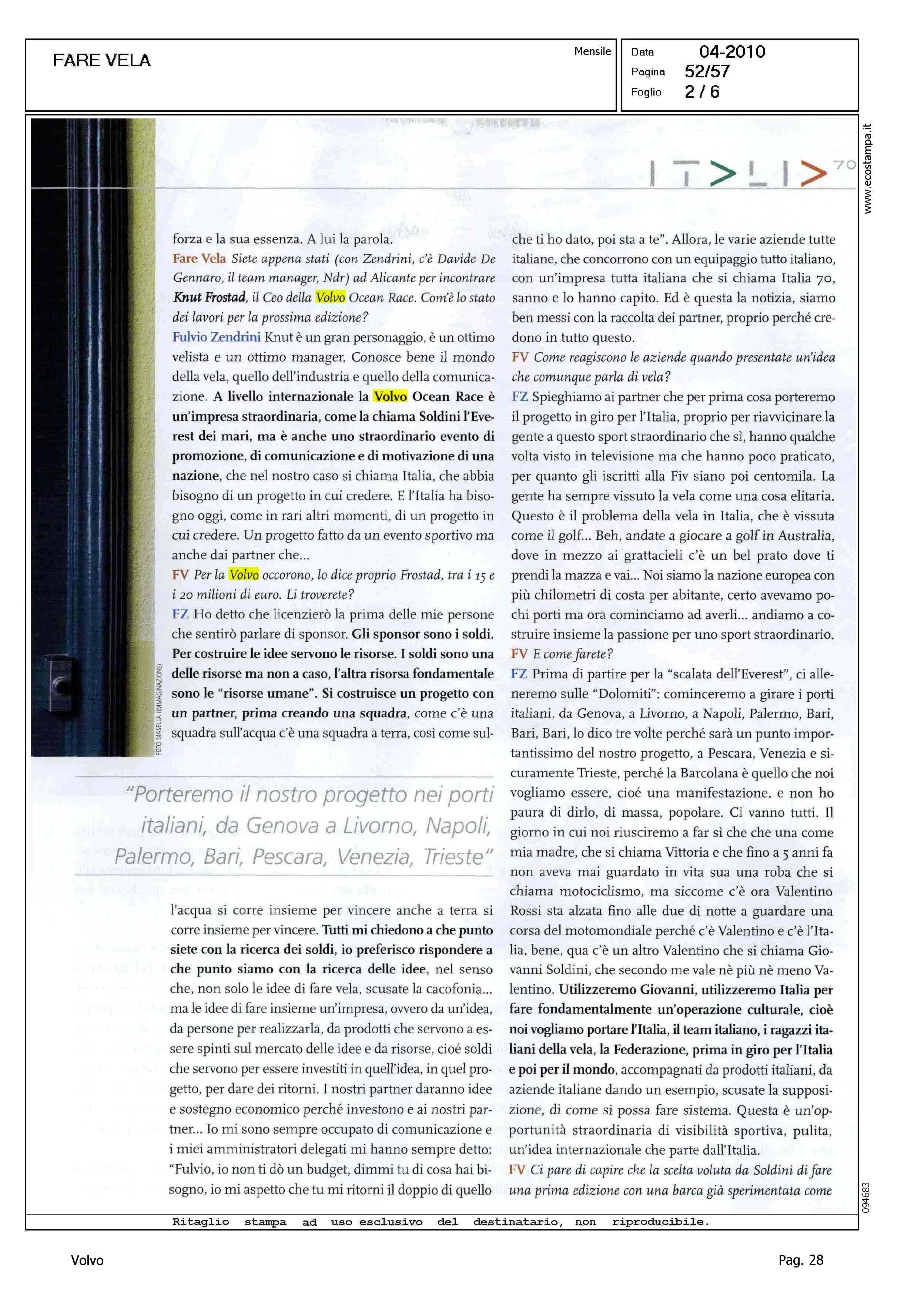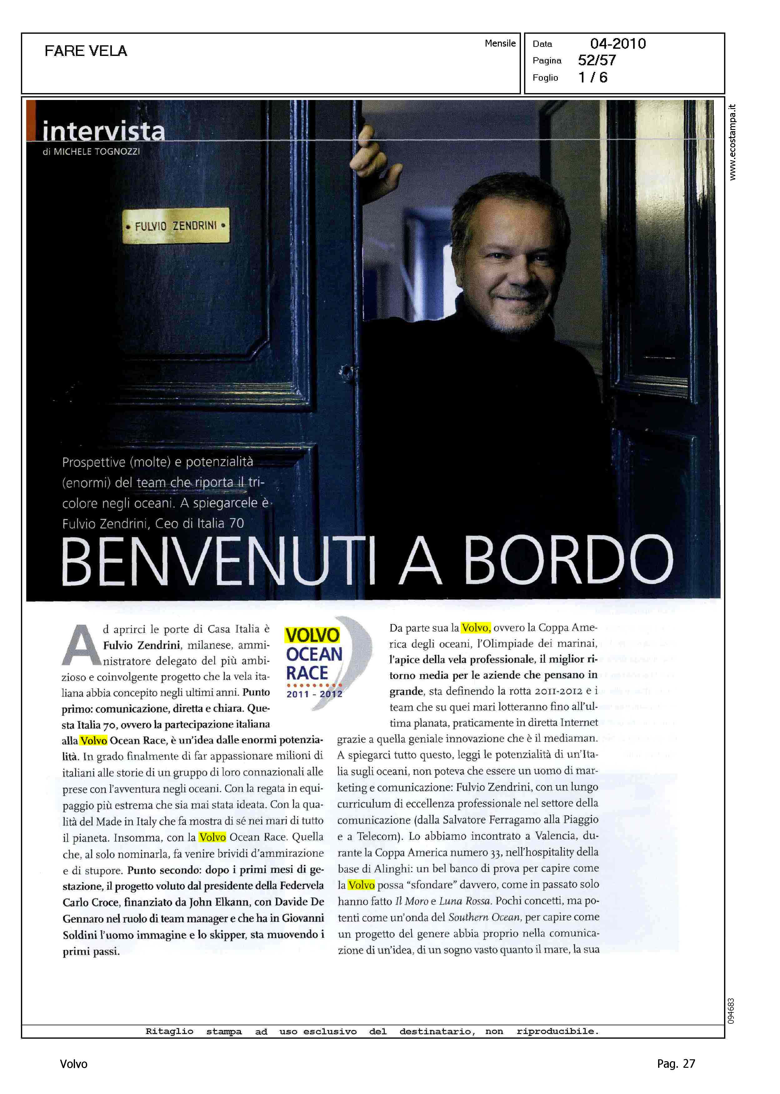 Author: TOGNOZZI, MICHELELine: Corporate Model: Corporate Subject: Volvo Ocean Race Title: BENVENUTI A BORDOHighlight: INTERVISTA ZENDRINI - PARTECIPAZIONE ITALIANA ALLA VOR 2011
