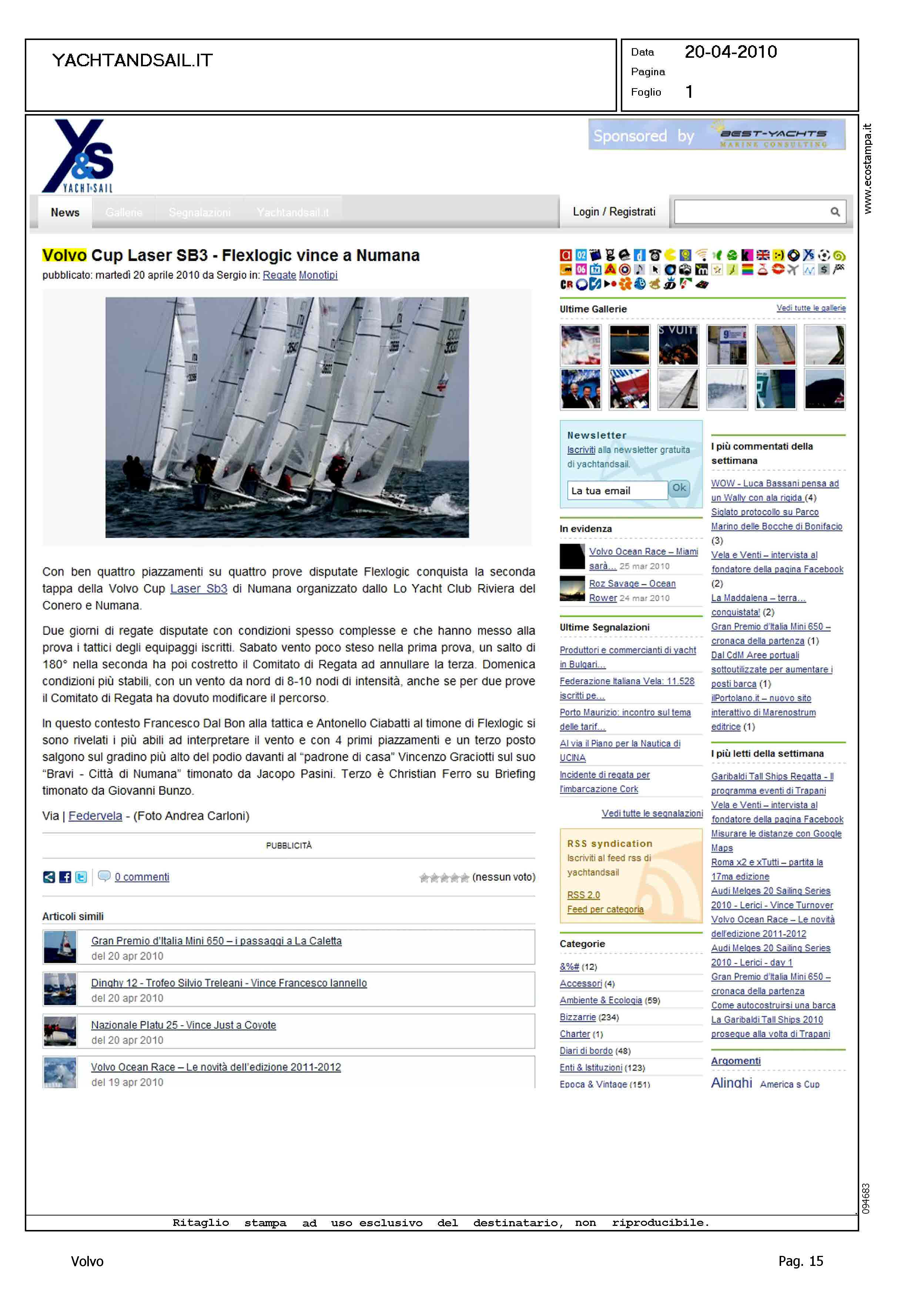 Author: Line: Corporate Model: Corporate Subject: Volvo Cup Title: VOLVO CUP LASER SB3 - FLEXLOGIC VINCE A NUMANAHighlight: REGATA DI NUMANA