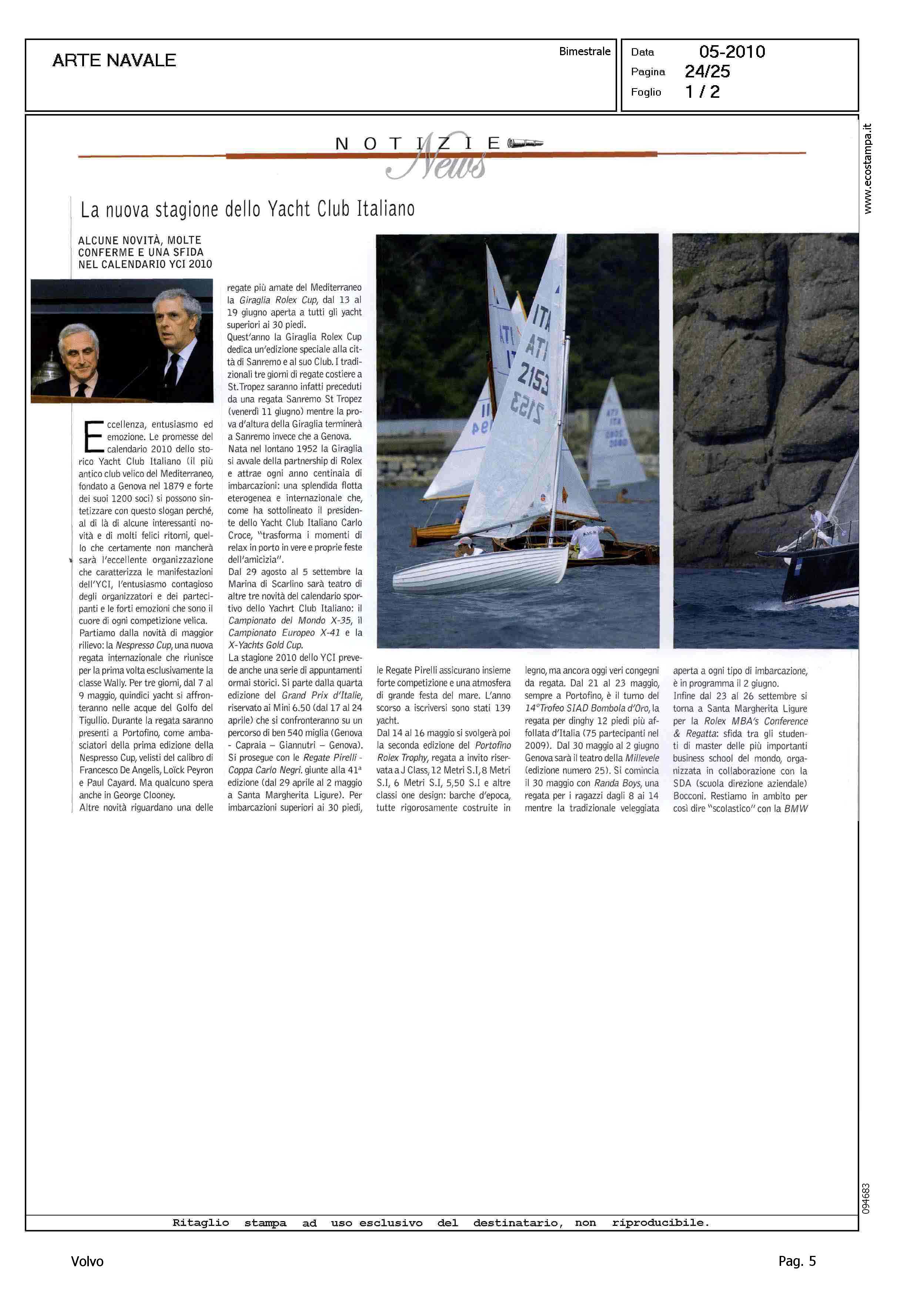 Author: SALVATORI, NICOLETTALine: Corporate Model: Corporate Subject: Volvo Ocean Race Title: LA NUOVA STAGIONE DELLO YACHT CLUB ITALIANOHighlight: PARTECIPAZIONE ITALIANA VOR 2011