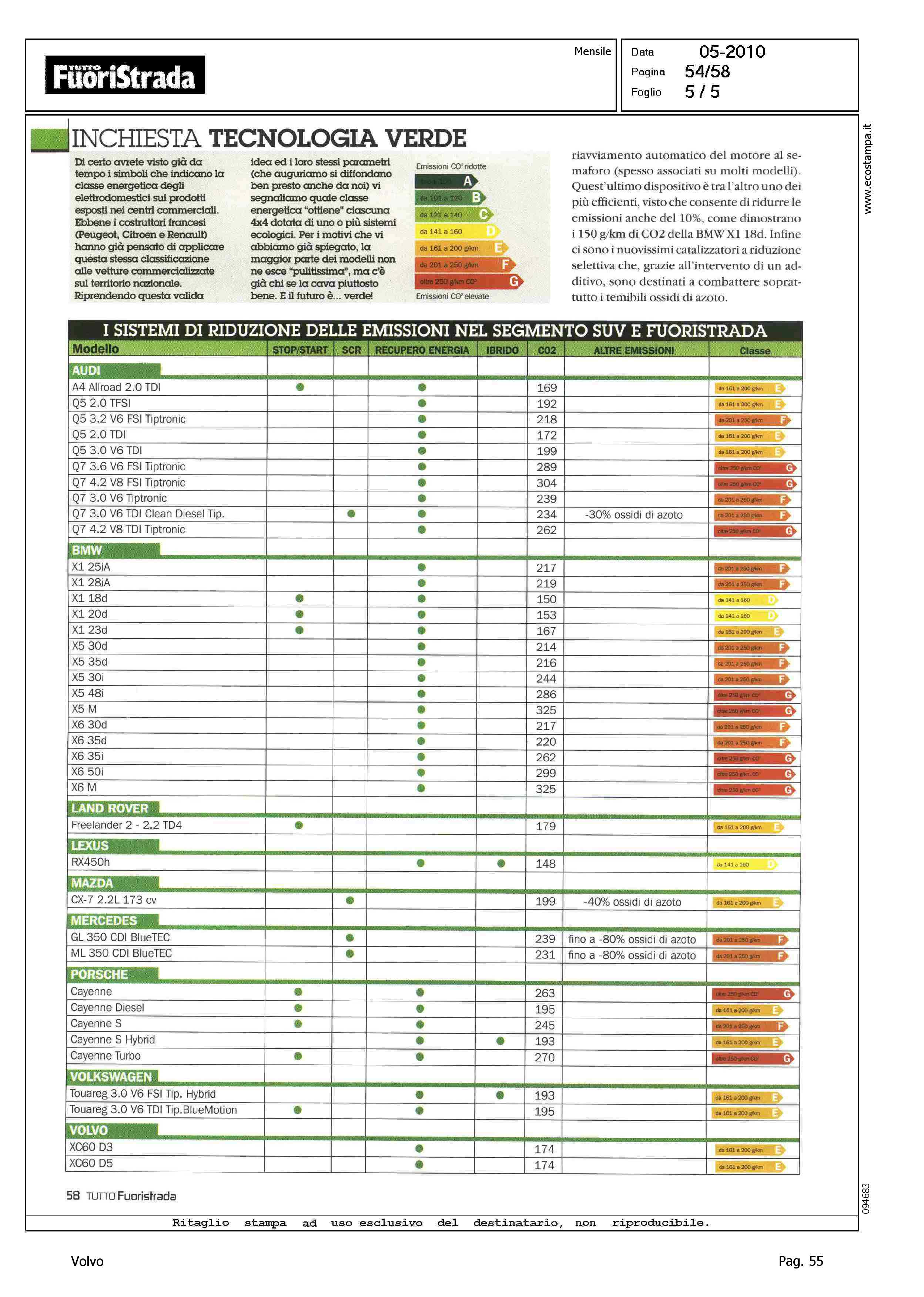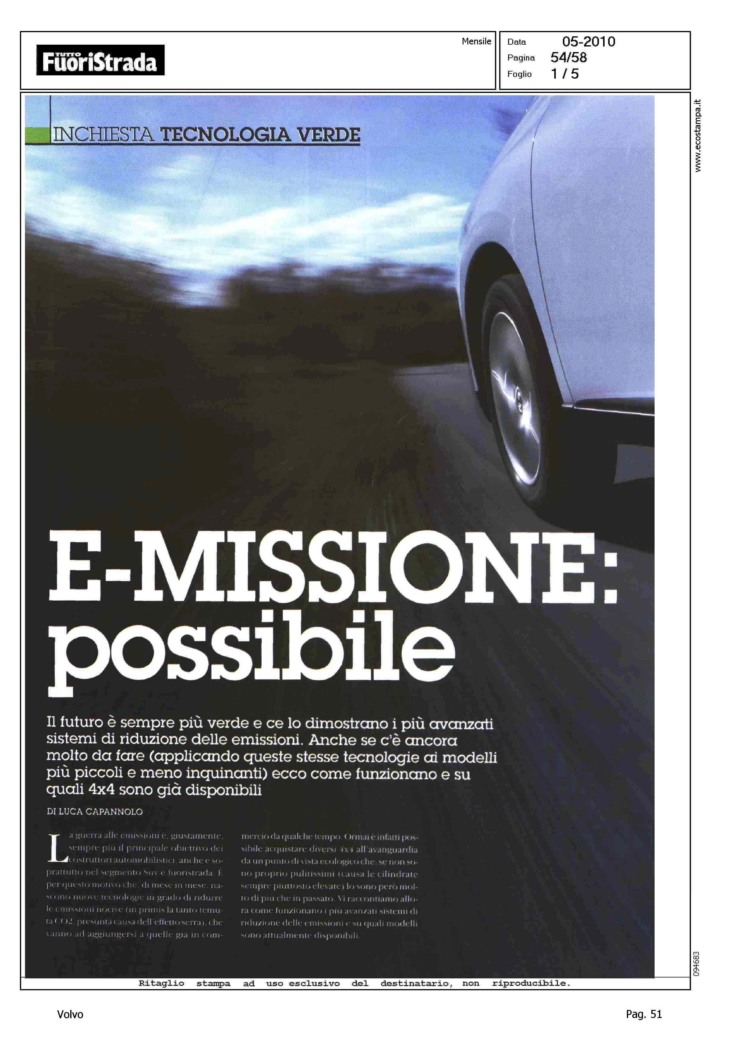 Author: CAPANNOLO, LUCALine: XC60 Model: Subject: - Title: E-MISSIONE POSSIBILEHighlight: INCHIESTA TECNOLOGIA VERDE - XC60 IN TABELLA SISTEMI RIDUZIONE EMISSIONI