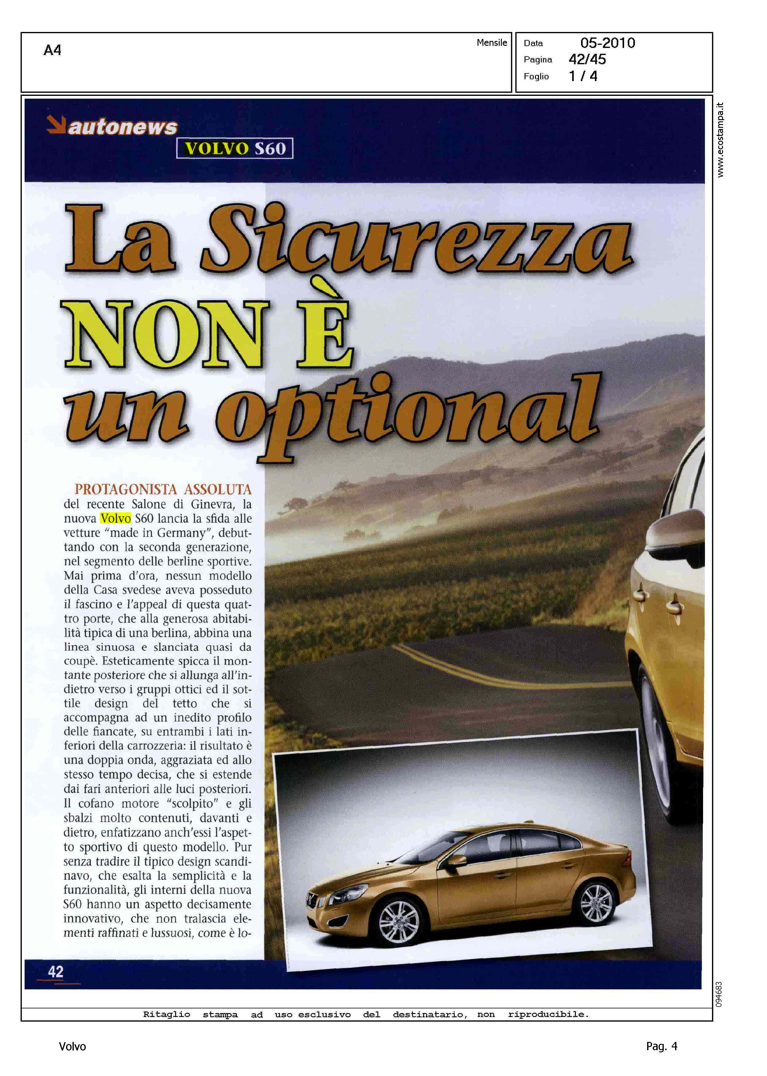 Author: Line: S60 Model: Linea S60 Show Subject: - Title: LA SICUREZZA NON E' UN OPTIONALHighlight: GINEVRA - DESIGN - ABITACOLO - MOTORI - TELAIO - SICUREZZA - PEDESTRIAN DETECTION