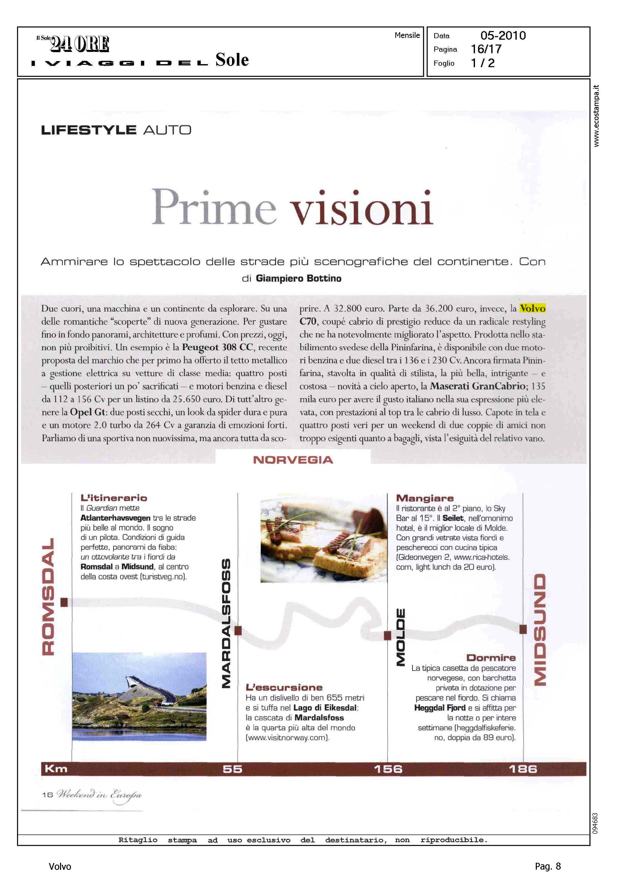 Author: BOTTINO, GIAMPIEROLine: Corporate Model: Volvo C70 Convertible Subject: - Title: PRIME VISIONIHighlight: (I VIAGGI DEL SOLE) - PREZZO - DESIGN - MOTORE