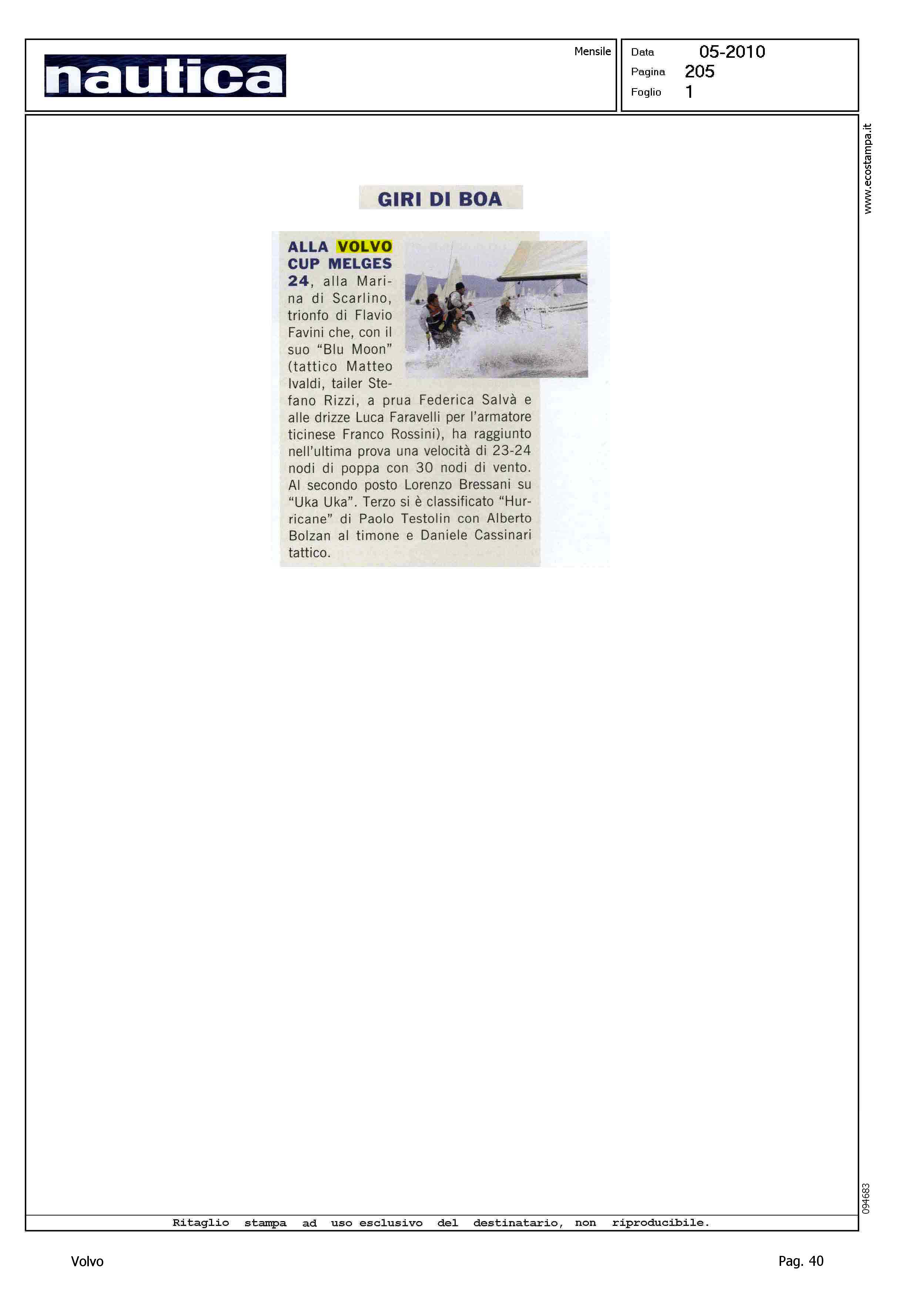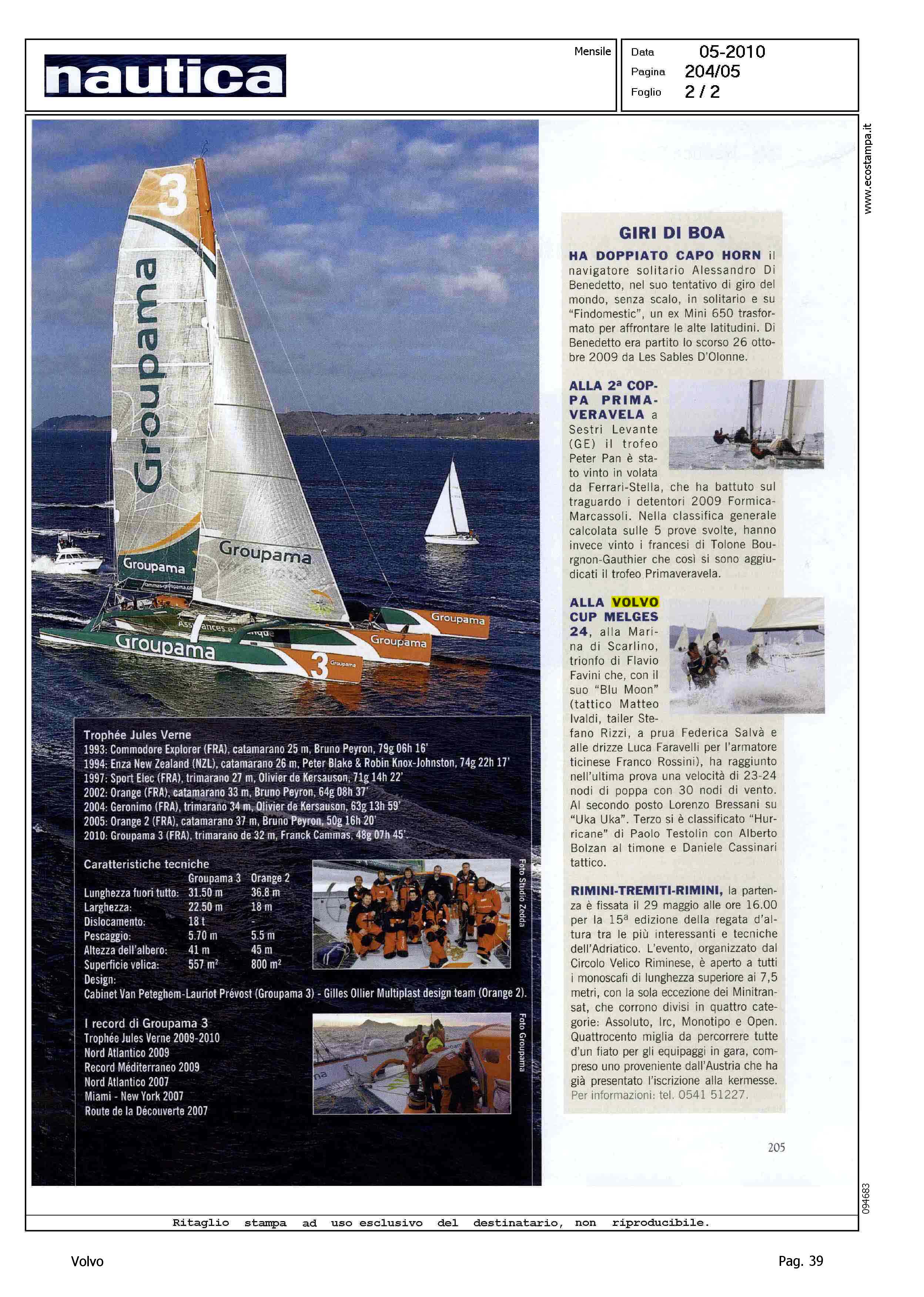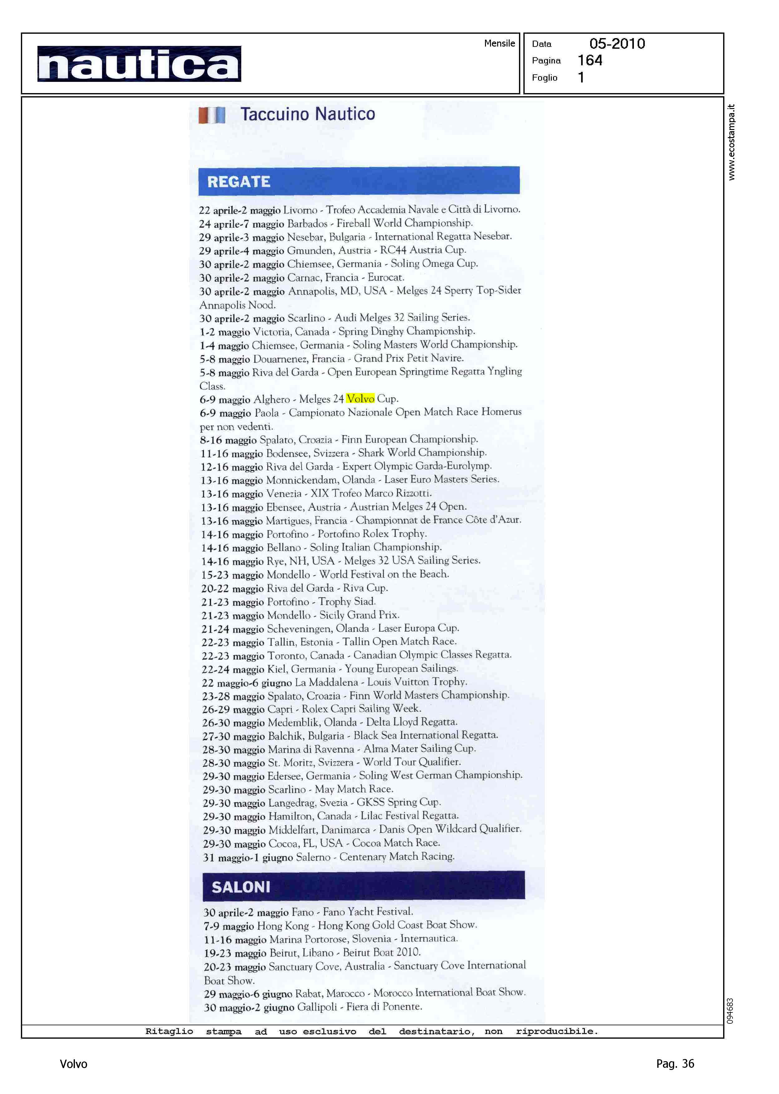 Author: NEGLIA, ROBERTOLine: Corporate Model: Corporate Subject: Volvo Cup Title: TACCUINO NAUTICO - STRAMBATE - NAUTICA SPORT - GIRI DI BOAHighlight: TABELLA CALENDARIO MAGGIO - REGATA DI SCARLINO