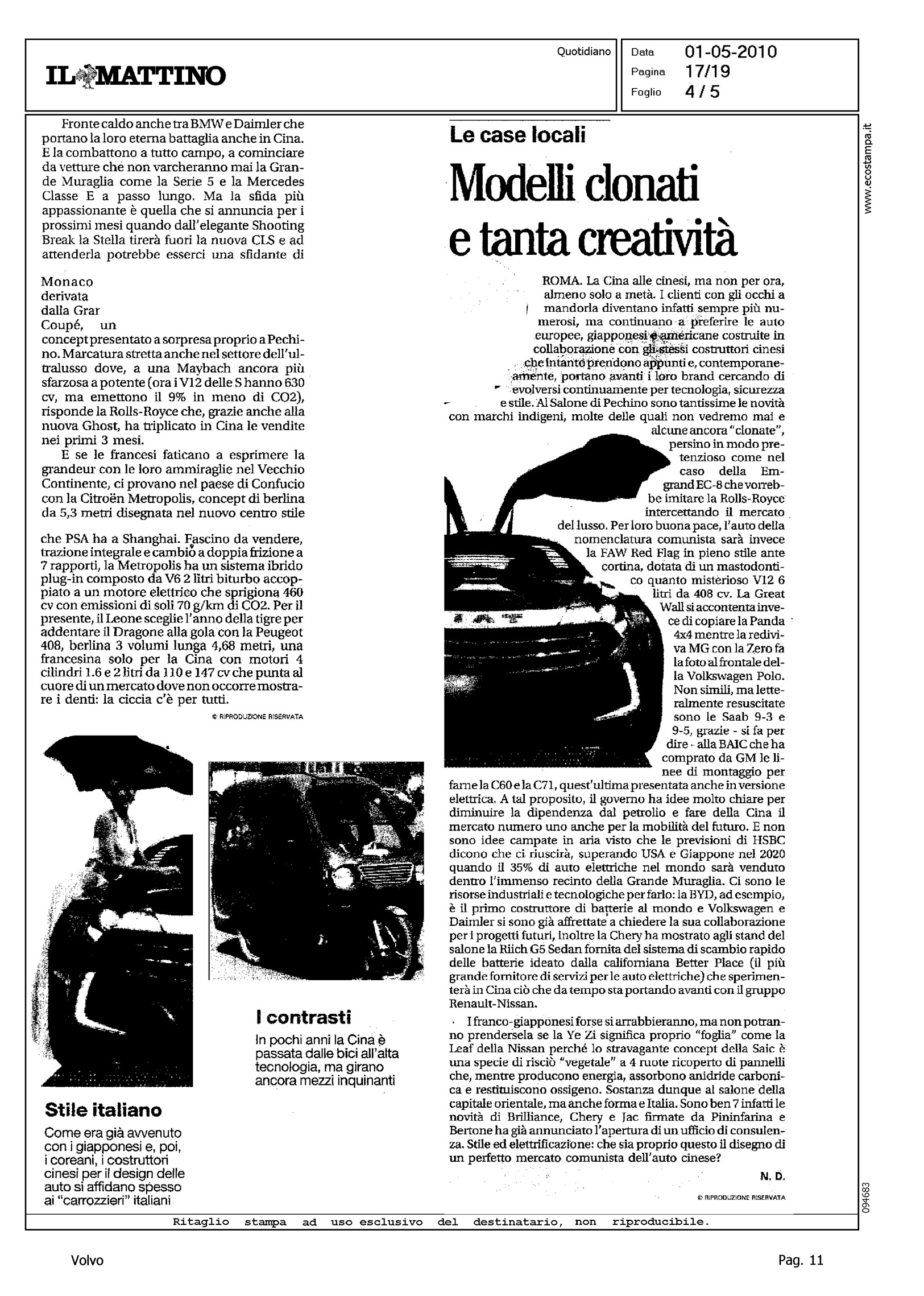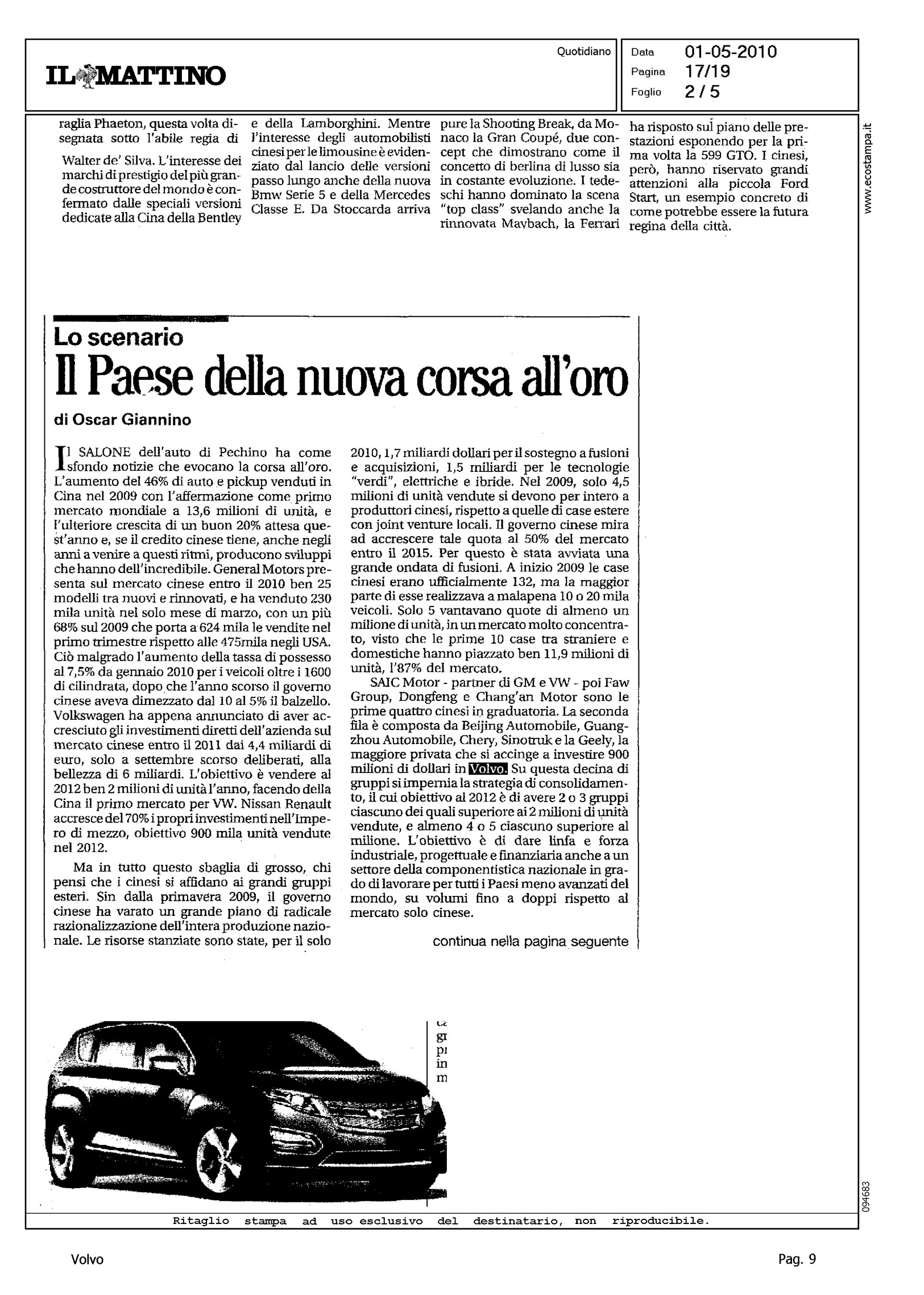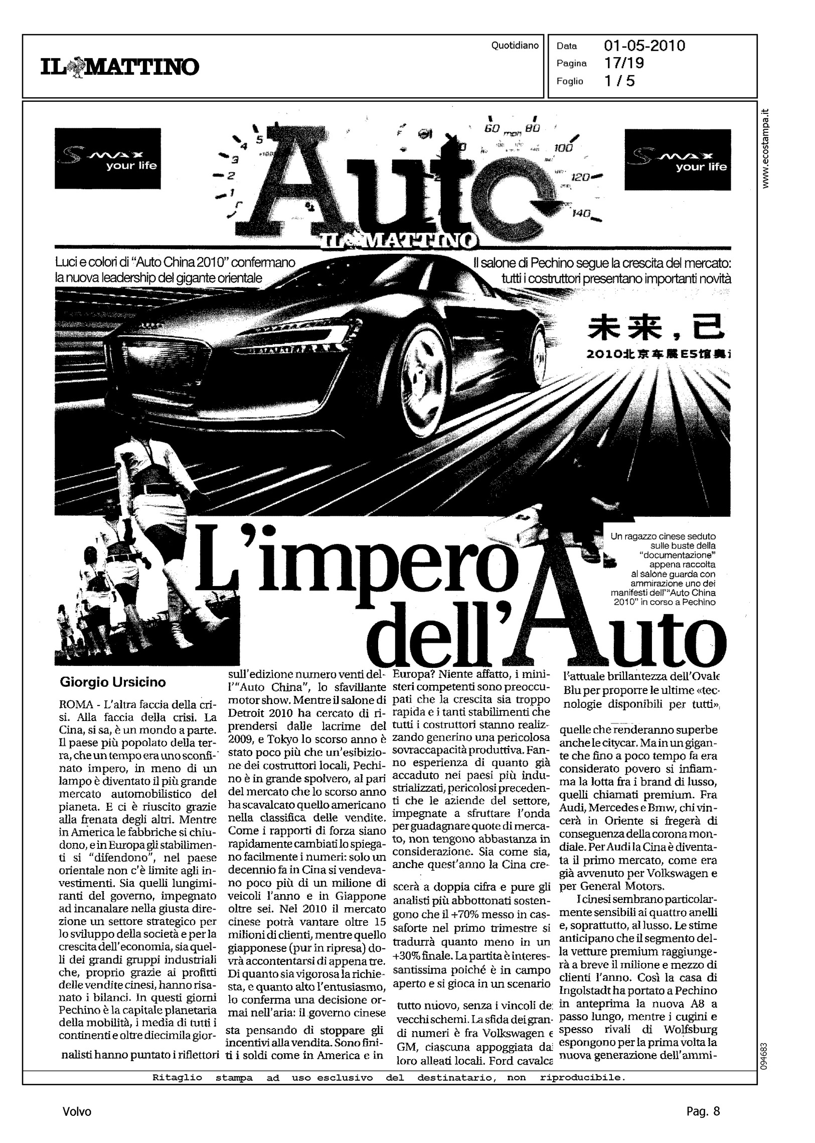 Author: GIANNINO, OSCARLine: Corporate Model: Corporate Subject: - Title: IL PAESE DELLA NUOVA CORSA ALL'OROHighlight: SALONE DI PECHINO