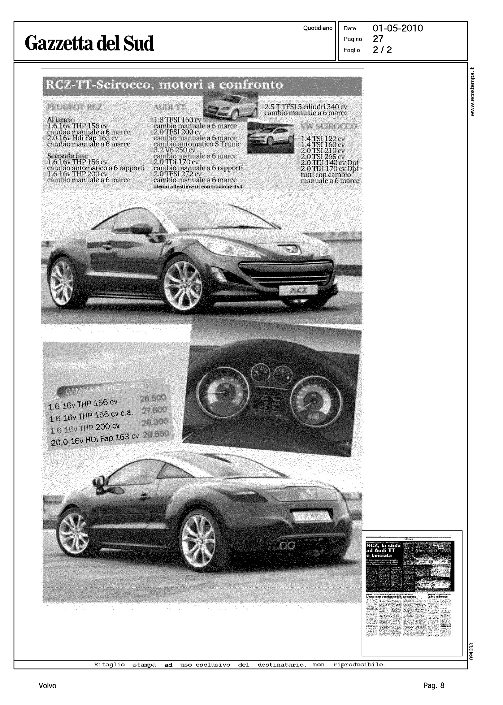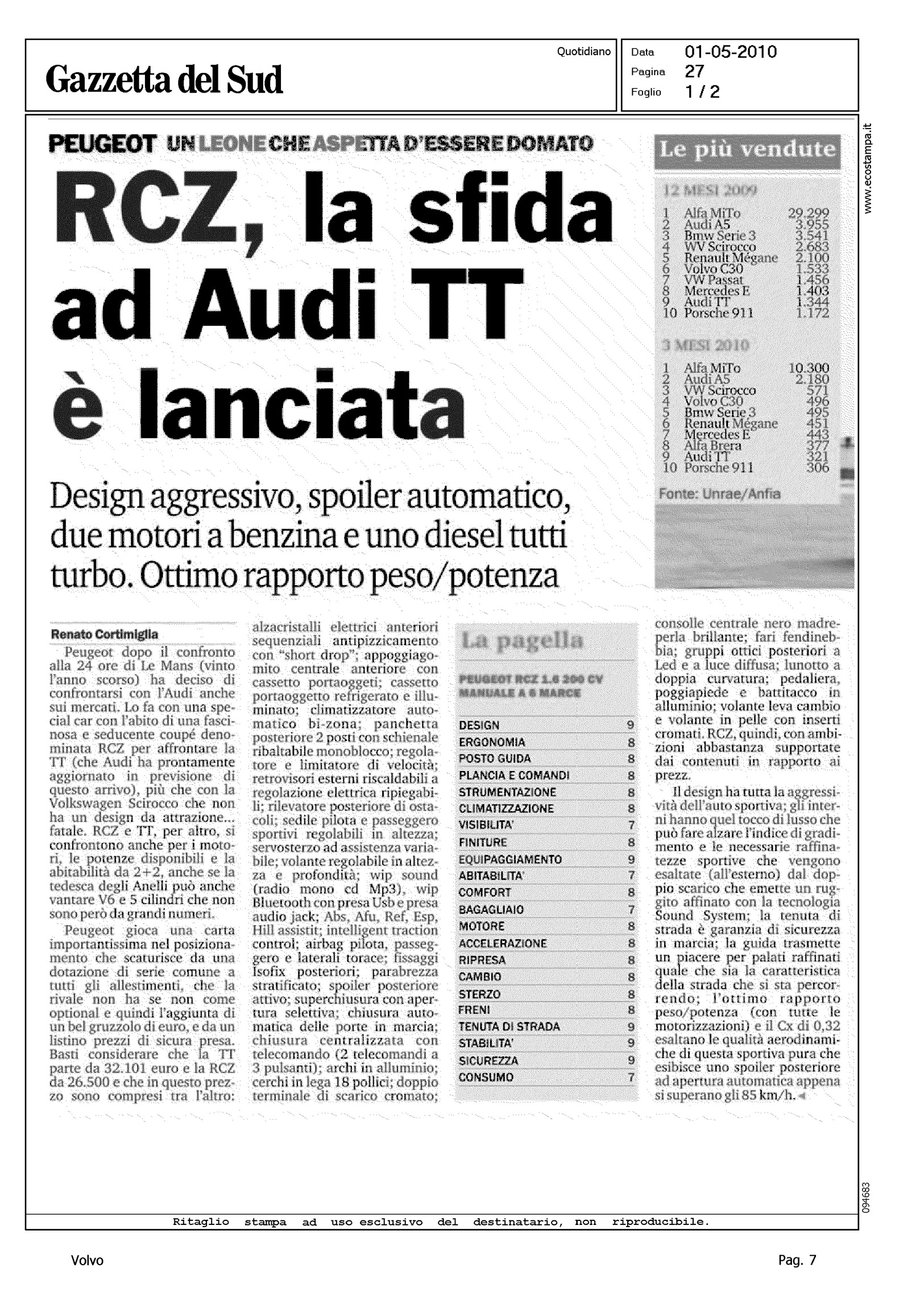 Author: CORTIMIGLIA, RENATOLine: Corporate Model: Volvo C30 Subject: - Title: LE PIU' VENDUTEHighlight: TABELLE VENDITE 2009 E 2010 SEGMENTO VOLVO C30, 2009 SESTA POSIZIONE, 2010 QUARTA POSIZIONE