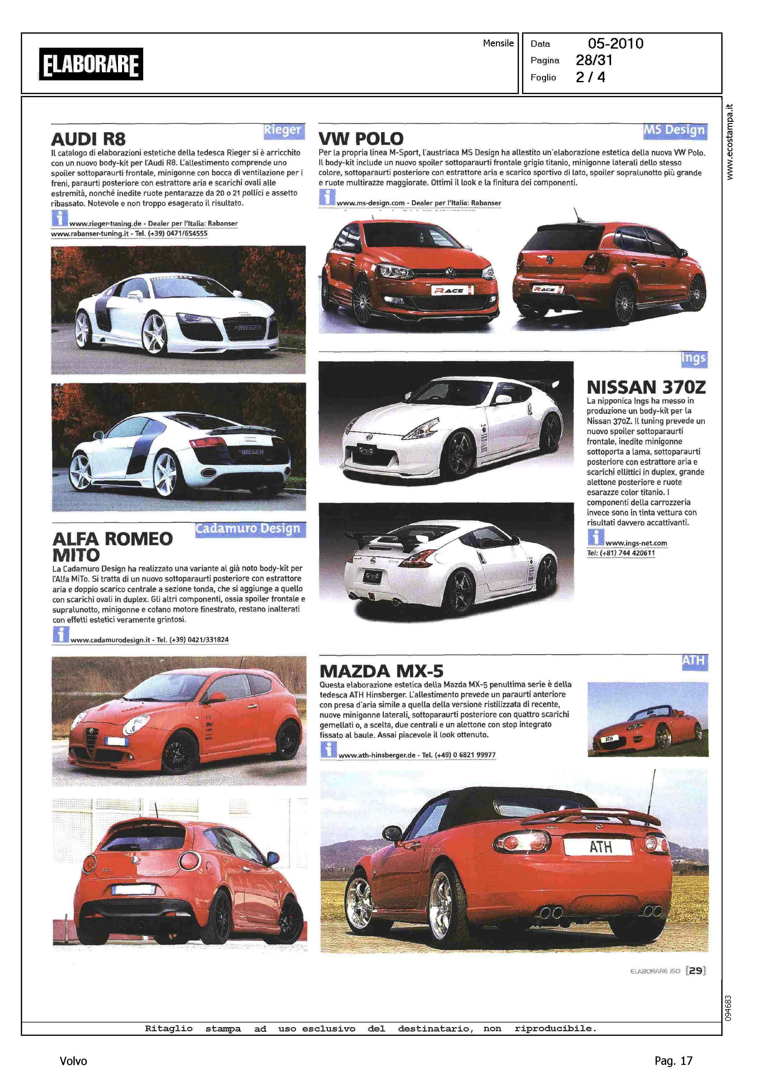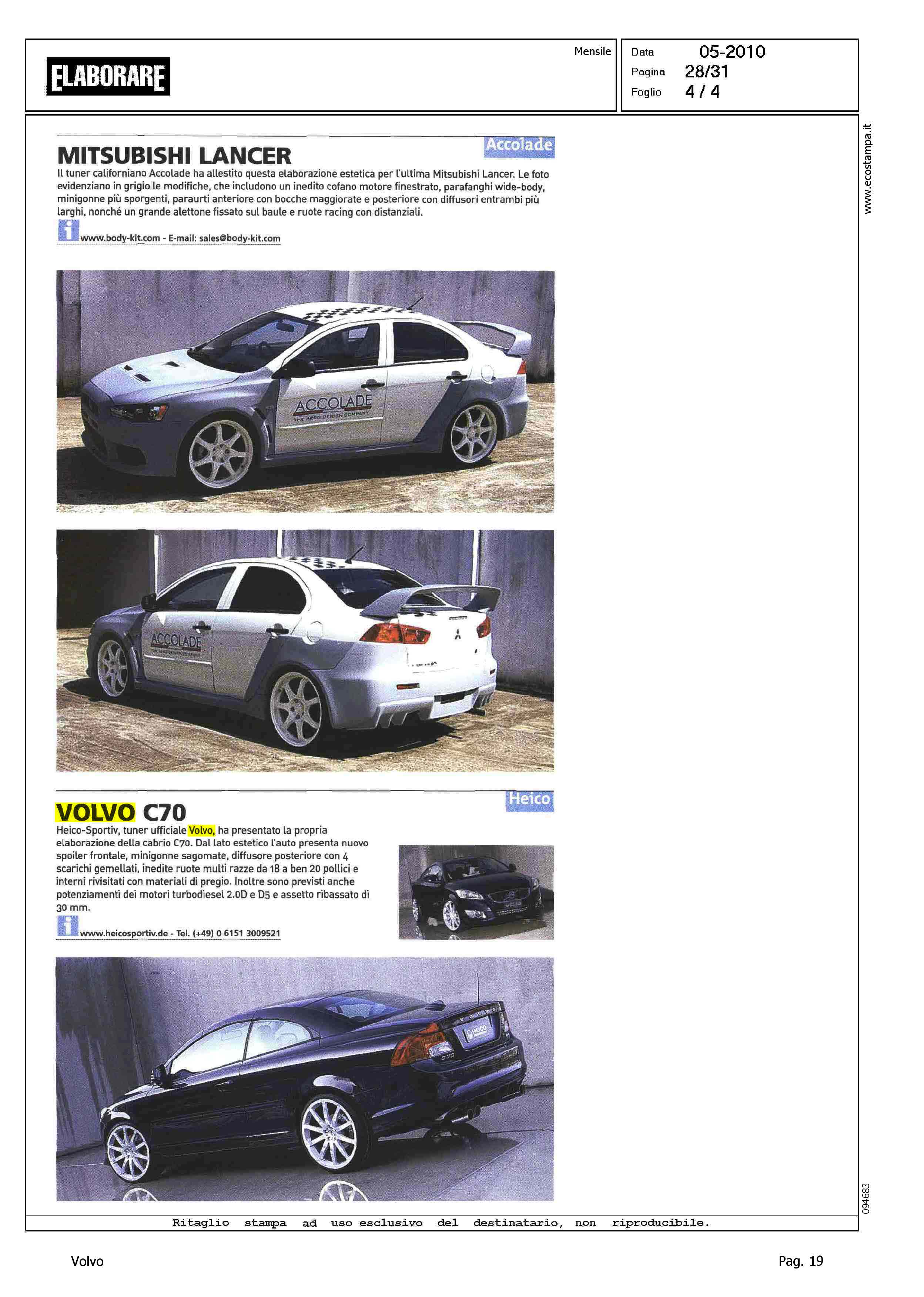 Author: ZEHNDER, GIORGIOLine: Corporate Model: Volvo C70 Convertible Subject: - Title: BODY KIT - VESTITE SU MISURAHighlight: SCHEDA PRODOTTO