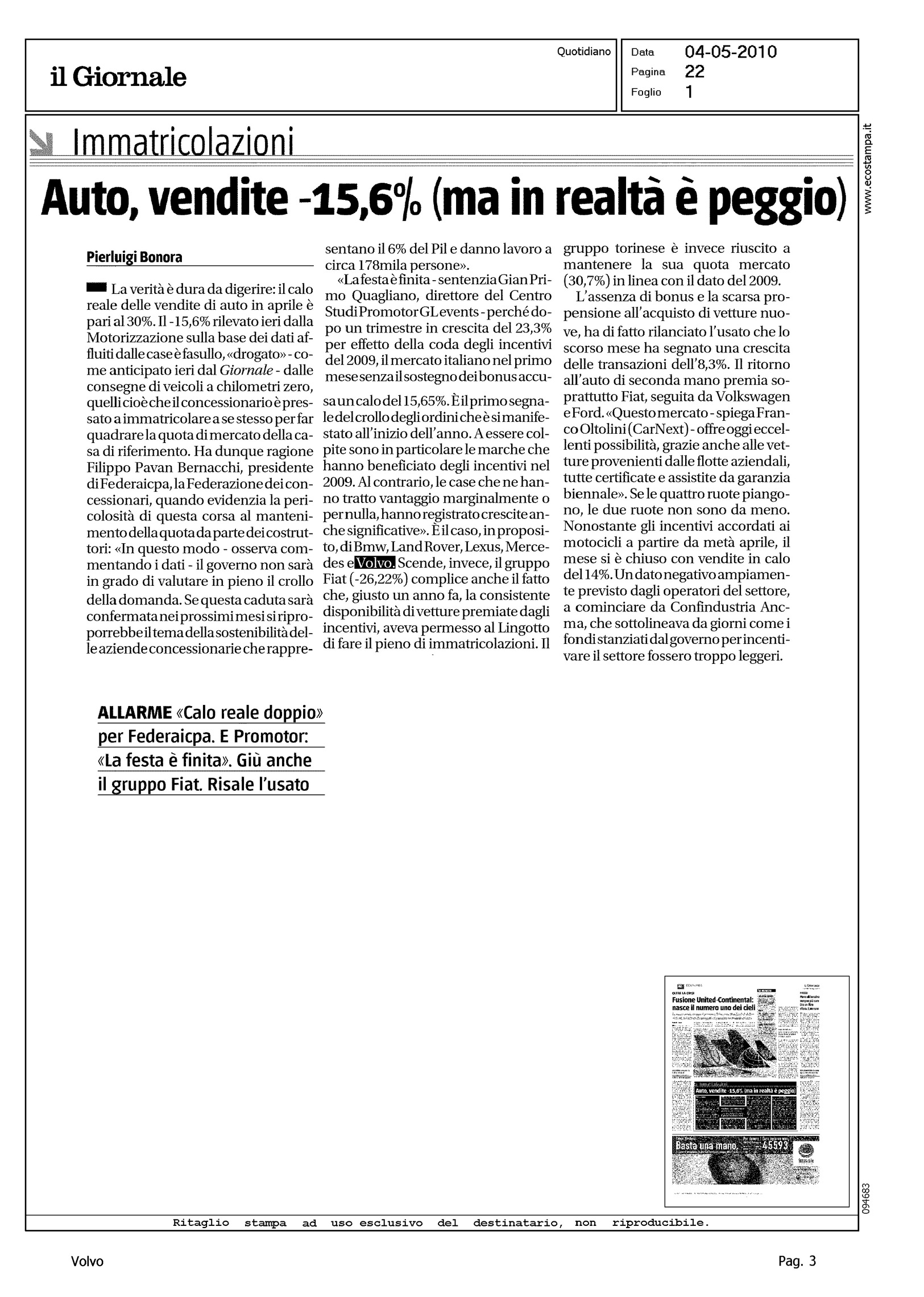 Author: BONORA, PIERLUIGILine: Corporate Model: Corporate Subject: - Title: AUTO, VENDITE - 15,6% (MA IN REALTA' E' PEGGIO)Highlight: VENDITE IN ITALIA