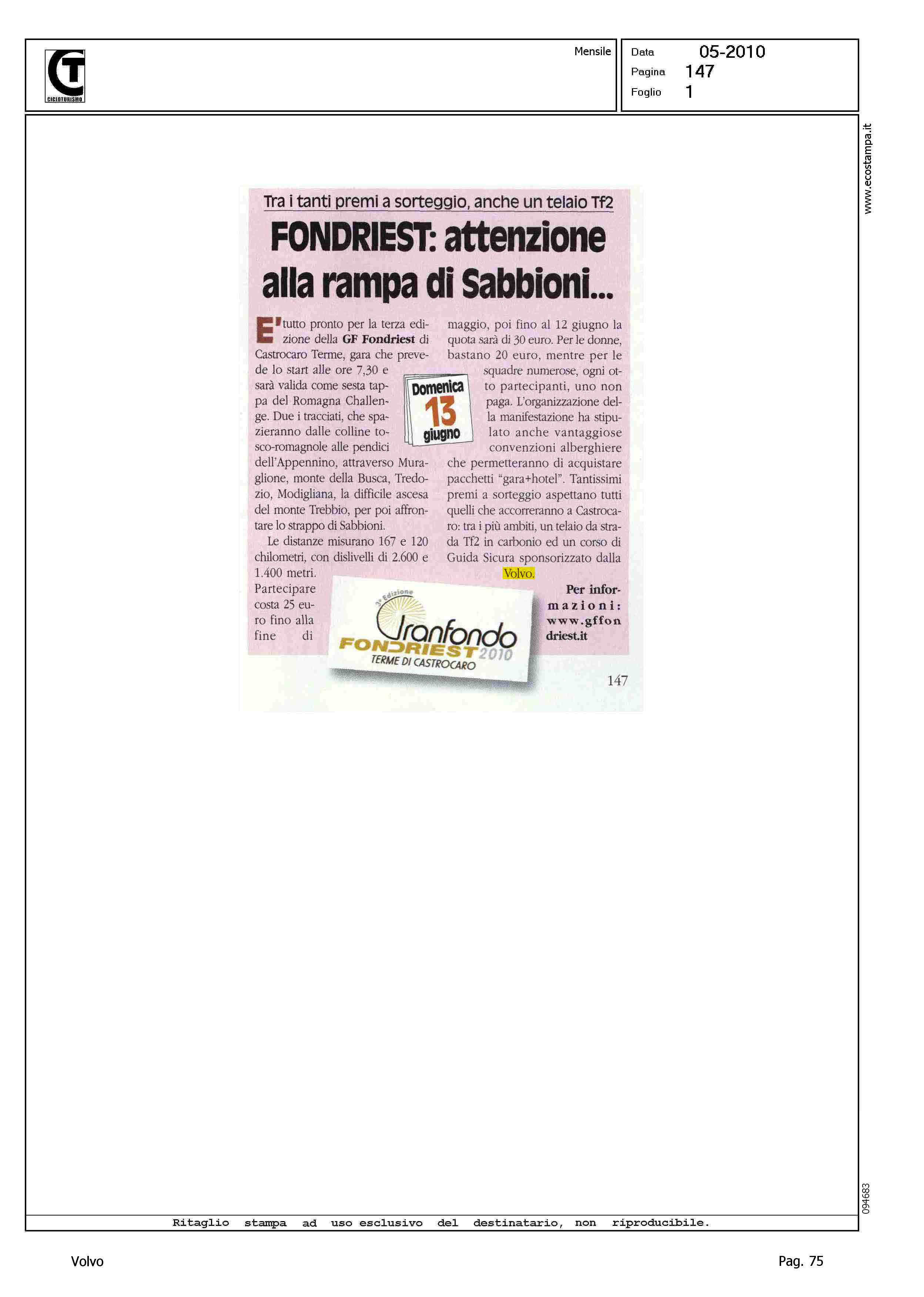 Author: Line: Corporate Model: Corporate Subject: - Title: FONDIREST: ATTENZIONE ALLA RAMPA DI SABBIONIHighlight: GF FONDRIEST 2010 - CASTROCARO