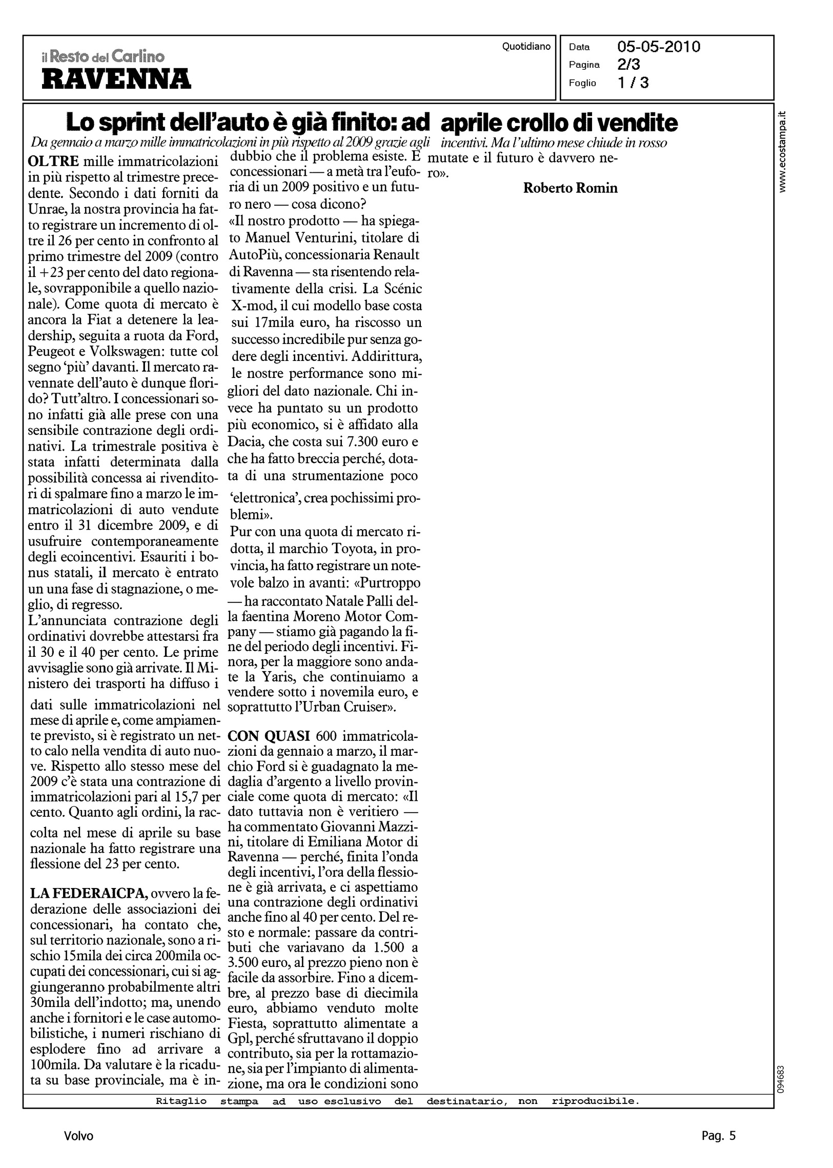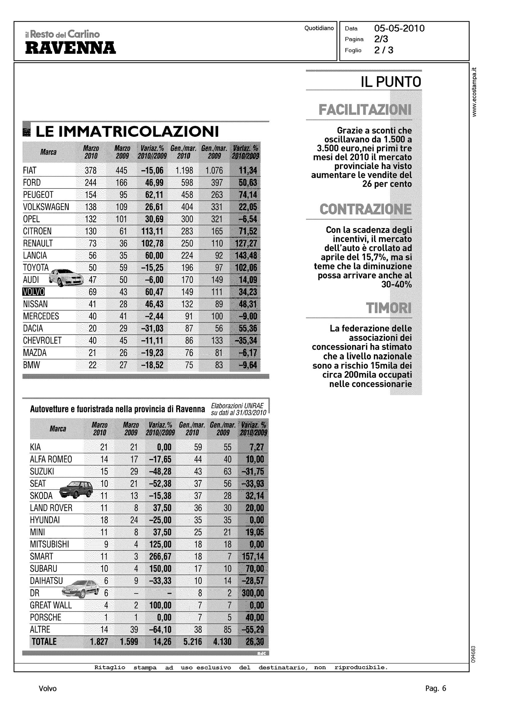 Author: ROMIN, ROBERTOLine: Corporate Model: Corporate Subject: - Title: LO SPRINT DELL'AUTO E' GIA' FINITO: AD APRILE CROLLO DI VENDITEHighlight: (EDIZIONE RAVENNA) - TABELLE MERCATO ITALIA