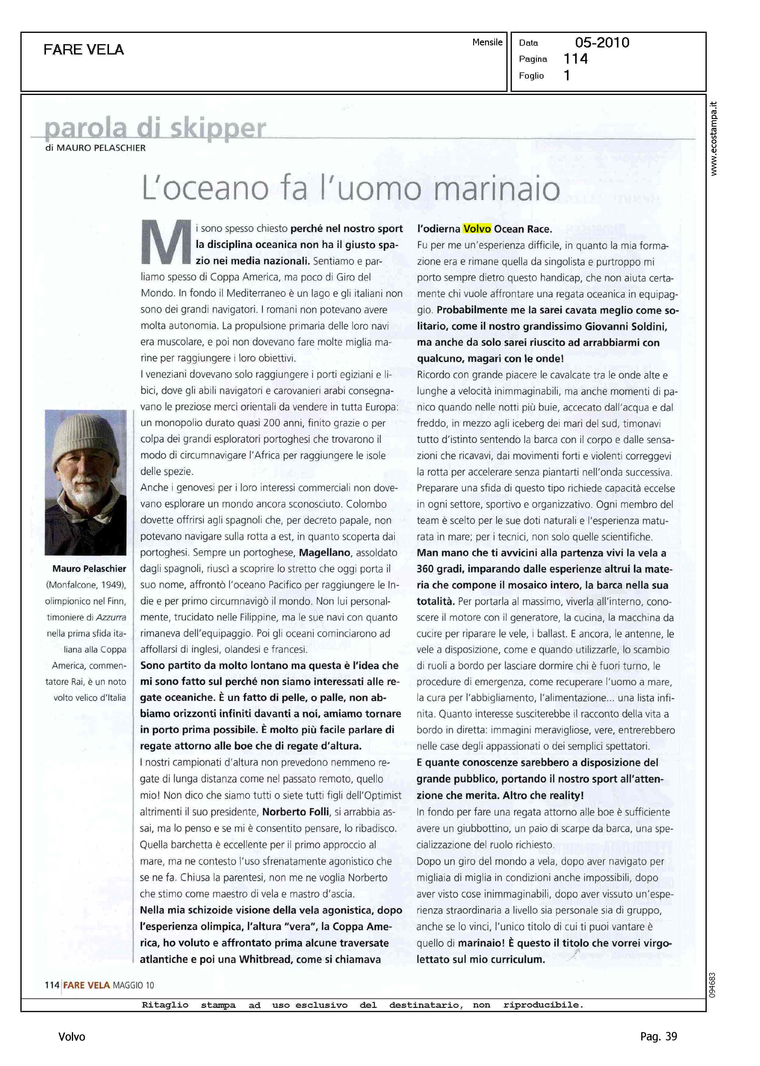 Author: PELASCHIER, MAUROLine: Corporate Model: Corporate Subject: Volvo Ocean Race Title: L'OCEANO FA L'UOMO MARINAIOHighlight: CITAZIONE VOR