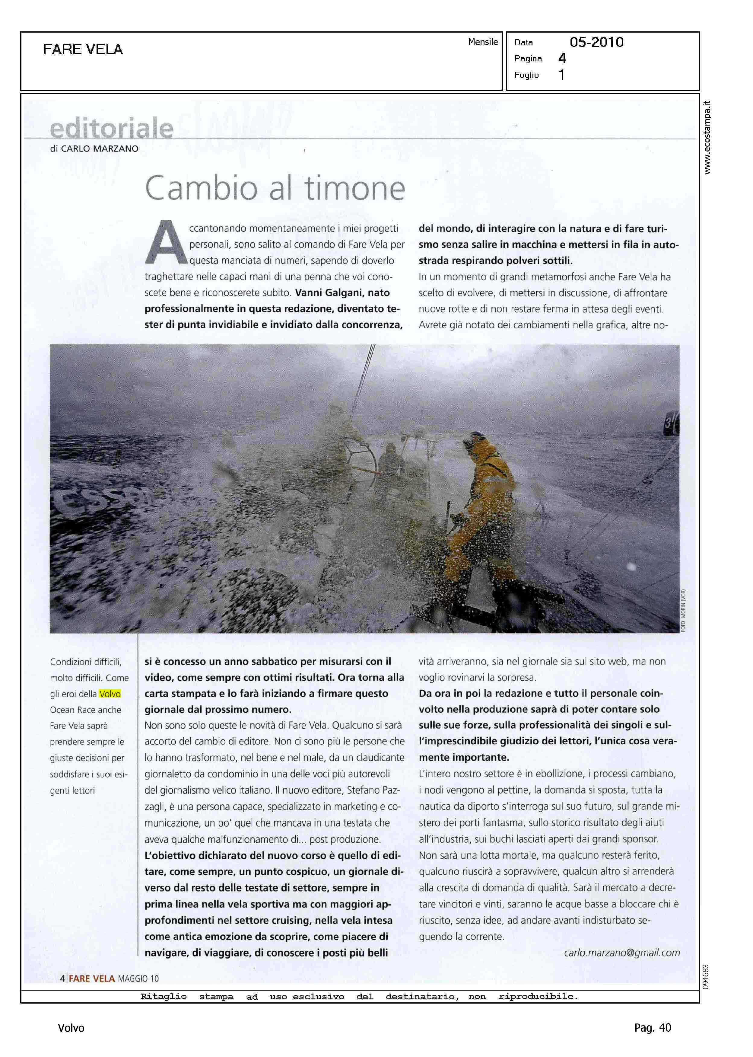Author: MARZANO, CARLOLine: Corporate Model: Corporate Subject: Volvo Ocean Race Title: CAMBIO AL TIMONE - I PERCHE' DI UN RECORD, (JULLIAND, CHRISTOPHE)Highlight: PARTECIPAZIONE REGATA 2011 - RECORD GIRO DEL MONDO