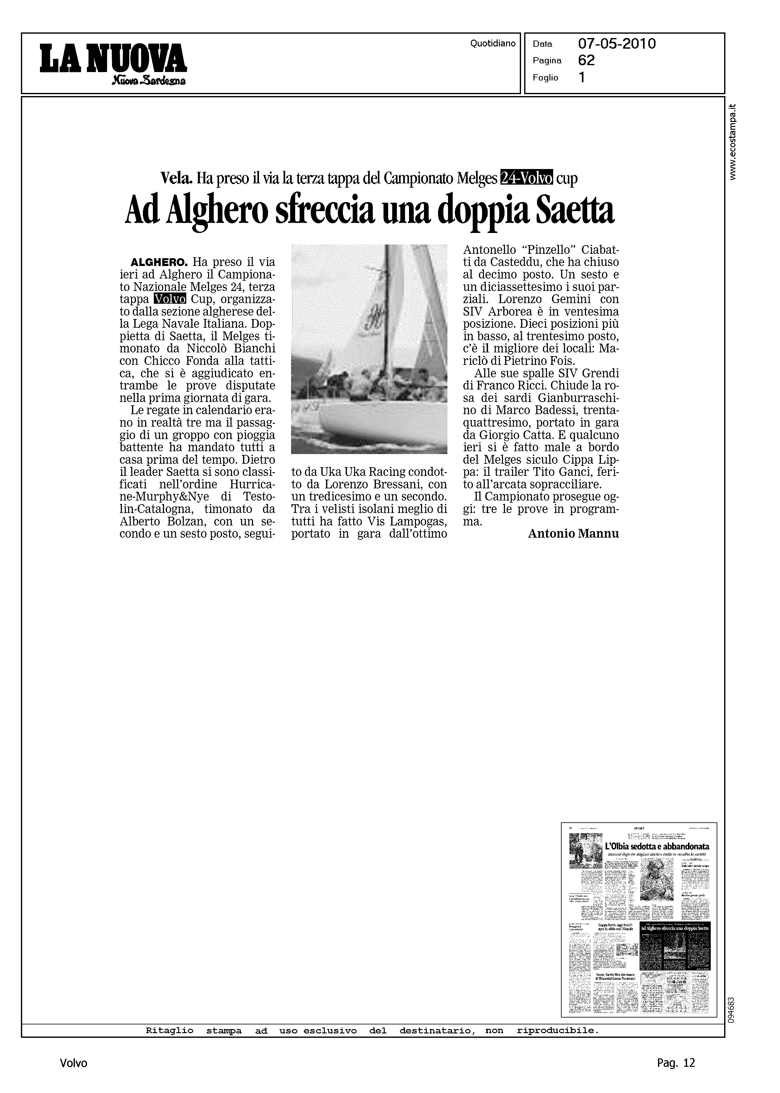 Author: MANNU, ANTONIOLine: Corporate Model: Corporate Subject: Volvo Cup Title: AD ALGHERO SFRECCIA UNA DOPPIA SAETTAHighlight: REGATA DI ALGHERO