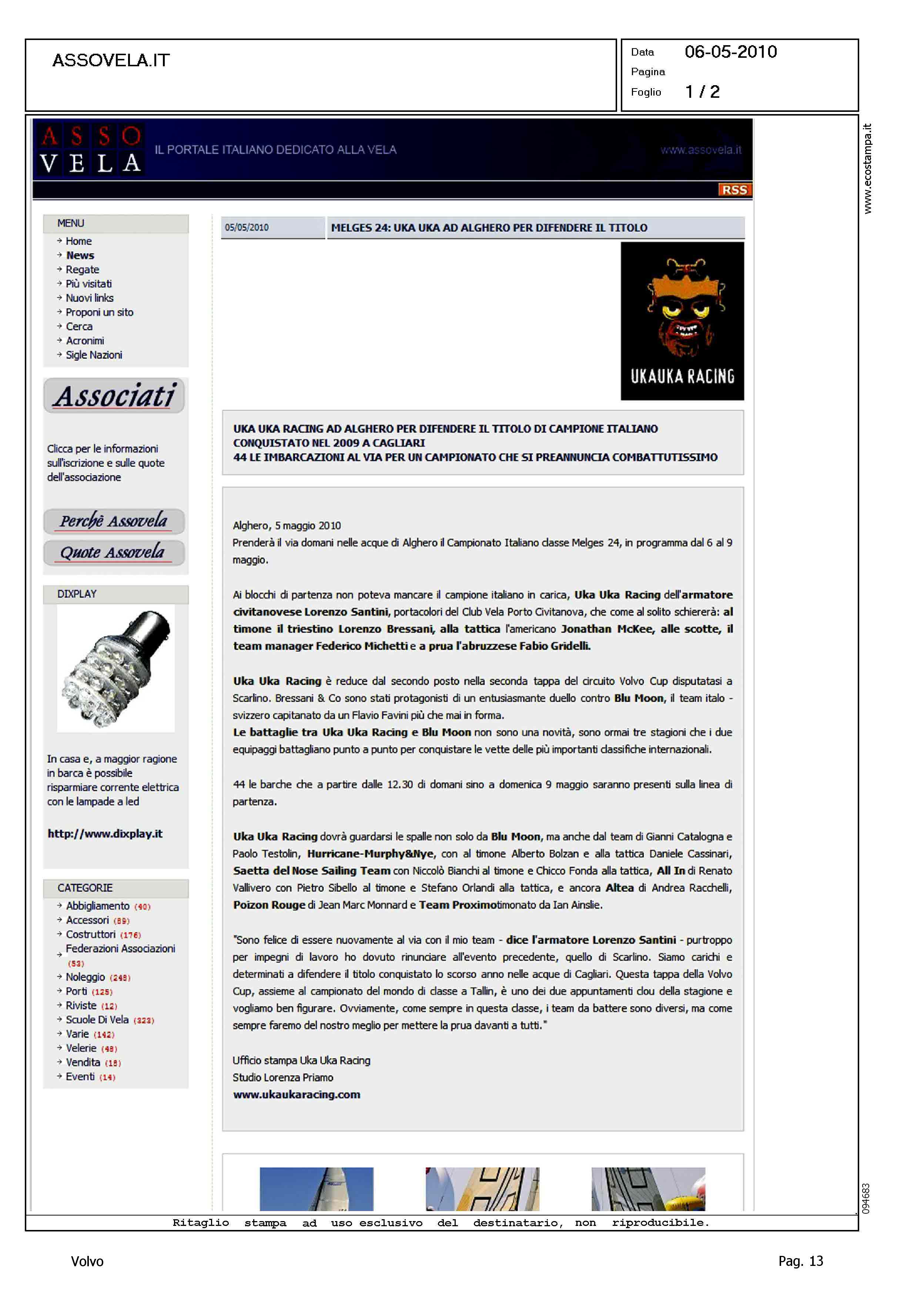 Author: Line: Corporate Model: Corporate Subject: Volvo Cup Title: MELGES 24: UKA UKA AD ALGHERO PER DIFENDERE IL TITOLOHighlight: REGATA DI ALGHERO