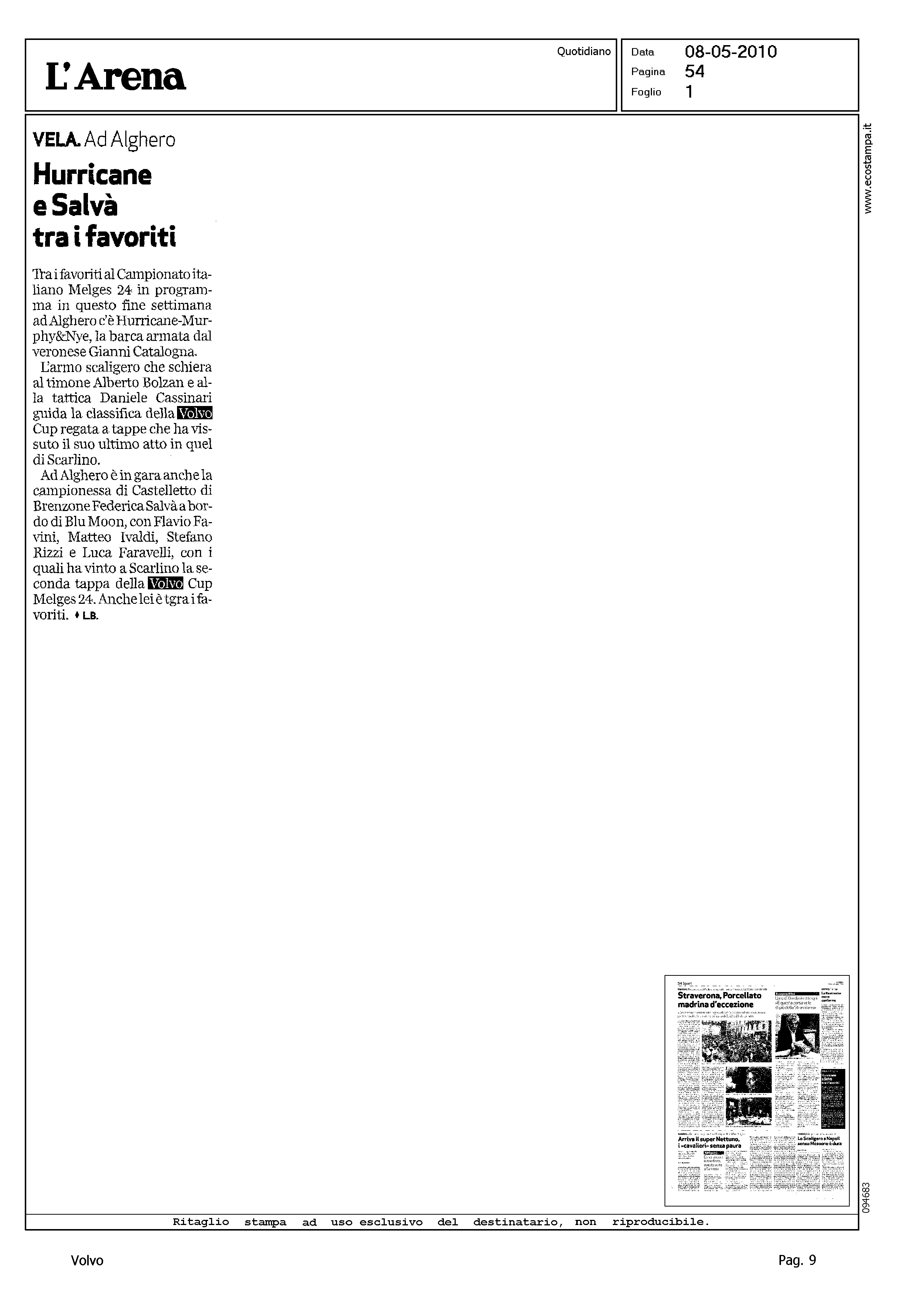 Author: Line: Corporate Model: Corporate Subject: Volvo Cup Title: VELA - AD ALGHERO - HURRICANE E SALVA' TRA I FAVORITIHighlight: REGATA DI ALGHERO