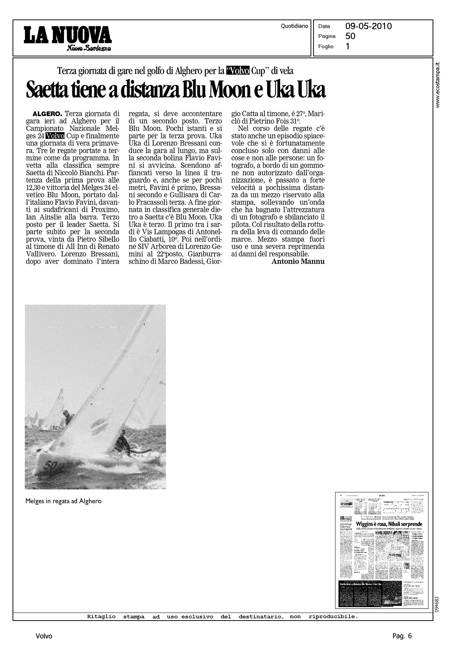 Author: MANNU, ANTONIOLine: Corporate Model: Corporate Subject: Volvo Cup Title: SAETTA TIENE A DISTANZA BLU MOON E UKA UKAHighlight: REGATA DI ALGHERO
