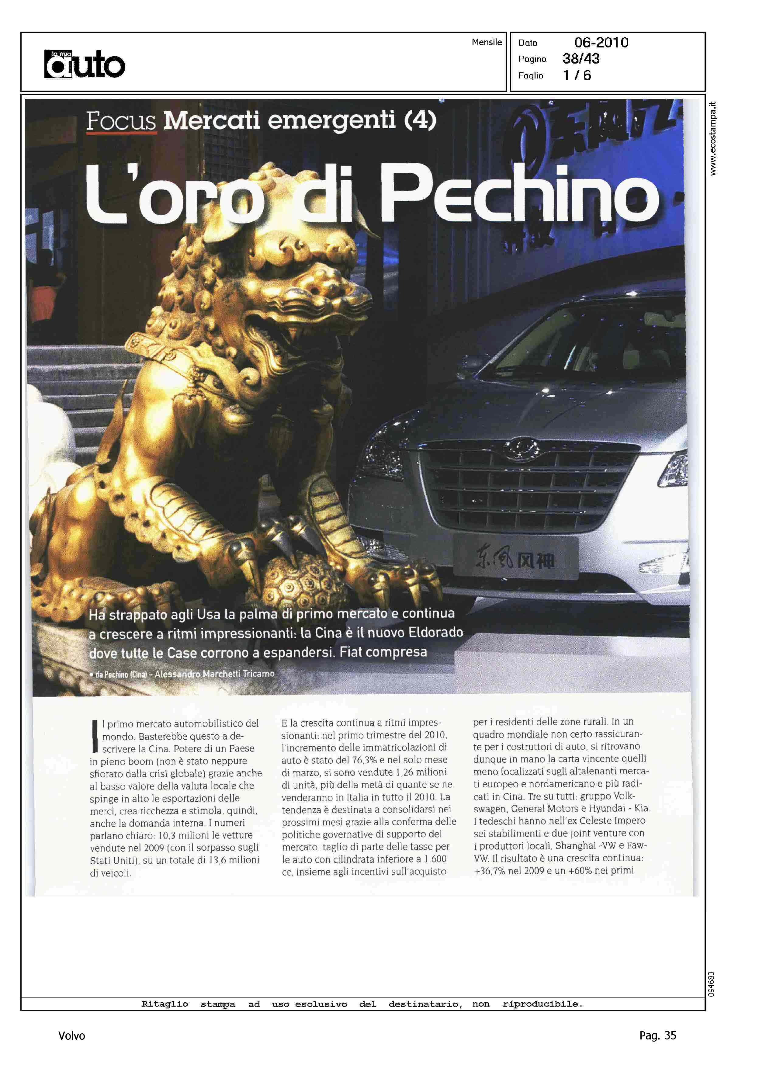 Author: TRICAMO, ALESSANDRO MARCHETTILine: Corporate Model: Corporate Subject: - Title: L'ORO DI PECHINOHighlight: CITAZIONE - SCENARIO INDUSTRIALE AUTO IN CINA