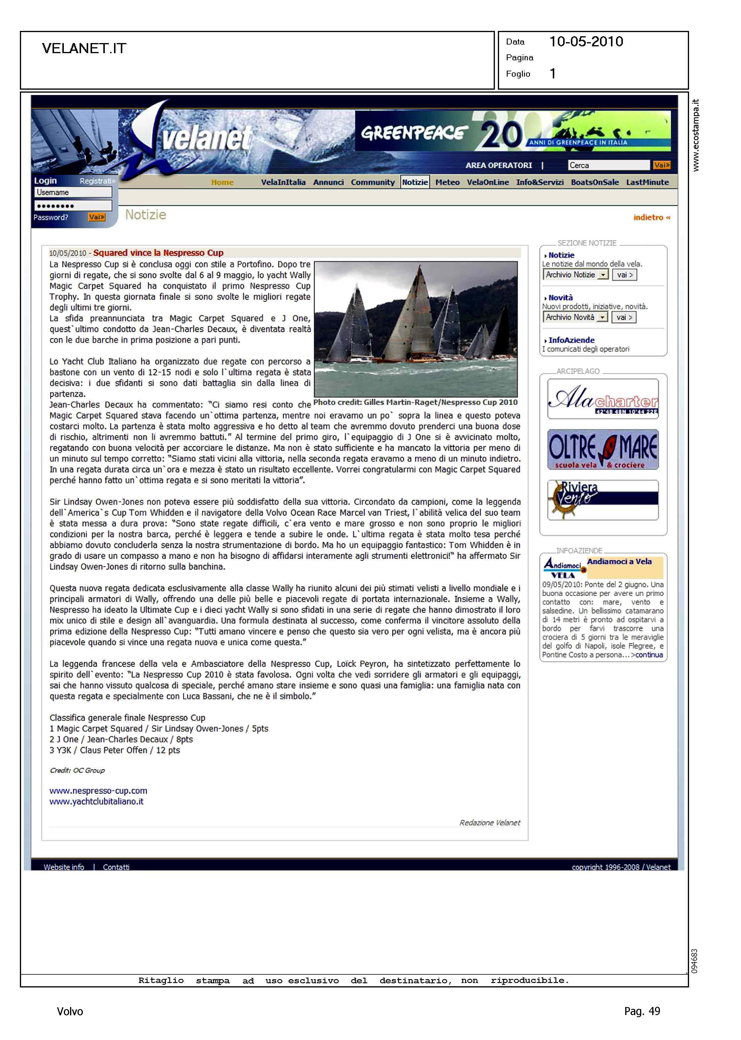 Author: Line: Corporate Model: Corporate Subject: Volvo Ocean Race Title: SQUARED VINCE LA NESPRESSO CUPHighlight: CITAZIONE - VAN TRIEST