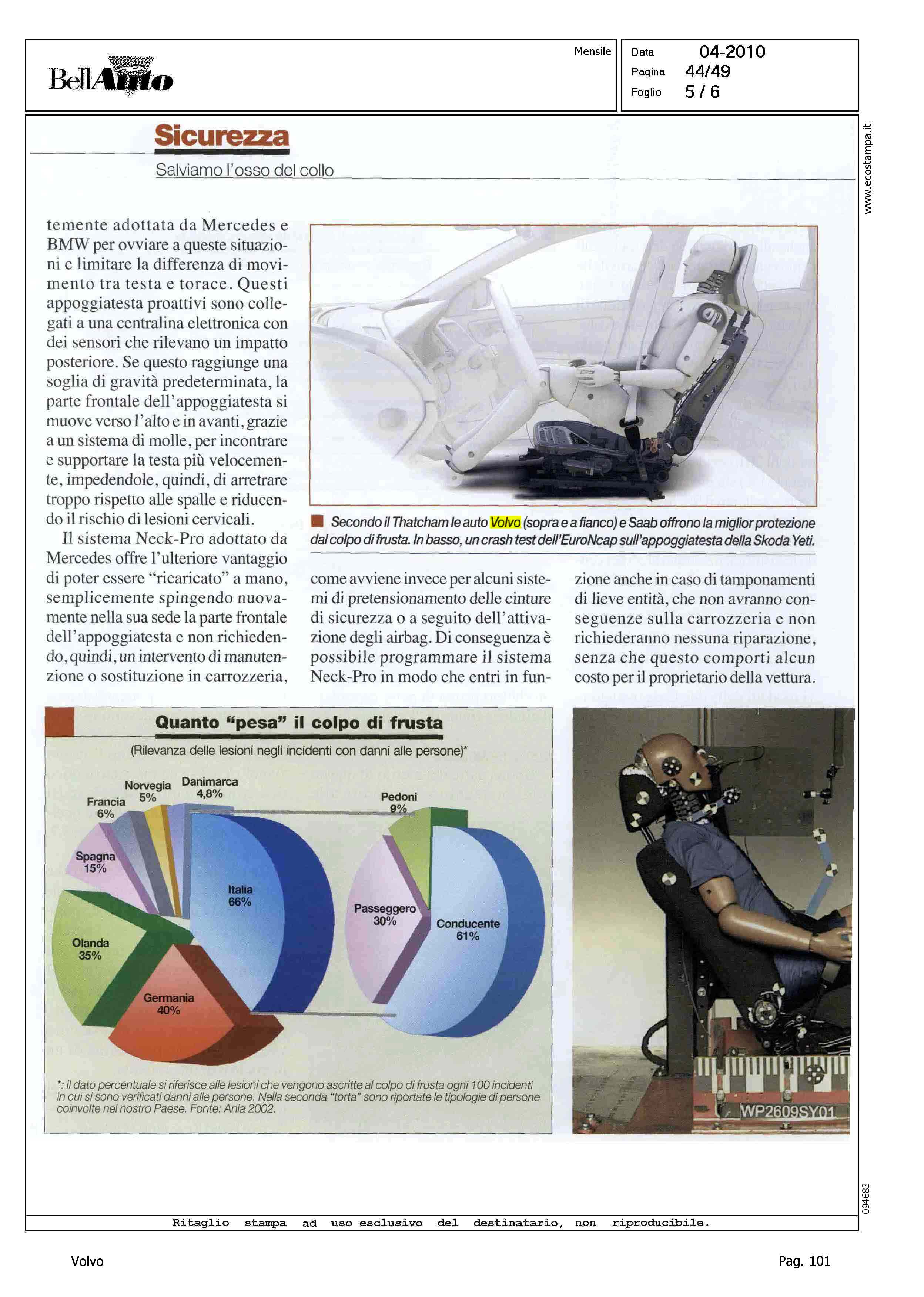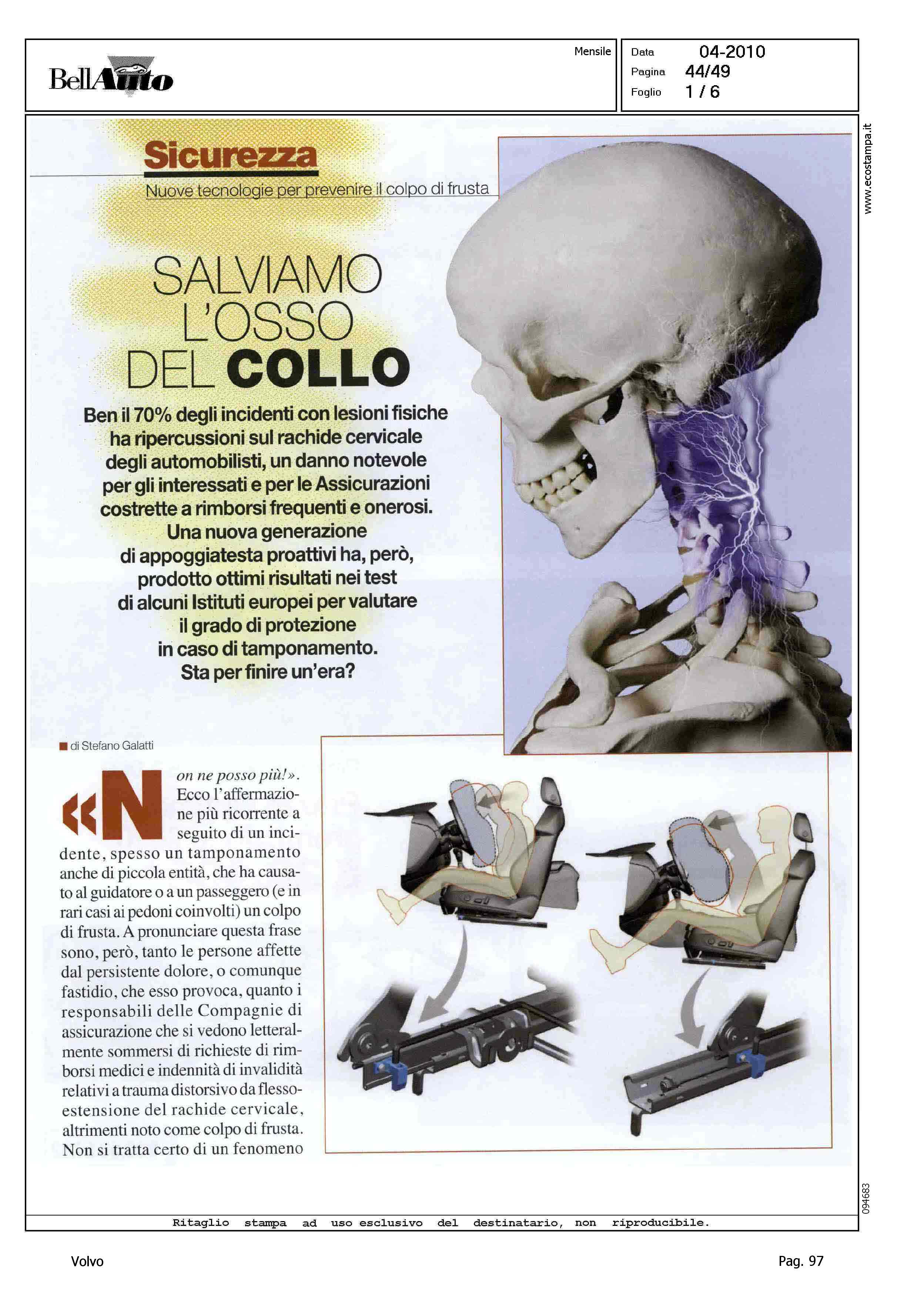 Author: GALATTI, STEFANOLine: Corporate Model: Corporate Subject: - Title: SALVIAMO L'OSSO DEL COLLOHighlight: PROTEZIONE COLPO DI FRUSTA - CRASH TEST - SICUREZZA