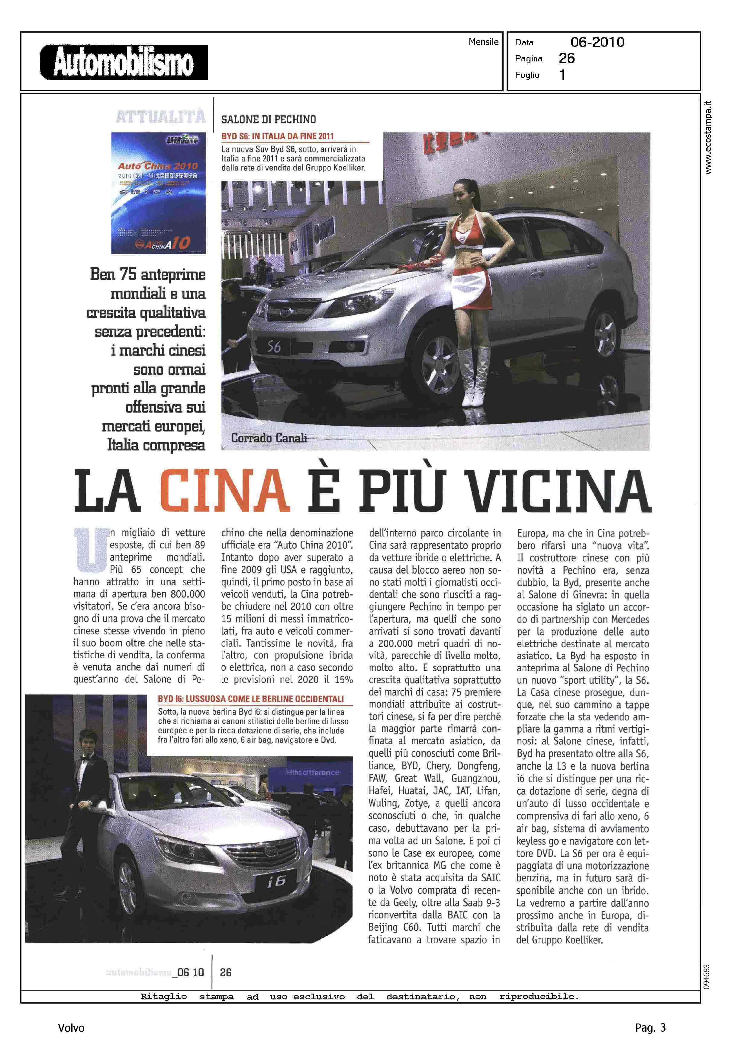 Author: CANALI, CORRADOLine: Corporate Model: Corporate Subject: - Title: LA CINA E' PIU' VICINAHighlight: CITAZIONE IN ARTICOLO SU SCENARIO AUTO MONDO