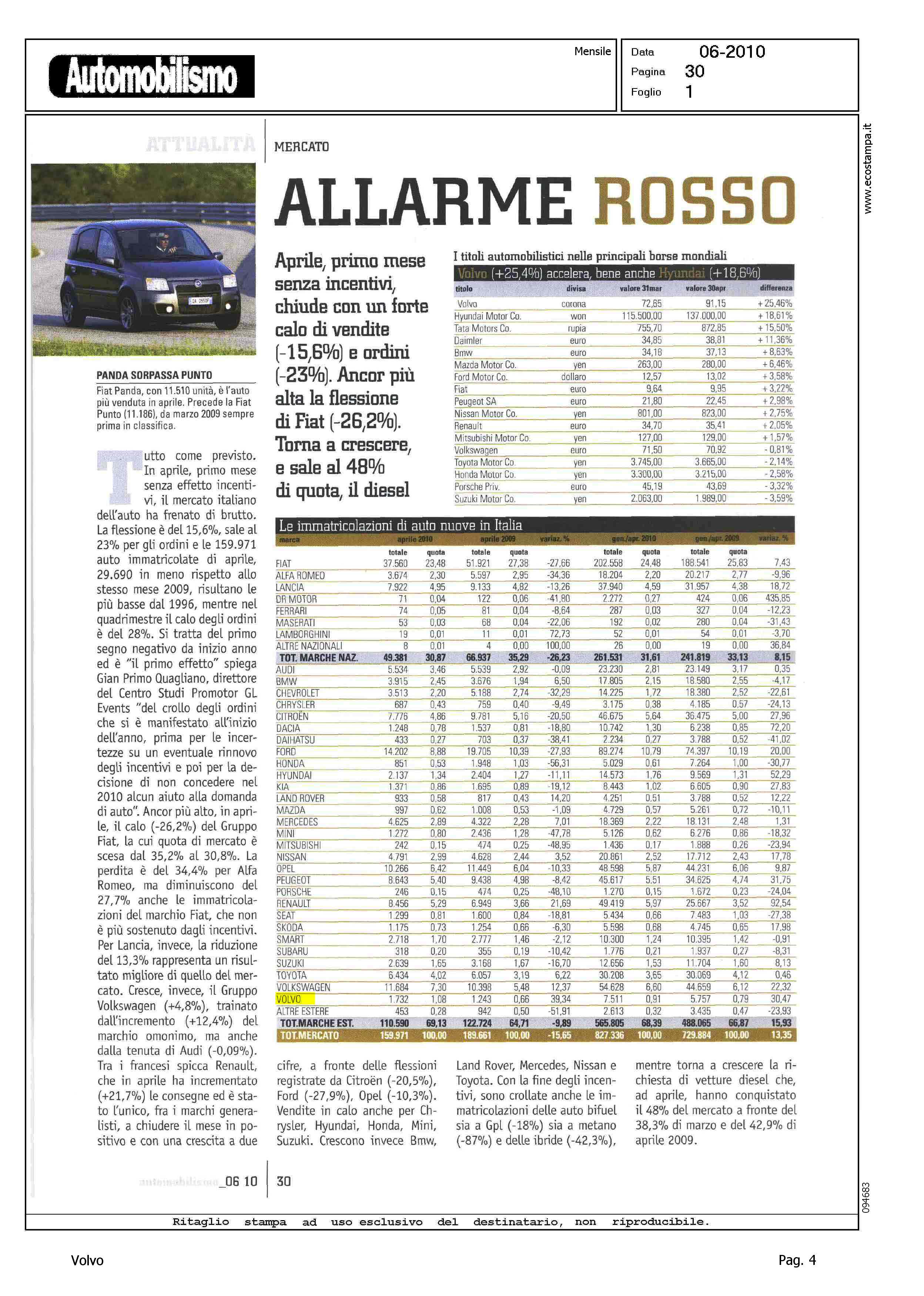 Author: Line: Corporate Model: Corporate Subject: - Title: MERCATO - ALLARME ROSSOHighlight: TABELLA MERCATO AUTO APRILE