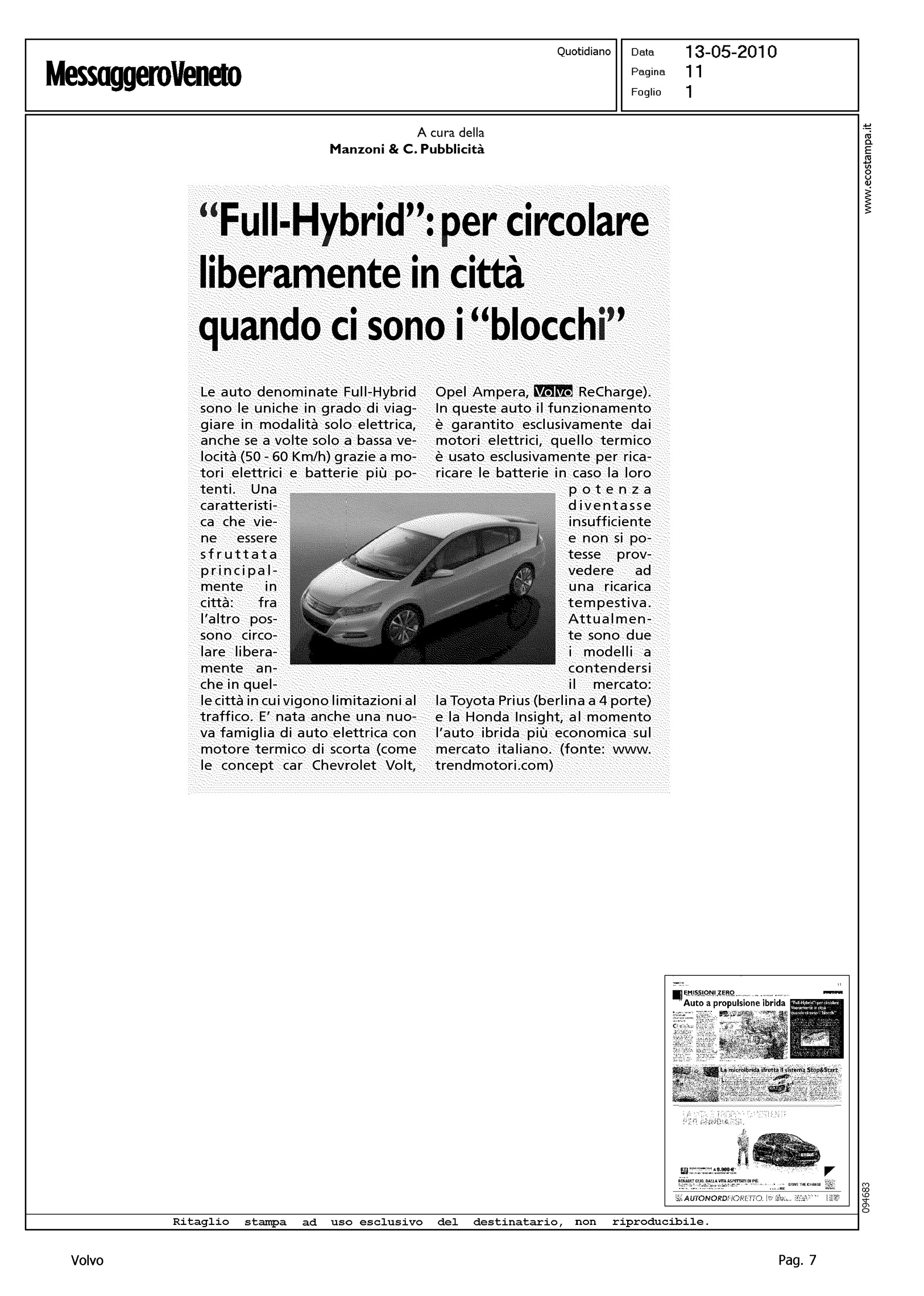 Author: Line: Corporate Model: Volvo C30 Subject: C30 ReCharge Title: "FULL HYBRID": PER CIRCOLARE LIBERAMENTE IN CITTA' QUANDO CI SONO I "BLOCCHI"Highlight: CITAZIONE - MOTORE ELETTRICO