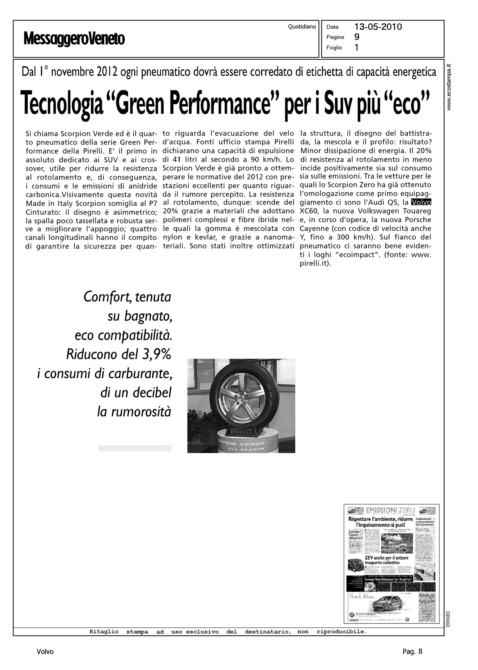 Author: Line: XC60 Model: Subject: - Title: TECNOLOGIA "GREEN PERFORMANCE" PER I SUV PIU' "ECO"Highlight: CITAZIONE - XC60 - SCORPION VERDE IN PRIMO EQUIPAGGIAMENTO