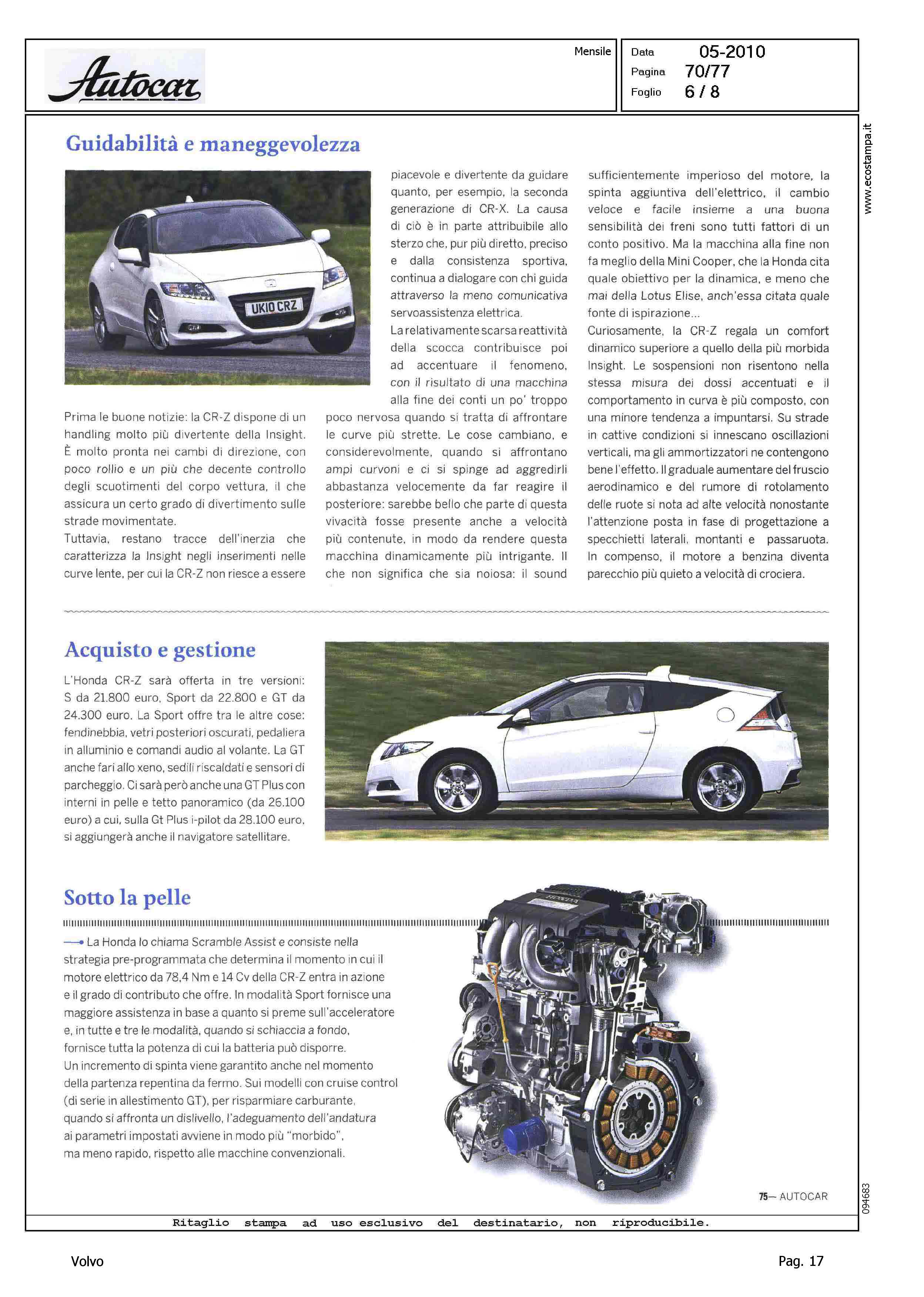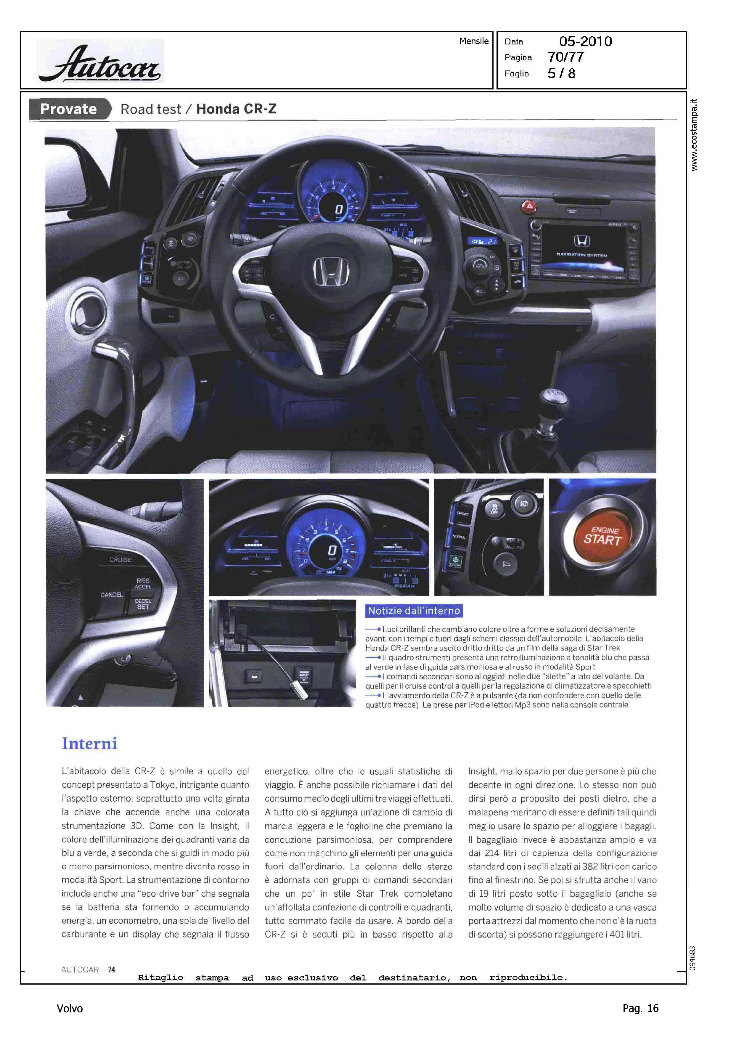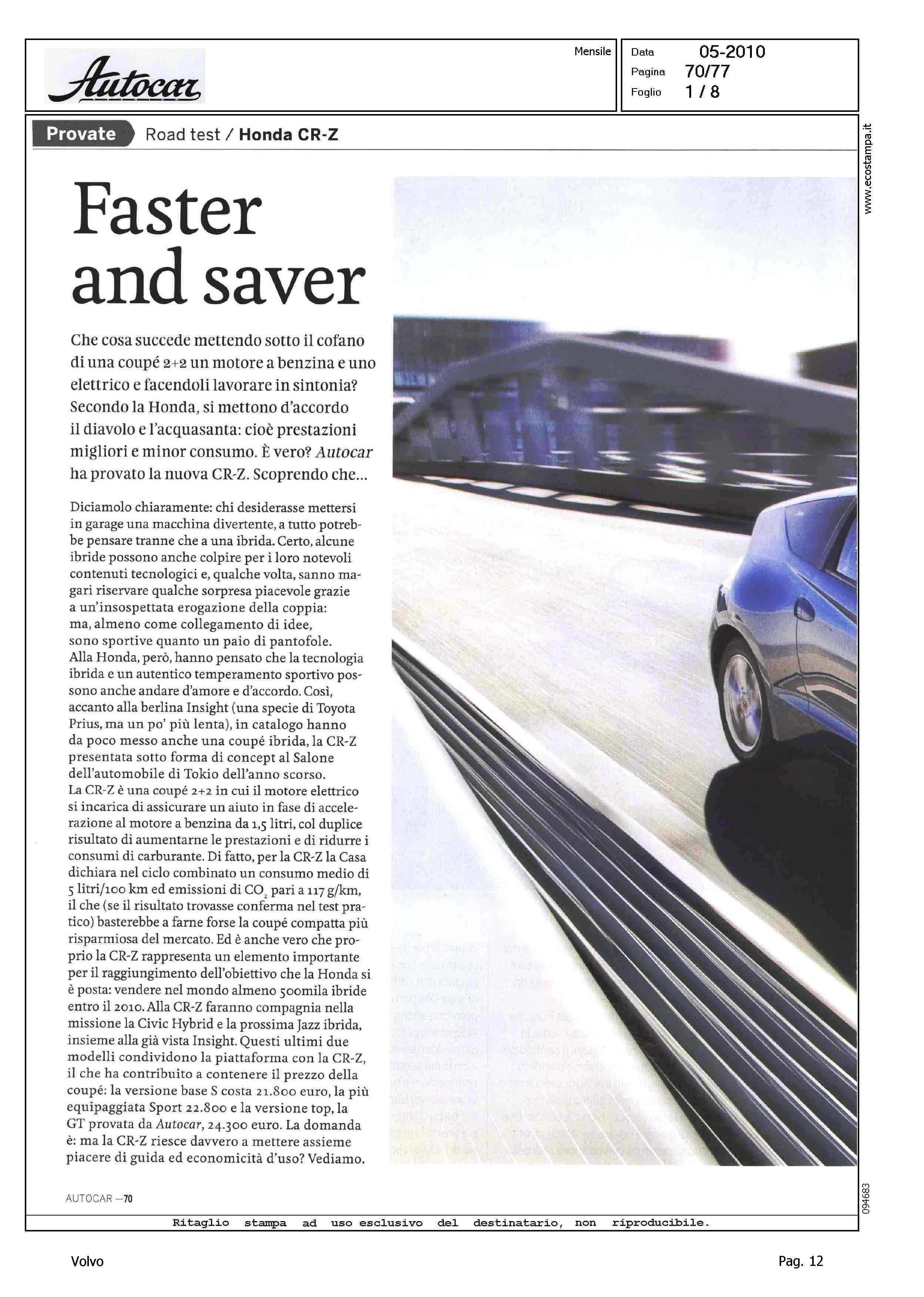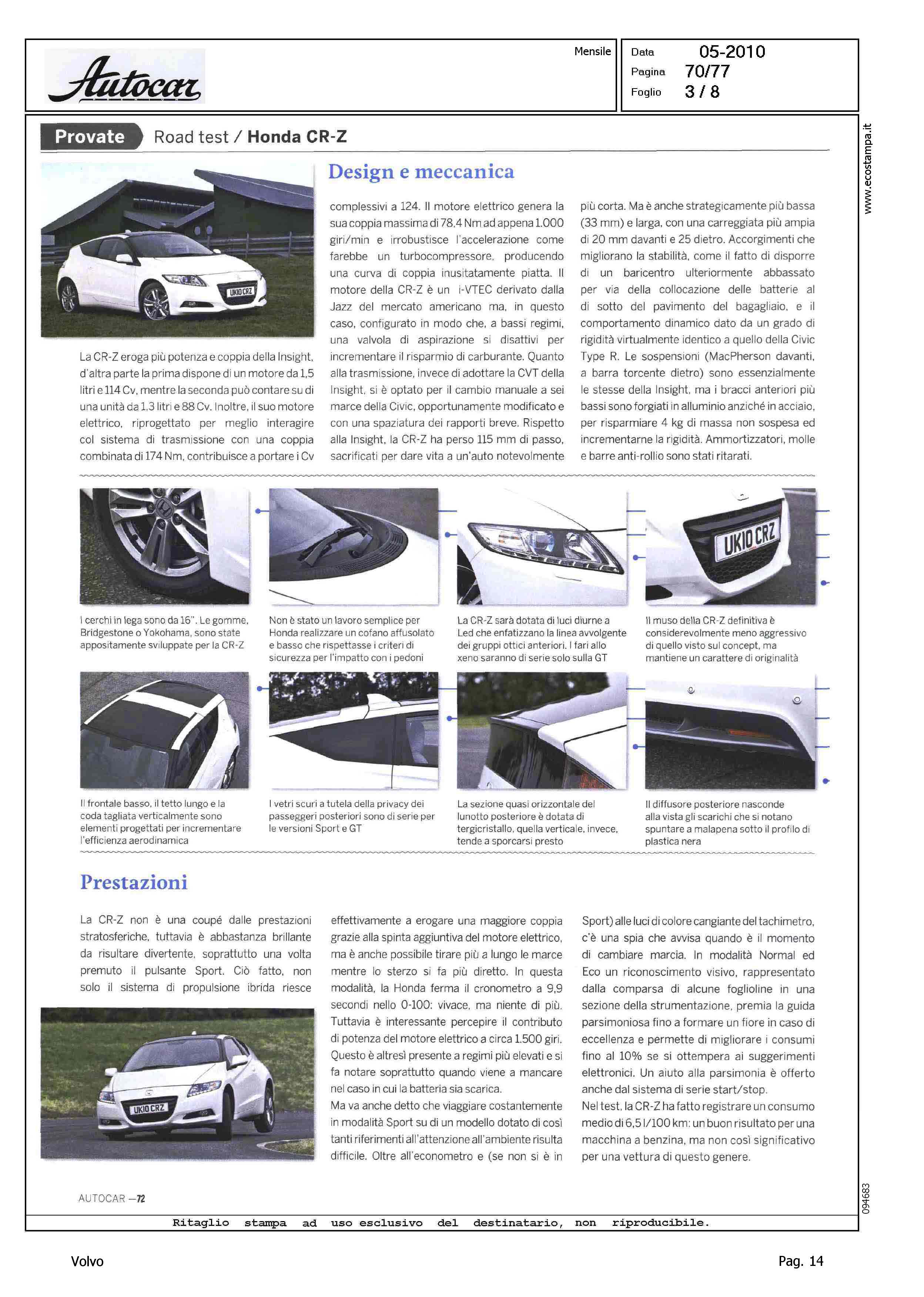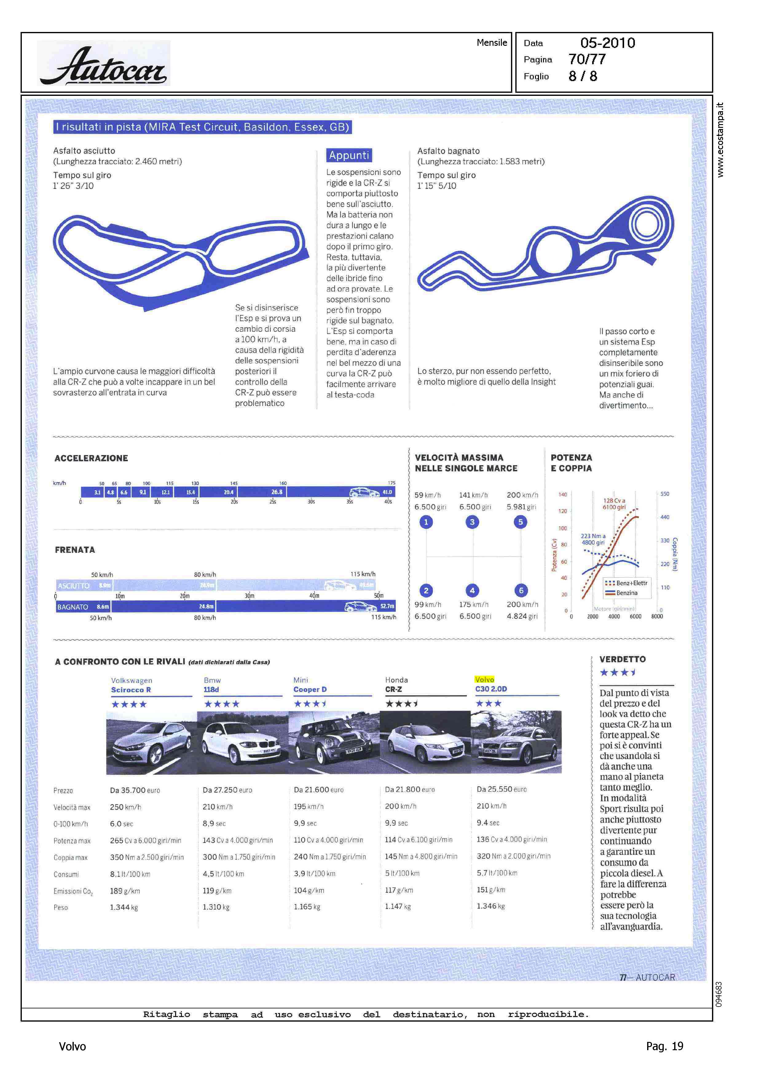 Highlight: TEST HONDA CR-Z, VOLVO C30 2.0D COMPETITOR - VW SCIROCCO R - BMW 118D - MINI COOPER D - SCHEDE CON DATI TECNICI PRINCIPALI E VALUTAZIONE CON STELLE - VW, 4 - BMW, 4 - MINI, 3.5 - HONDA, 3.5 - VOLVO, 3