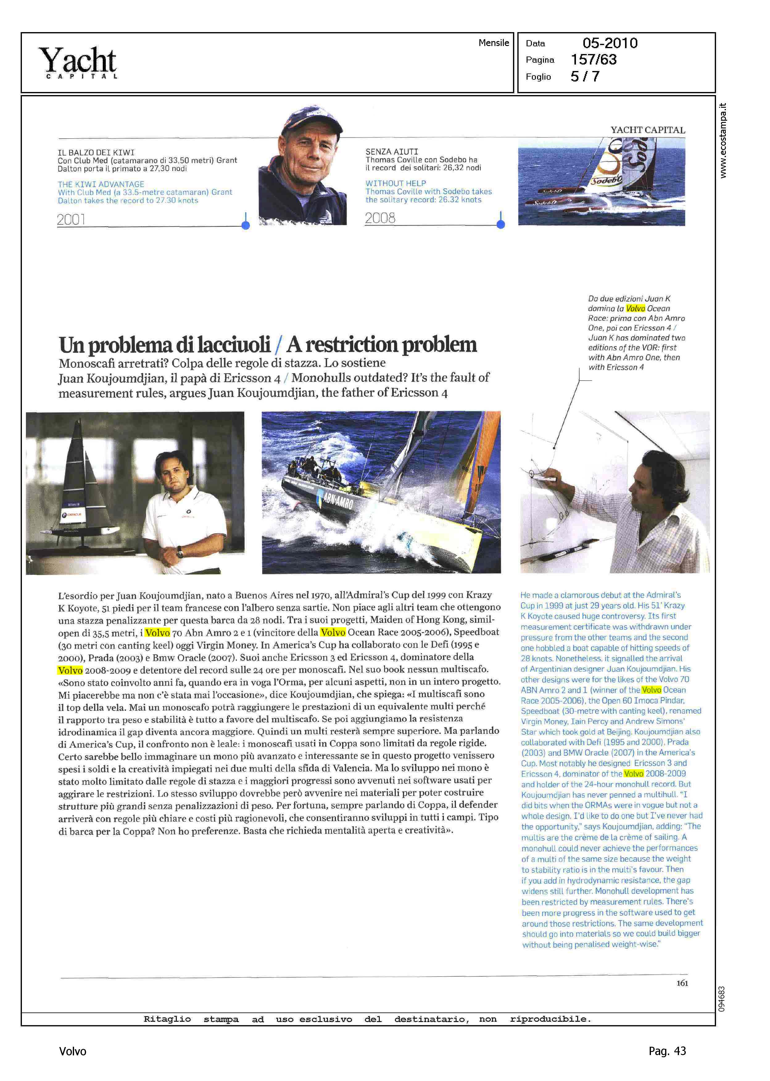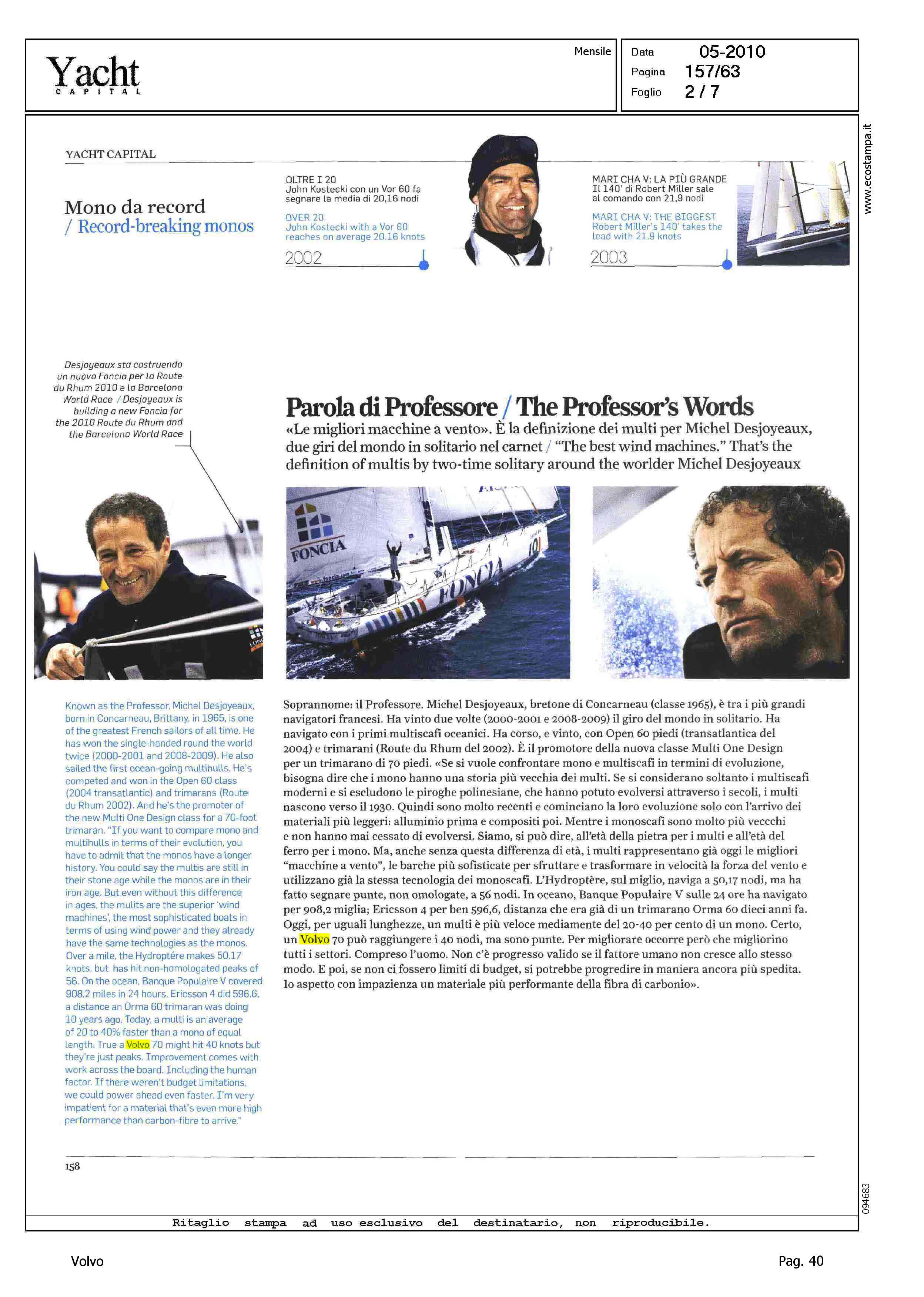 Author: MARTINELLI, EMILIOLine: Corporate Model: Corporate Subject: Volvo Ocean Race Title: PRIMO PIANO - MONO VS MULTI - DUELLO A COLPI DI SCAFIHighlight: TECNICA - MULTISCAFI VS MONOSCAFI - PROGETTISTI A CONFRONTO