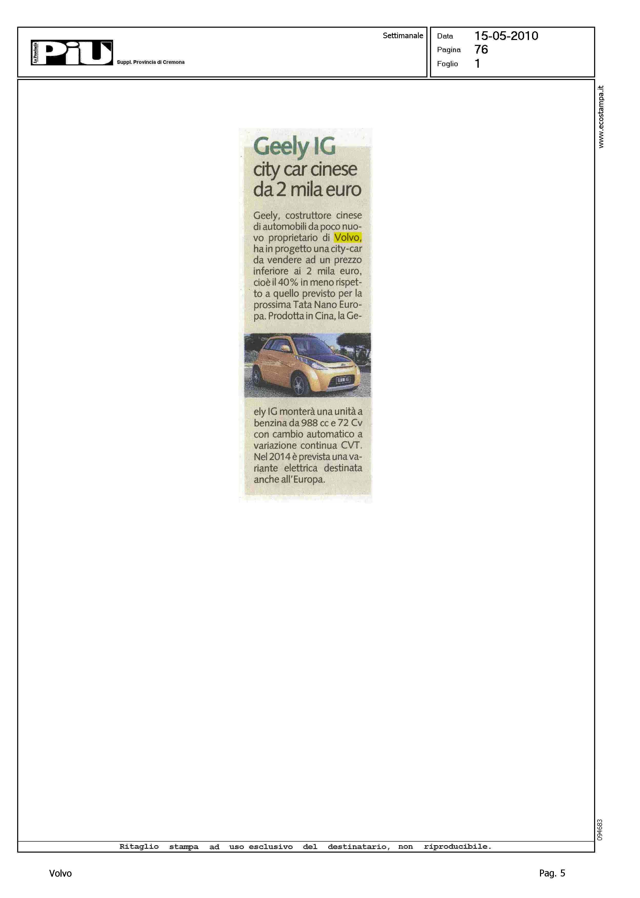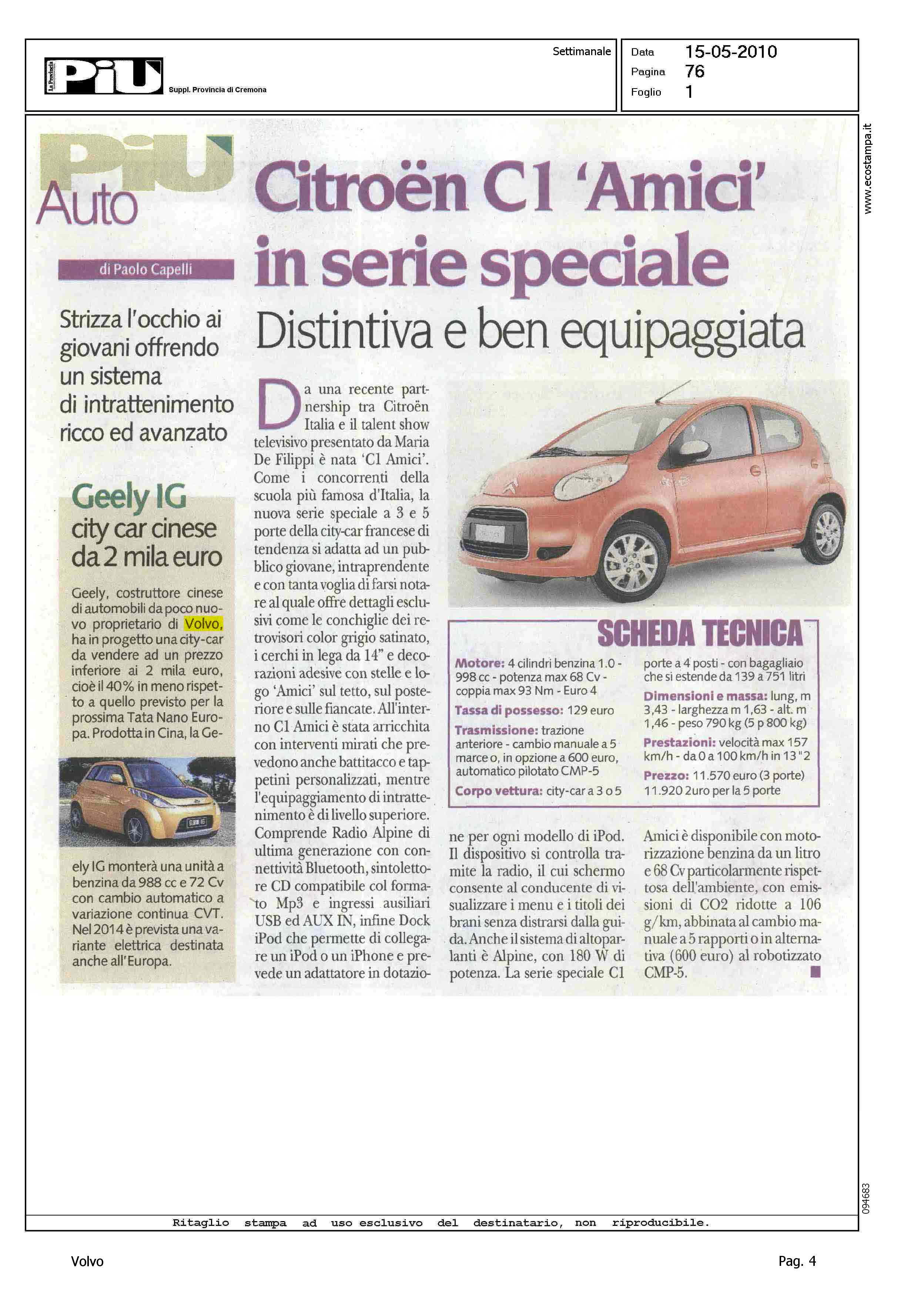 Author: CAPELLI, PAOLOLine: Corporate Model: Corporate Subject: - Title: GEELY IG - CITY CAR CINESE DA 2MILA EUROHighlight: GEELY IG - SCHEDA PRODOTTO - PREZZO - CARATTERISTICHE TECNICHE