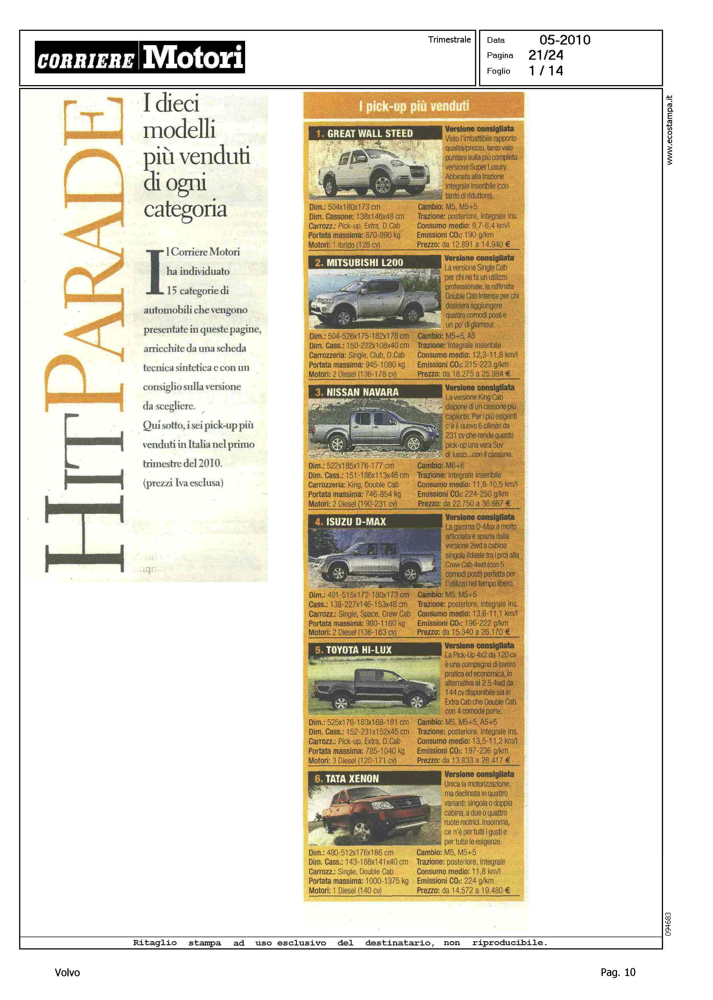 Title: HIT PARADE - I DIECI MODELLI PIU' VENDUTI DI OGNI CATEGORIA