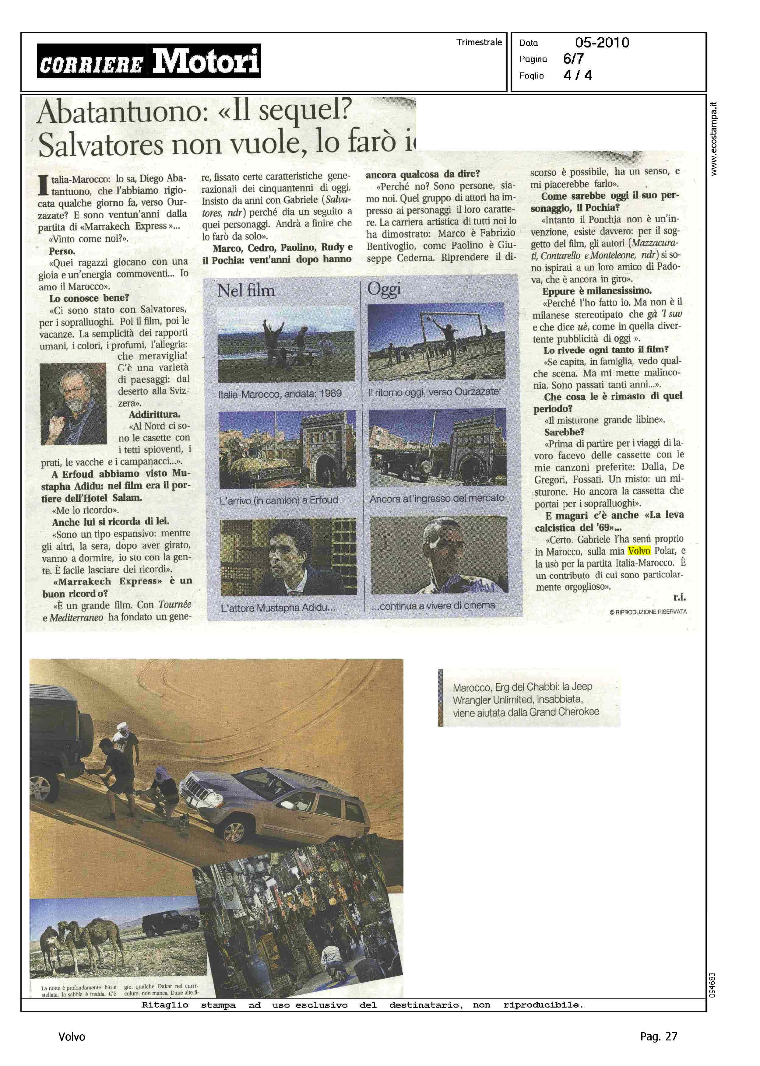Author: IASONI, ROBERTOLine: Corporate Model: Corporate Subject: - Title: ABATANTUONO: "IL SEQUEL? SALVATORES NON VUOLE...Highlight: CITAZIONE POLAR IN INTERVISTA DIEGO ABATANTUONO