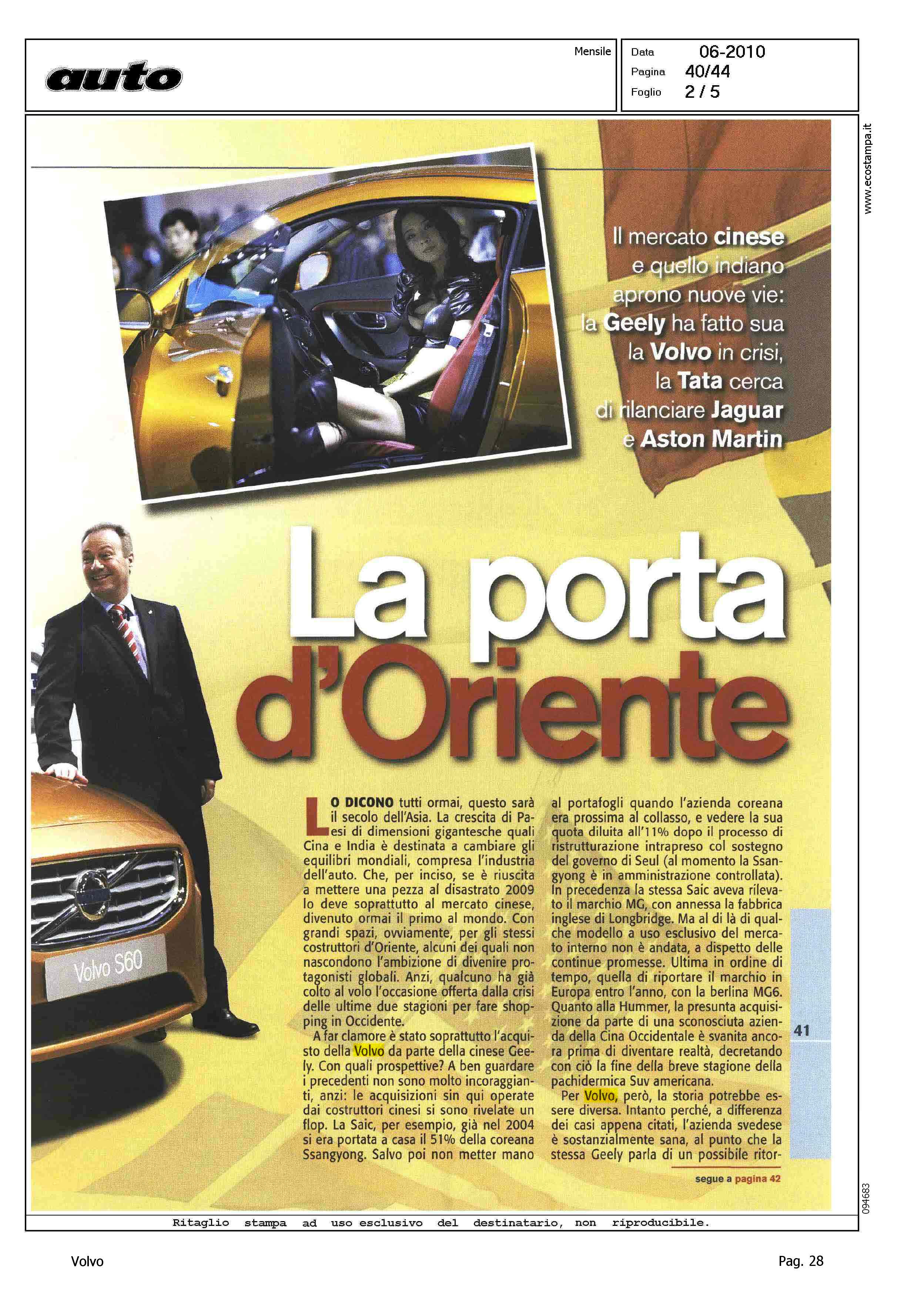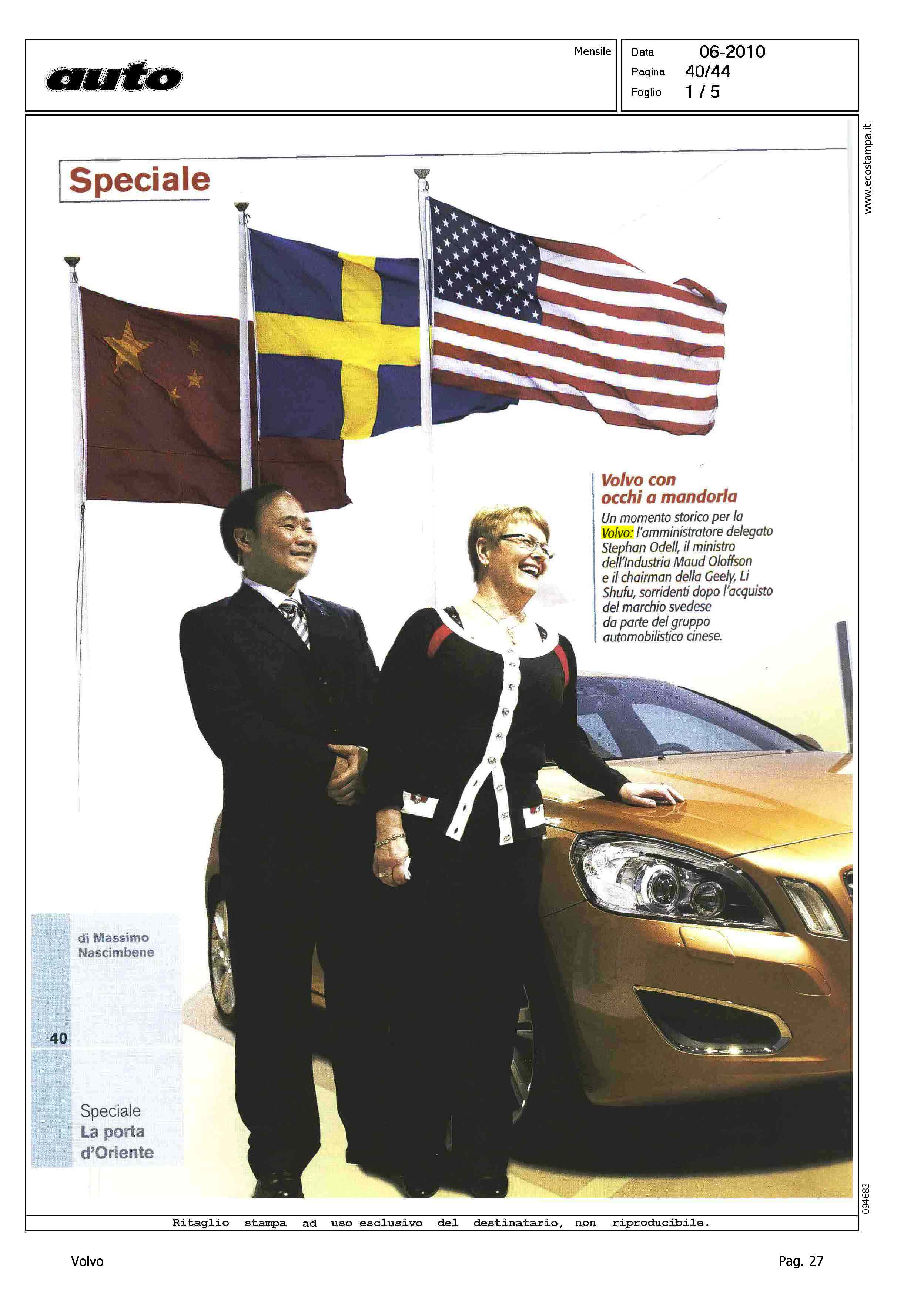 Author: NASCIMBENE, MASSIMOLine: Corporate Model: Corporate Subject: - Title: LA PORTA D'ORIENTEHighlight: VENDITA VOLVO ALLA GEELY - SCENARI DI INDUSTRIA AUTO IN EUROPA