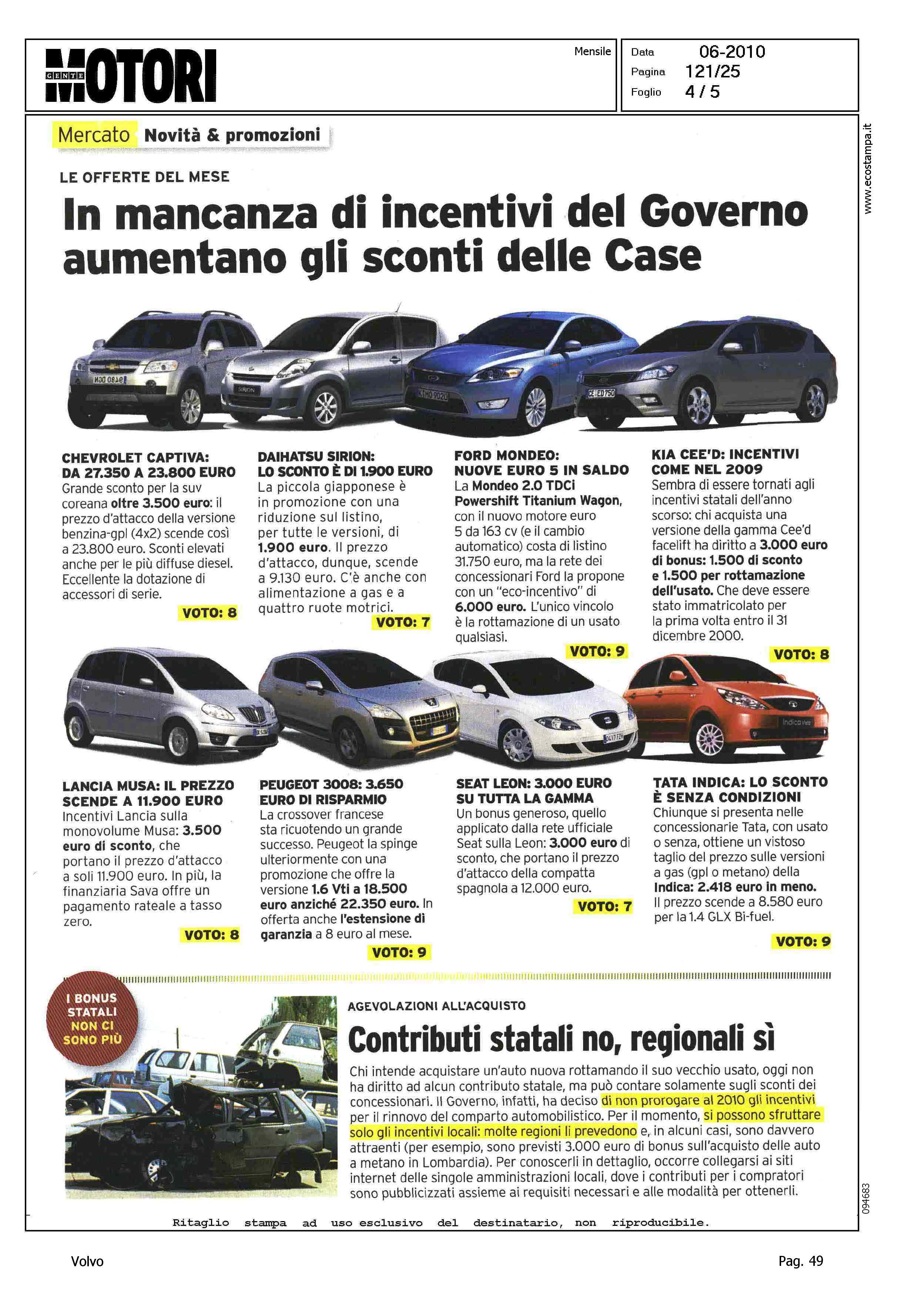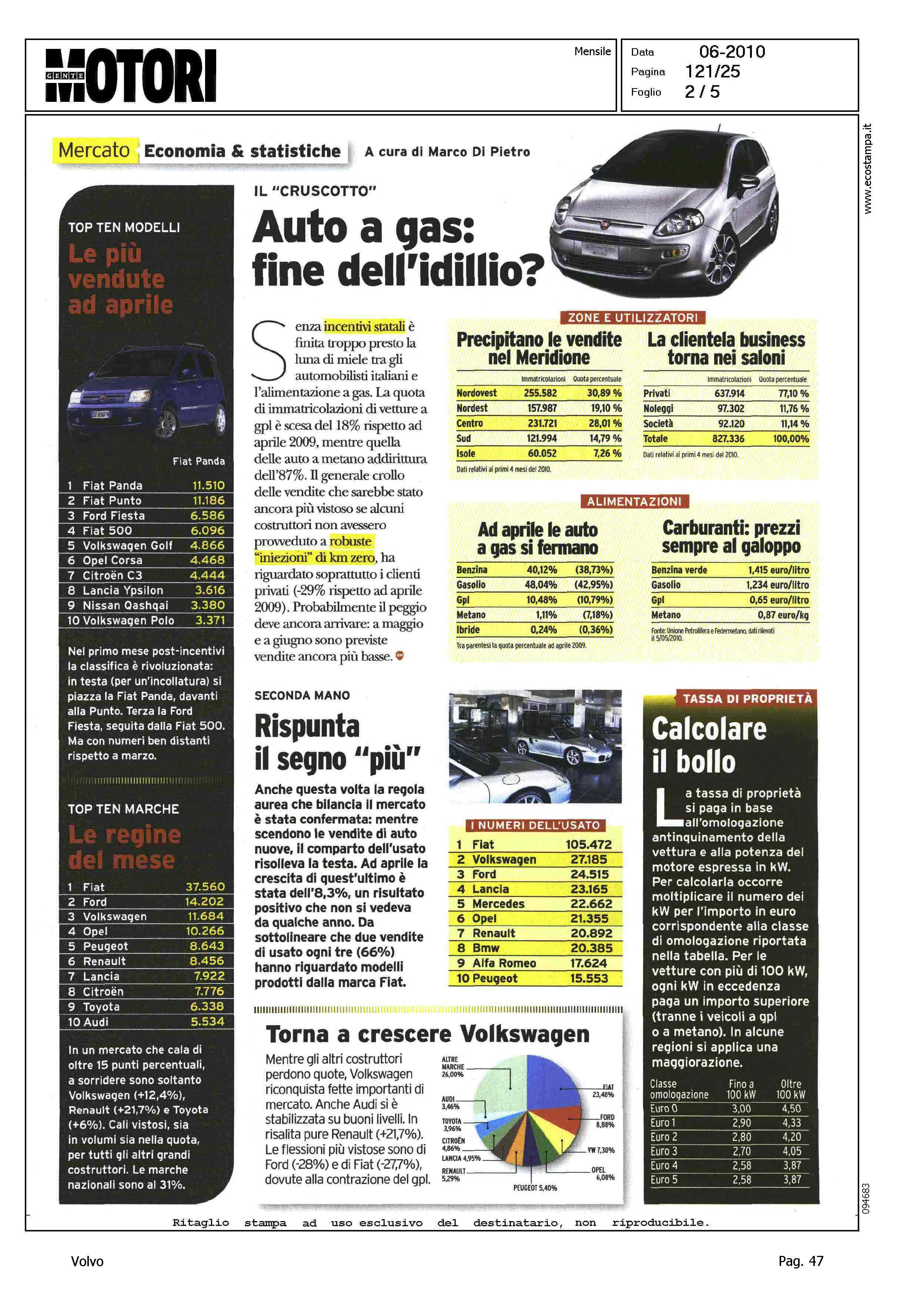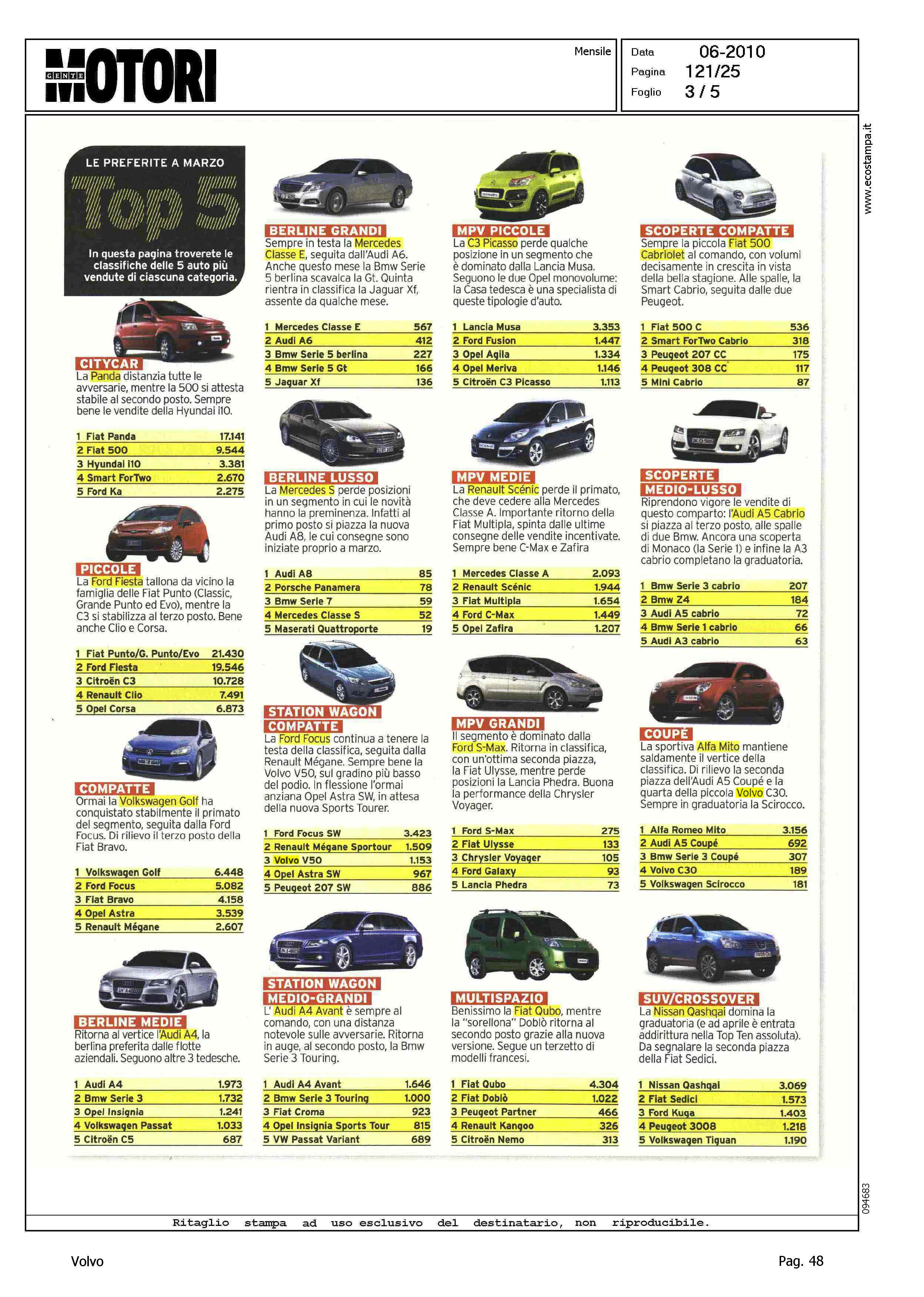 Author: DI PIETRO, MARCOLine: Corporate Model: Corporate Subject: - Title: LE PREFERITE A MARZO - TOP 5 - I DIESEL VOLVO DIVENTANO EURO 5Highlight: TABELLE APRILE - VOLVO - DIESEL EURO 5
