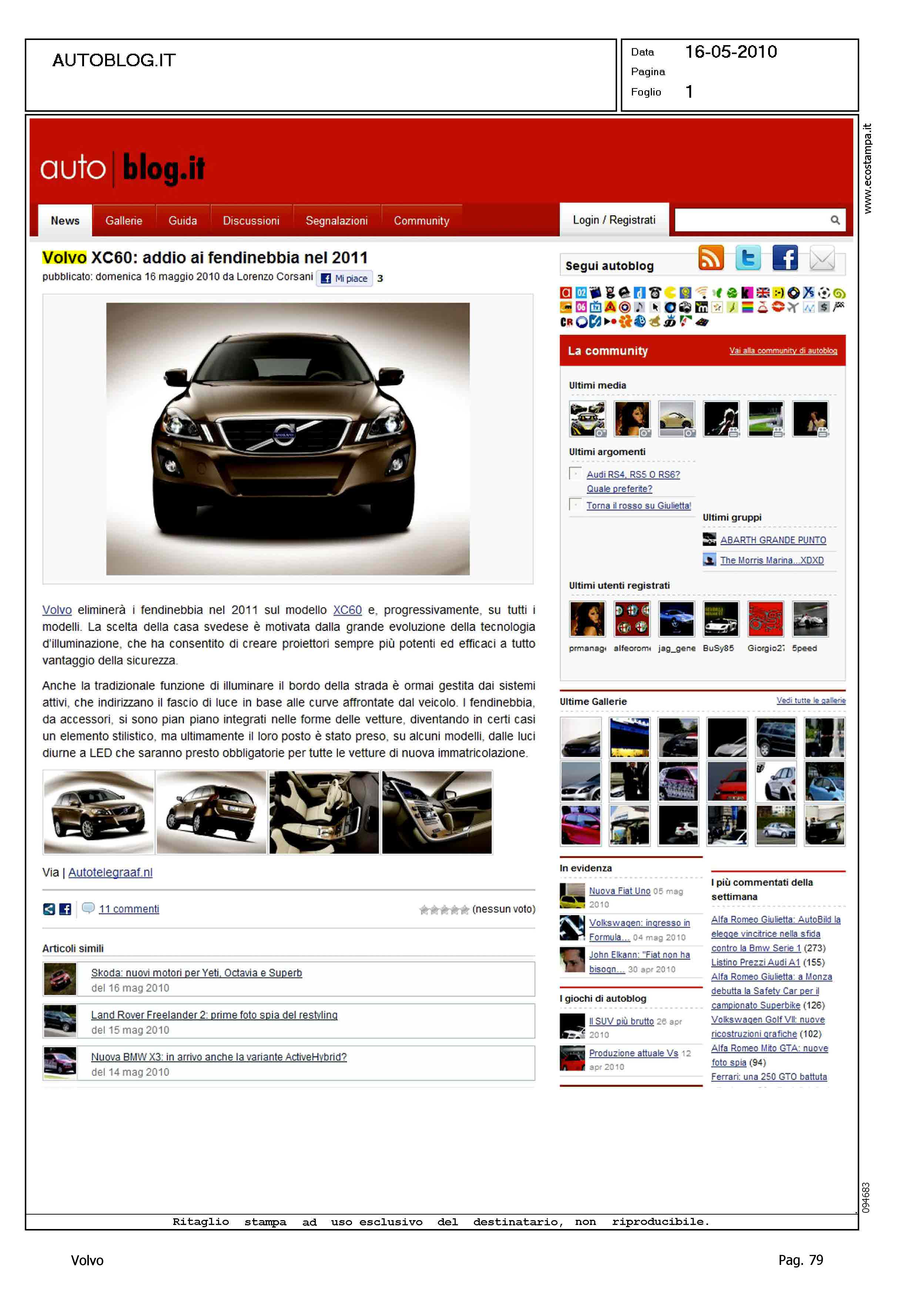 Author: Line: XC60 Model: - Subject: - Title: VOLVO XC60: ADDIO AI FENDINEBBIA NEL 2011Highlight: SICUREZZA - DESIGN