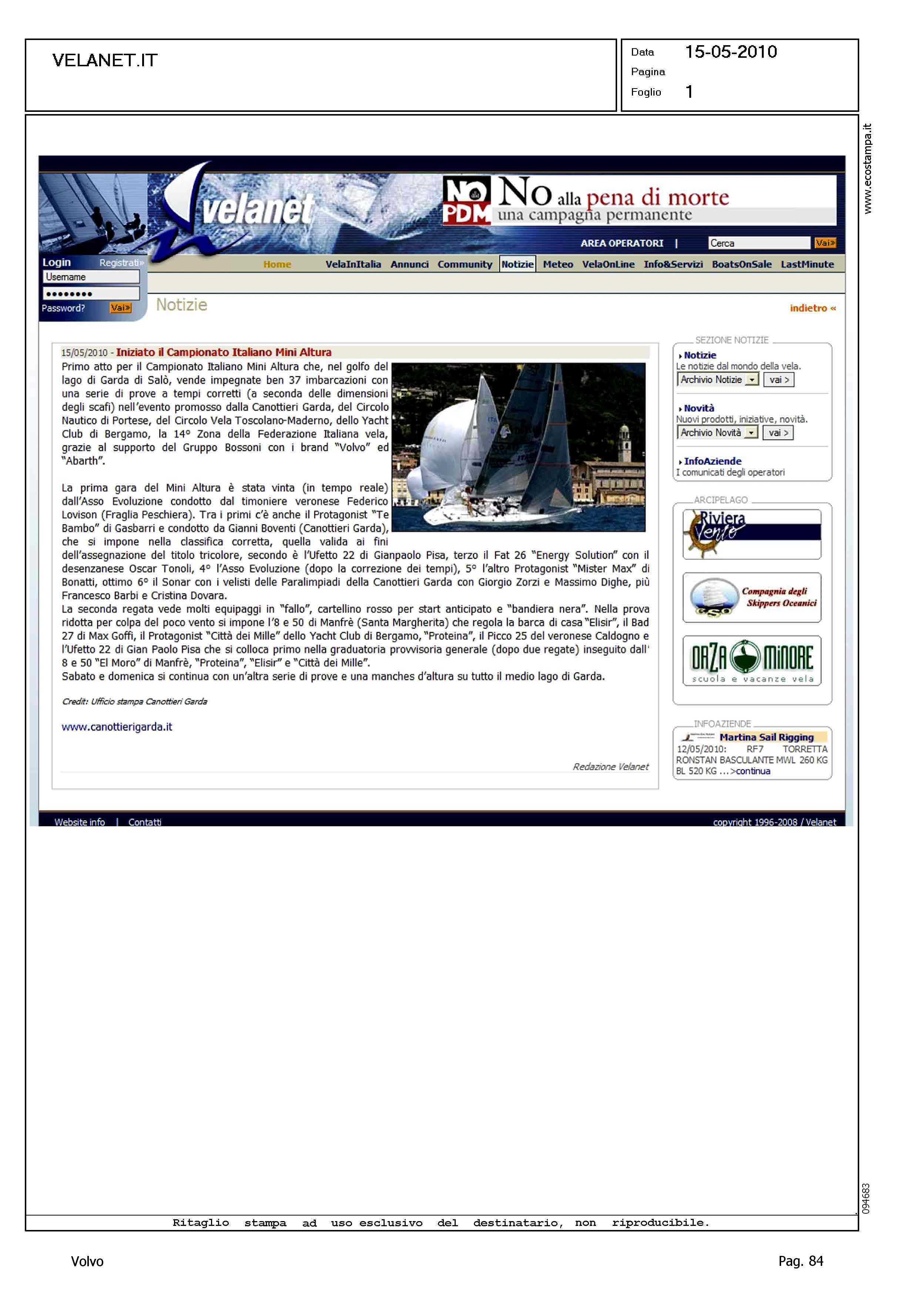 Author: Line: Corporate Model: Corporate Subject: Volvo Cup Title: INIZIATO IL CAMPIONATO ITALIANO MINIALTURAHighlight: REGATA DI SALO'