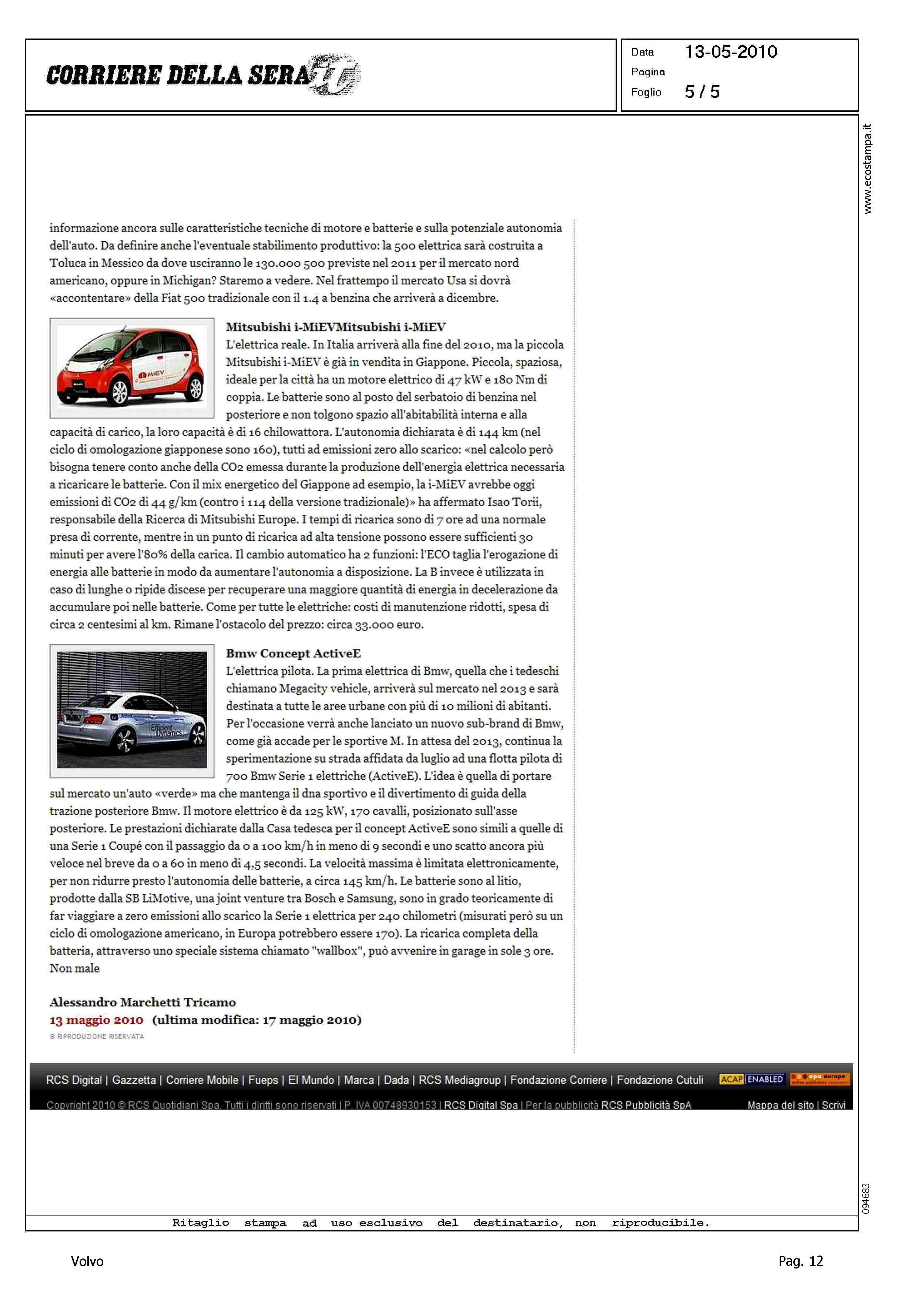 Author: TRICAMO, ALESSANDRO MARCHETTILine: Corporate Model: Volvo C30 Subject: - Title: VOLVO C30 EVHighlight: GEELY - KNOW HOW CINA BATTERIE LITIO - SCHEDA TECNICA - POTENZA - PRESTAZIONI - SICUREZZA