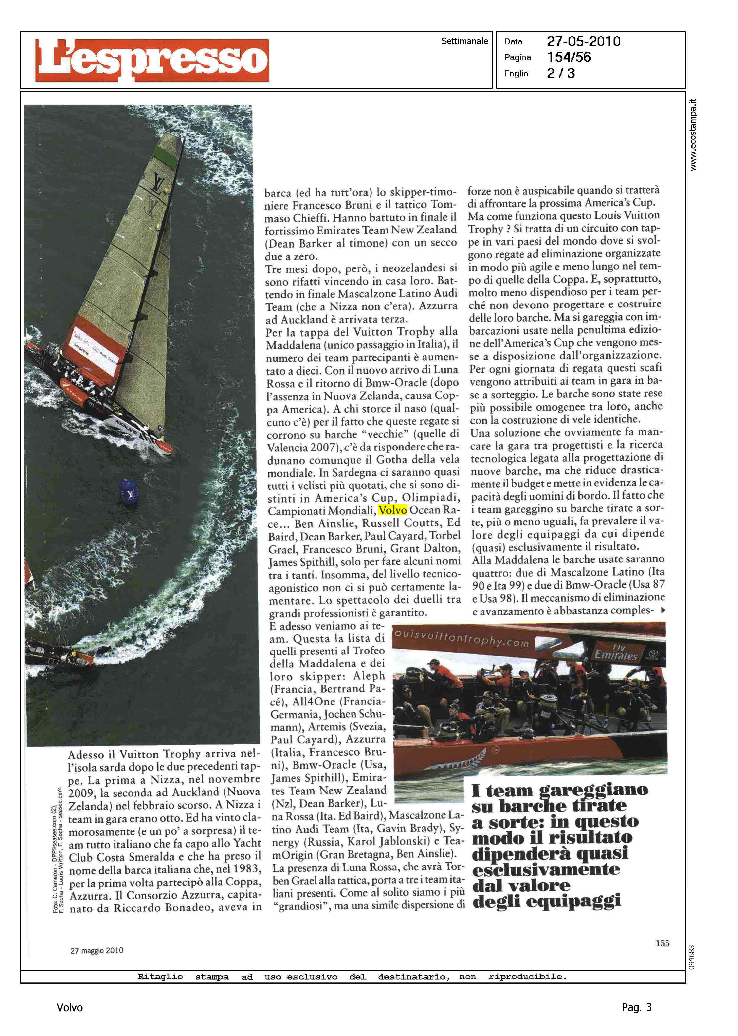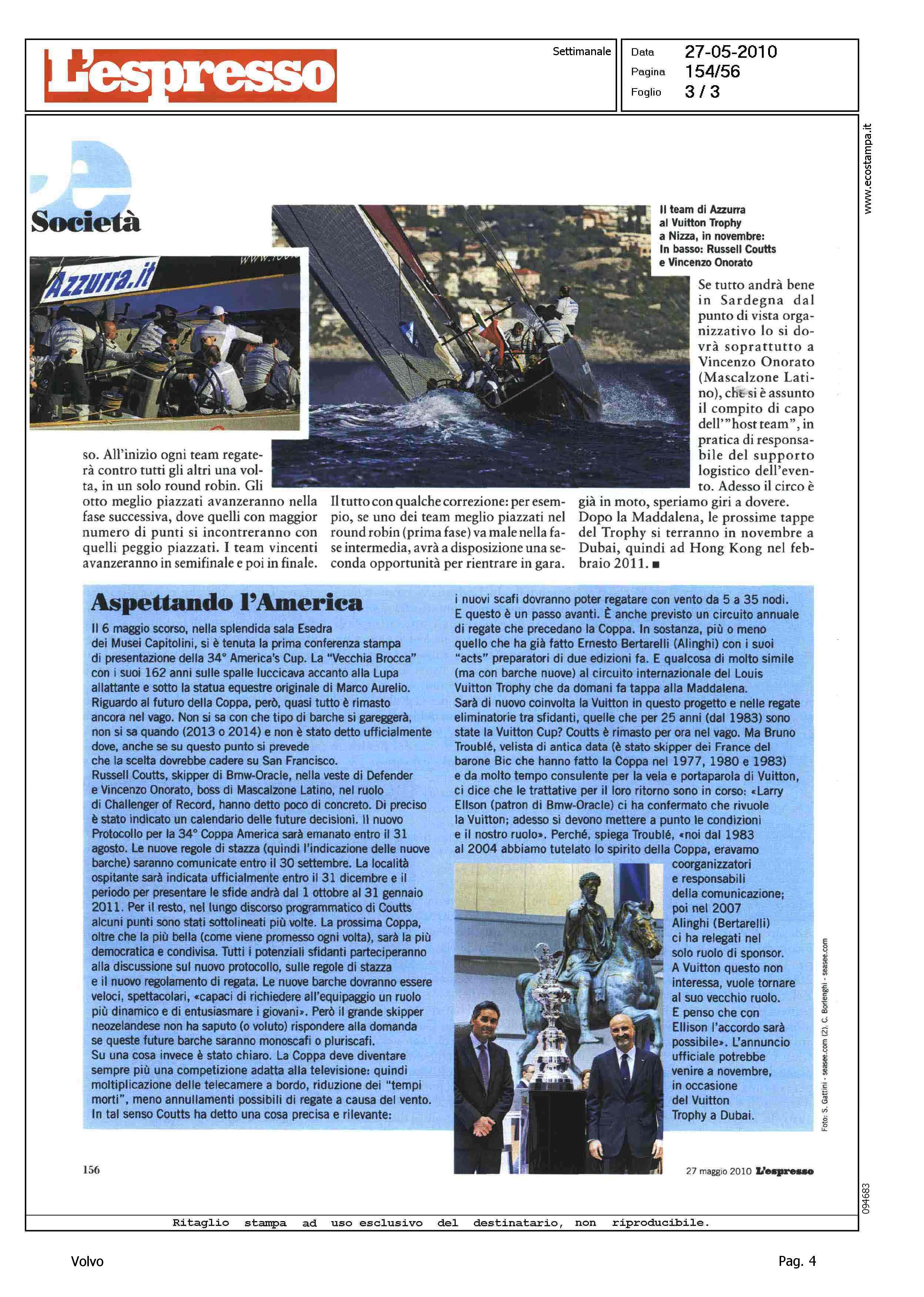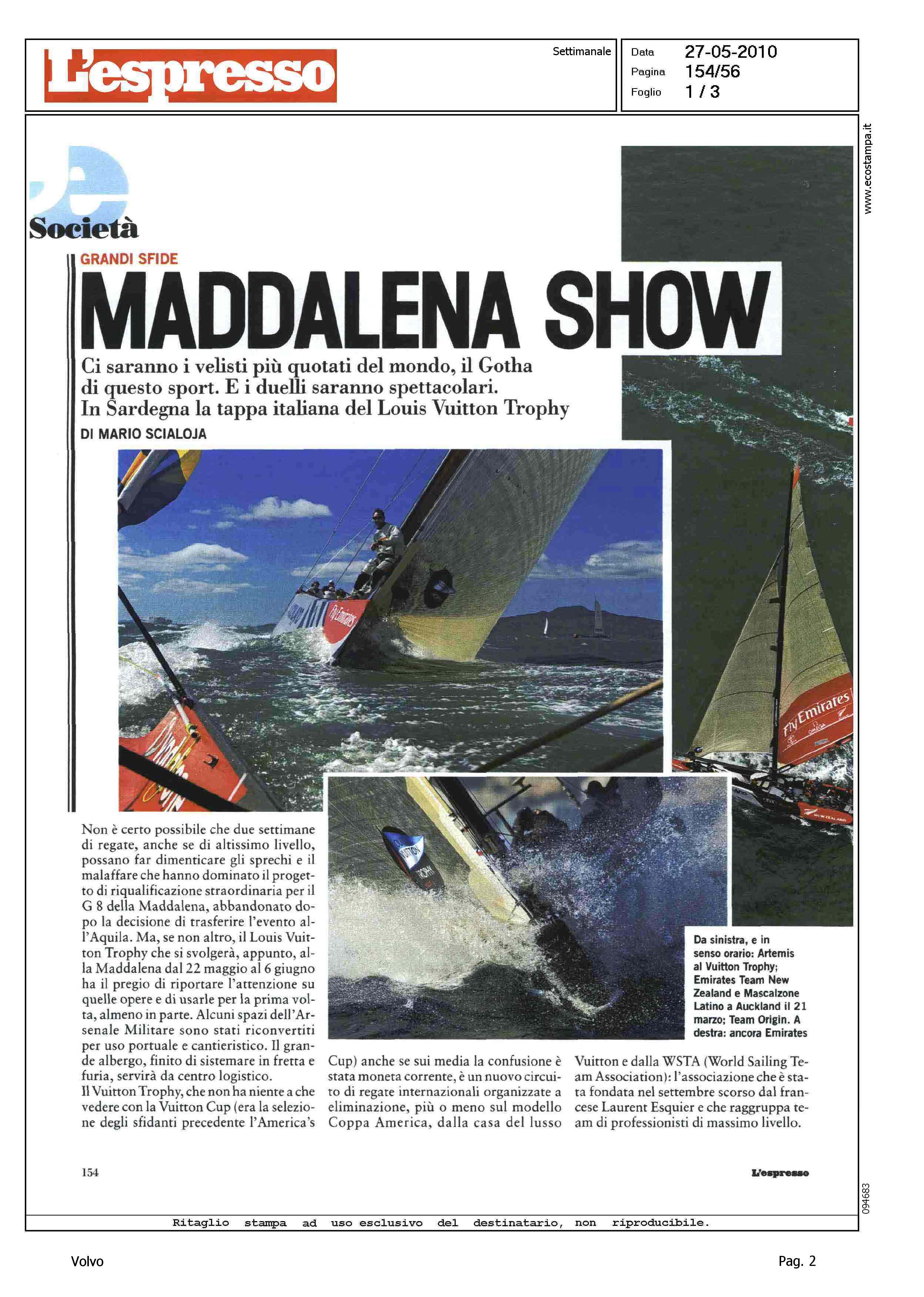 Author: SCIALOJA, MARIOLine: Corporate Model: Corporate Subject: Volvo Ocean Race Title: GRANDI SFIDE - MADDALENA SHOWHighlight: CITAZIONE - EQUIPAGGI VOR IN REGATE LOUIS VUITTON TROPHY ALLA MADDALENA