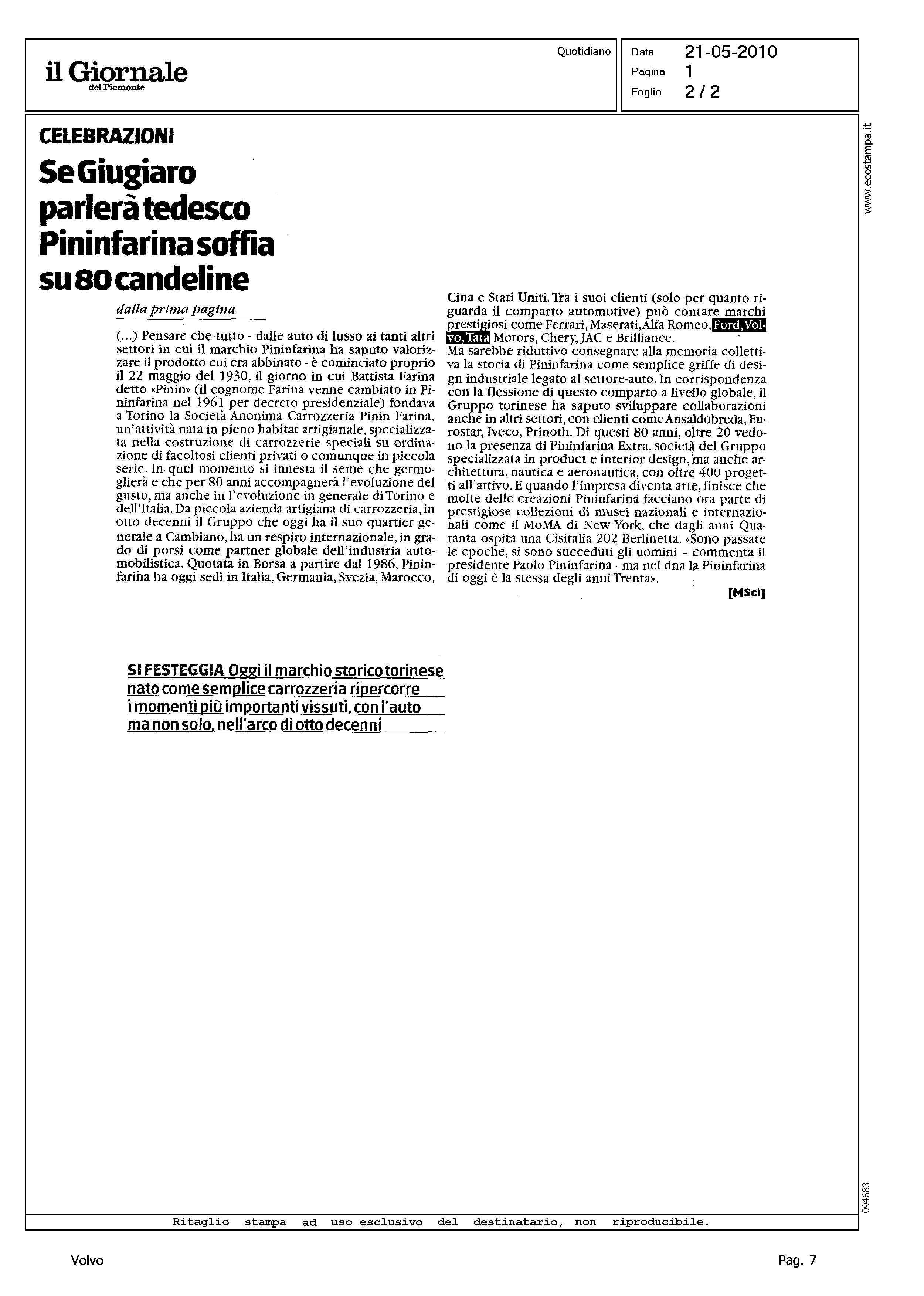 Author: Line: Corporate Model: Corporate Subject: - Title: SE GIUGIARO PARLERA' TEDESCO PININFARINA SOFFIA SU 80 CANDELINEHighlight: (EDIZIONE DEL PIEMONTE) - CITAZIONE IN STORIA PININFARINA