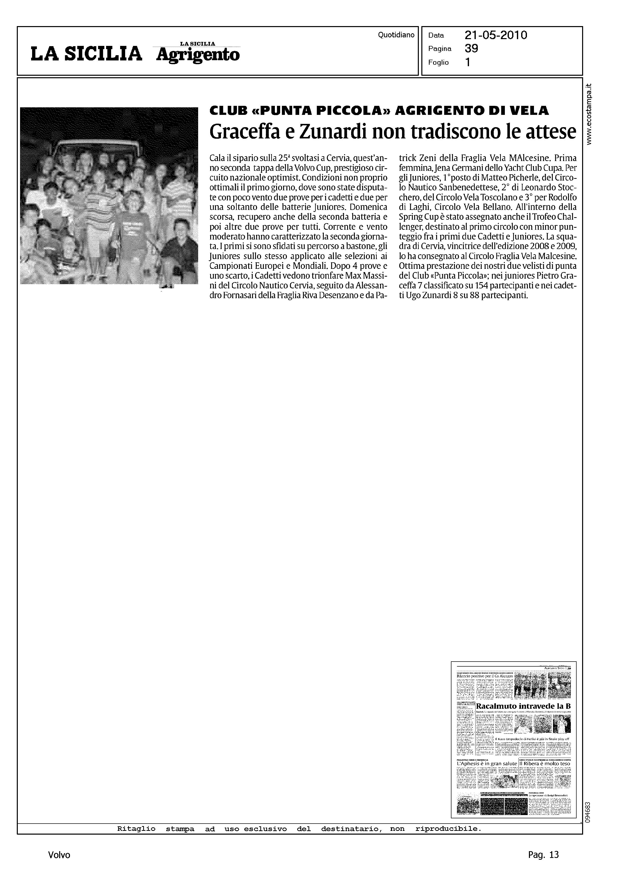 Author: Line: Corporate Model: Corporate Subject: Volvo Cup Title: CLUB "PUNTA PICCOLA" AGRIGENTO DI VELA - GRACEFFA E ZUNARDI NON TRADISCONO LE ATTESEHighlight: (EDIZIONE AGRIGENTO) - REGATA DI CERVIA