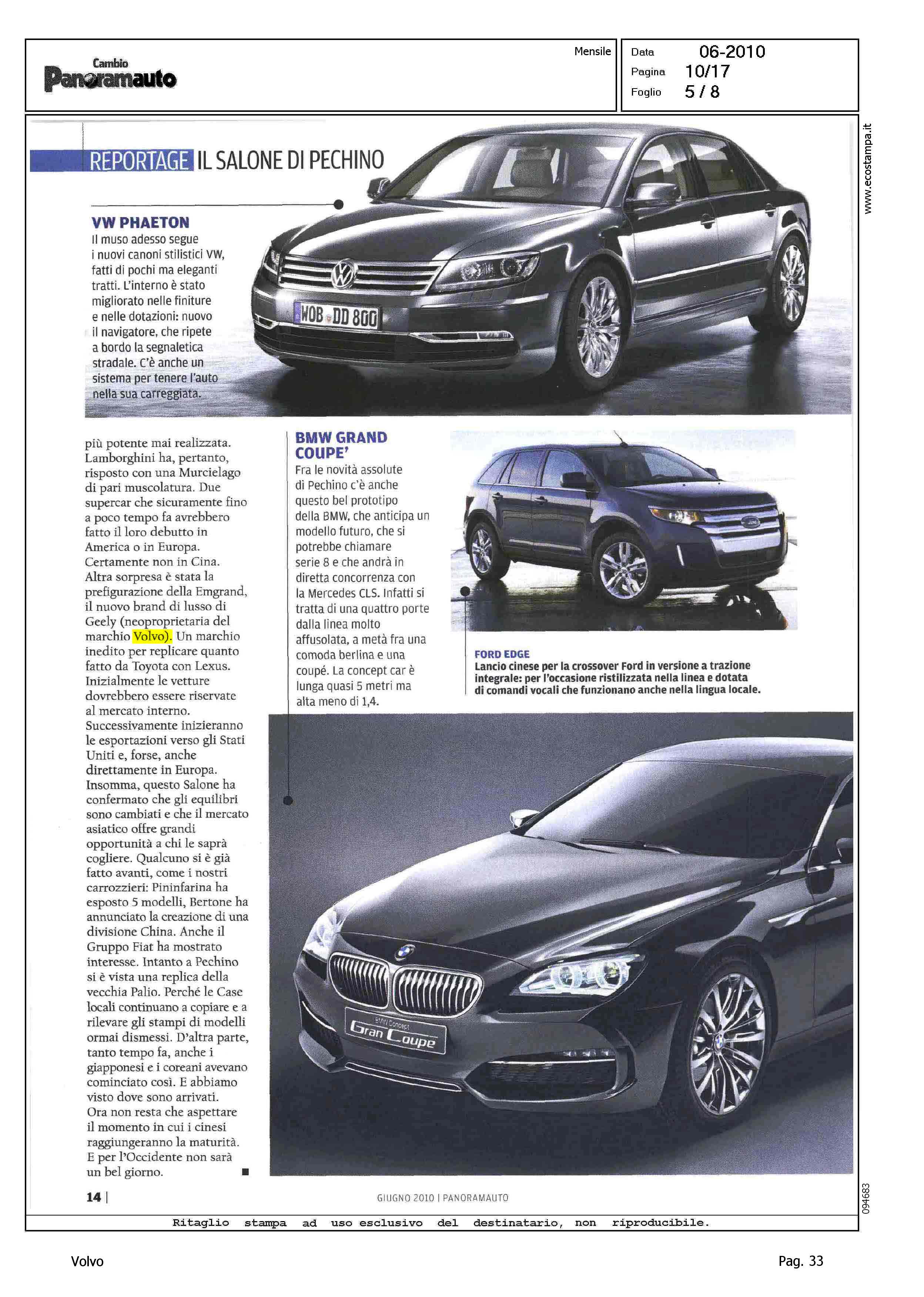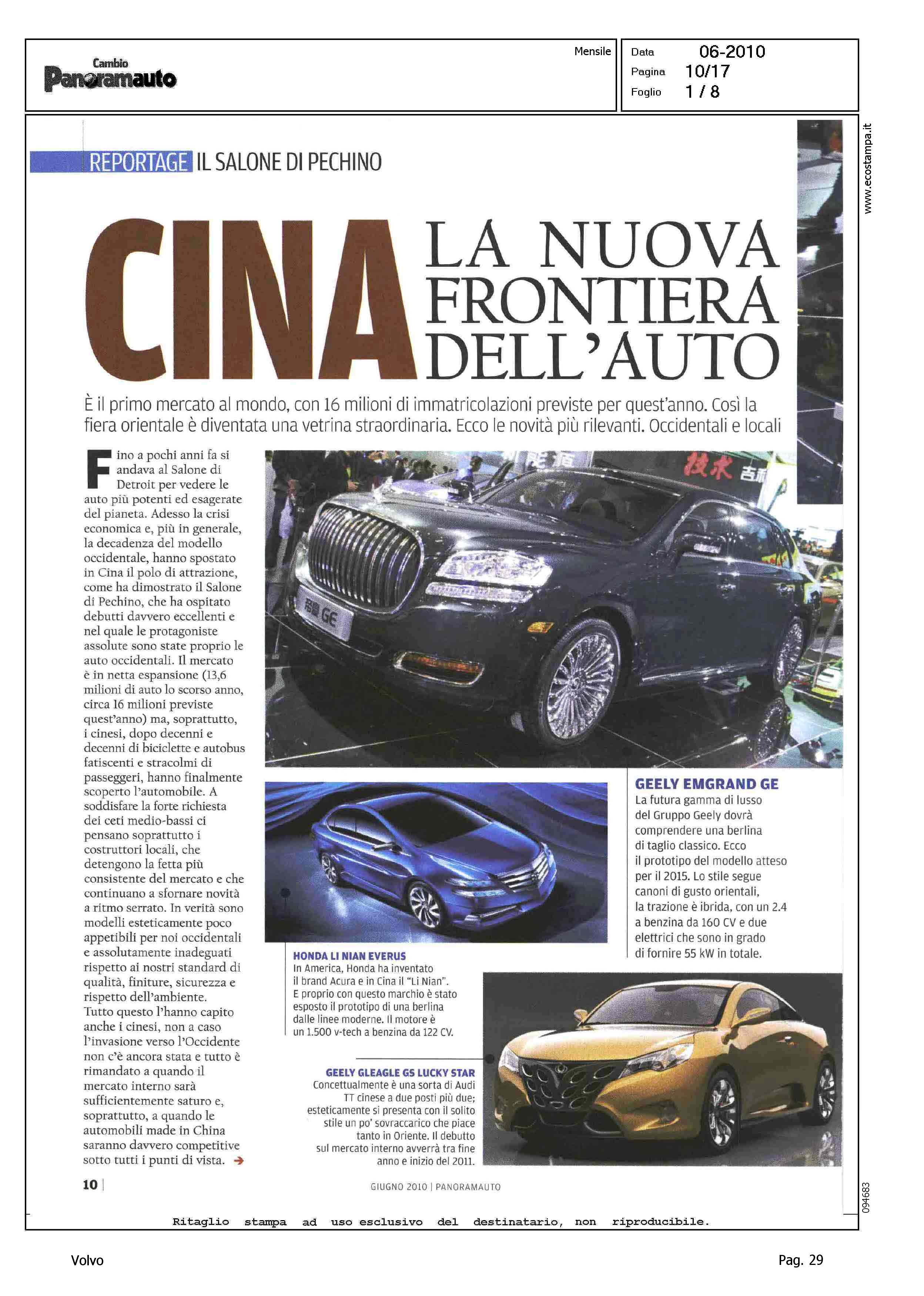 Author: TRICAMO, ALESSANDRO MARCHETTILine: Corporate Model: Corporate Subject: - Title: REPORTAGE IL SALONE DI PECHINO - CINA LA NUOVA FRONTIERA DELL'AUTOHighlight: SERVIZIO DAL SALONE DI PECHINO - GEELY